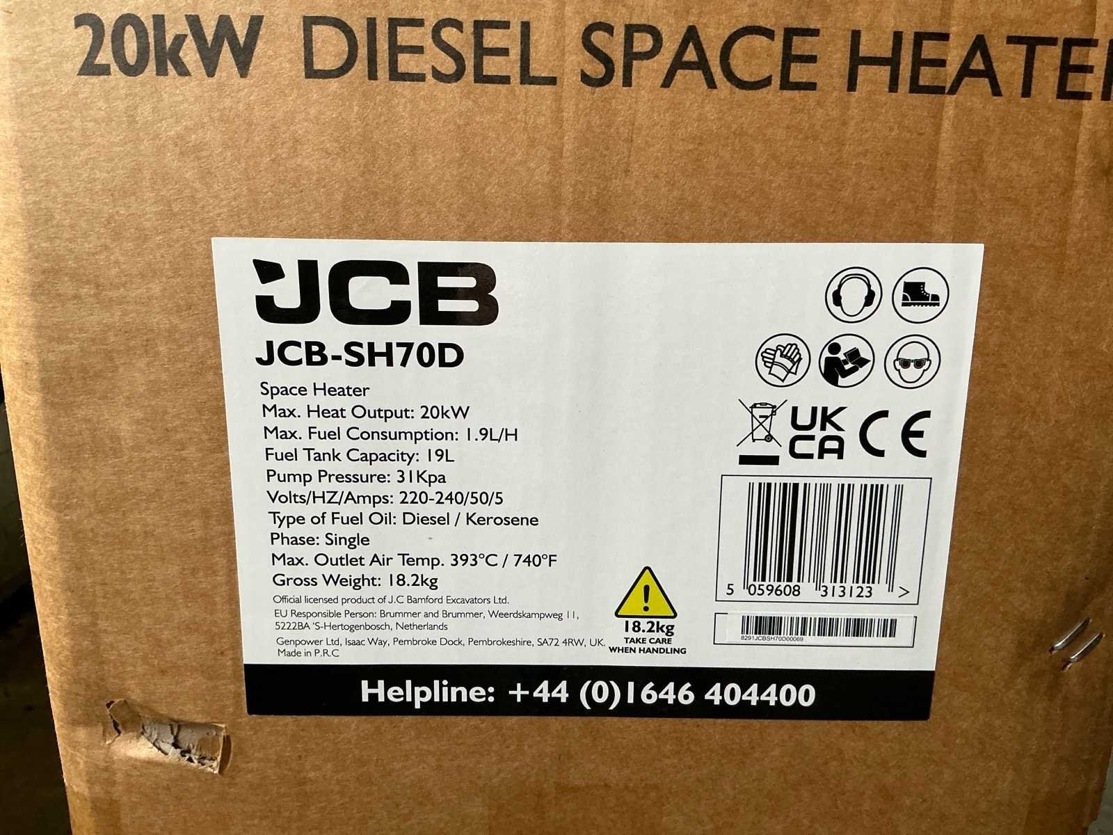 Nee Merk: 1X 37KW 1X20 Jcb Diesel Space Heater nieuw in doos Vermogen: 37kW Ventilator: true