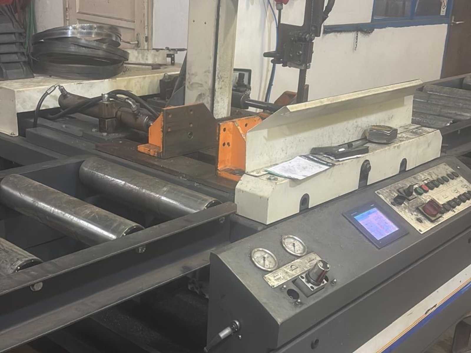 Voorzien van driedelige rollenbaan met een totale lengte van ca. 7 meter (1x ca. 3 m en 2x ca. 2 m) Sawblade; 4300*27*0.9 Rollenbaanbreedte ca. 670 mm en hoogte ca. 890 mm Rollen met een breedte van ca. 390 mm en een diameter van ca. 80 mm Lintzaagmachine compleet geleverd inclusief rollenbaan Eenvoudig instelbaar voor halfautomatische werking Uitgerust met tweezijdige materiaalklemming voor nauwkeurige zaagsneden Voorzien van nevelsmeersysteem voor optimale zaagprestaties en langere zaagbladstandtijd Geschikt voor verstekzagen tot 30° Nee Merk: Bauer Sägemaschinen Type: VG 320ST Bouwjaar: 2008 Serienummer: 08-12003 Afmeting l: 1900mm Afmeting b: 1500mm Afmeting h: 2000mm