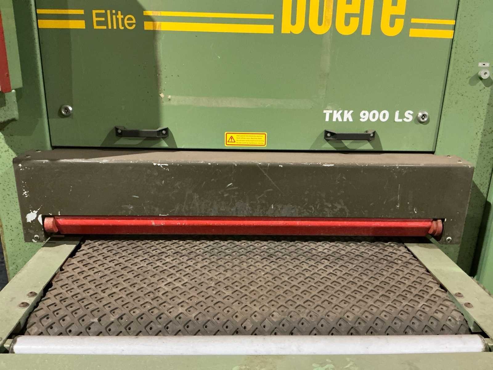 Voorzien van; Afzuiging ; Afzuigpijpen; 3 Extra schuurband Nee Merk: Elite Boere Type: TKK900LS Bouwjaar: 1996 Serienummer: 961005371 Werkbreedte: 9150mm Aansluiting: 360V
