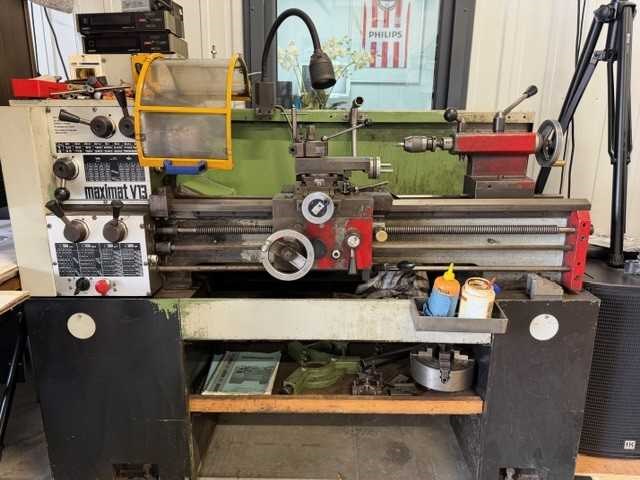 Incl. Schuitjes en bril en Vierklauw Afstand tussen de centers 650mm Centerhoogte 165mm No Merk: EMCO Type: Maximat V13 Bouwjaar: 1985 Aansluiting: 380V Totale afmeting L: 1600mm Totale afmeting Breedte: 835mm Totale afmeting Hoogte: 1360mm Eigen gewicht: 620kg Leveringsvoorwaarden: Gratis op vrachtwagen