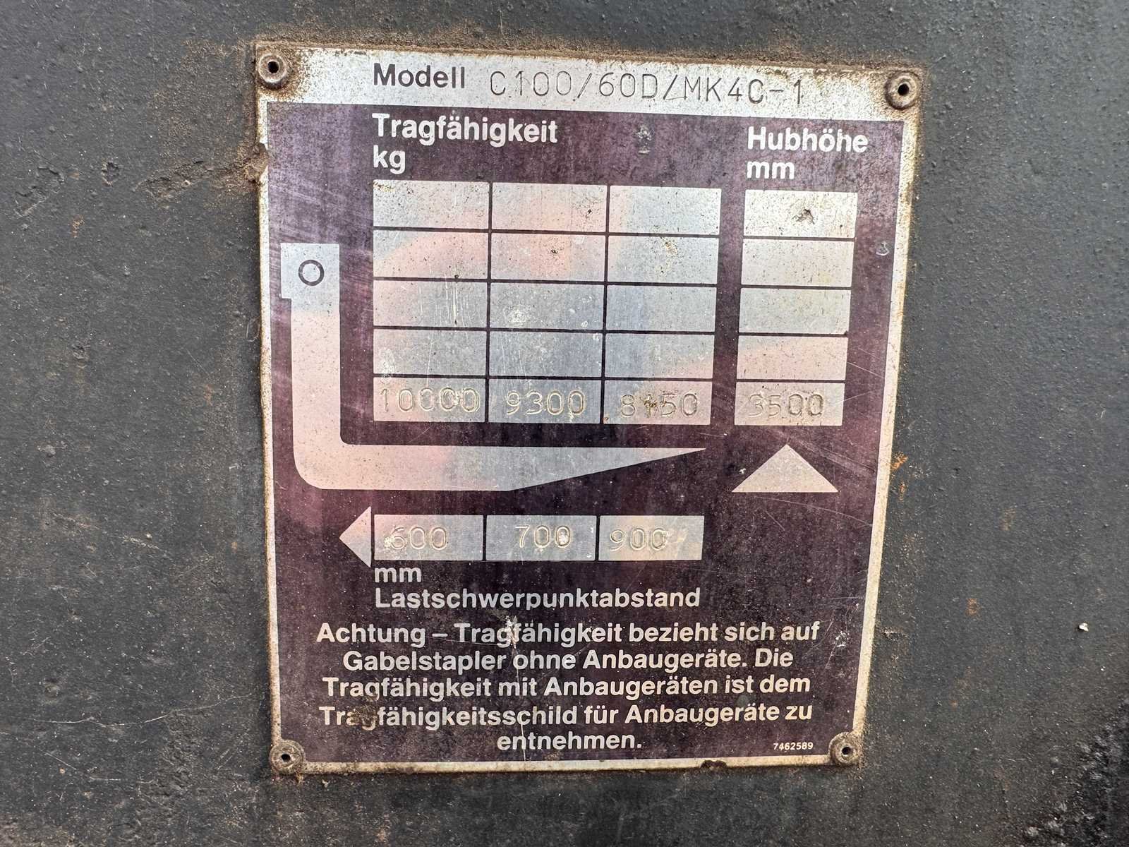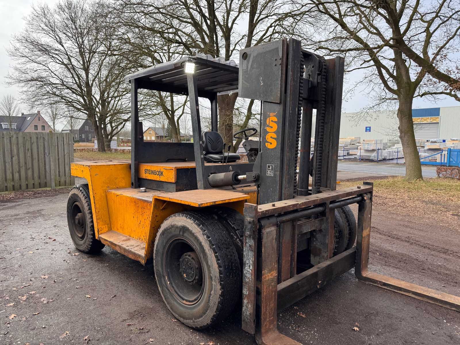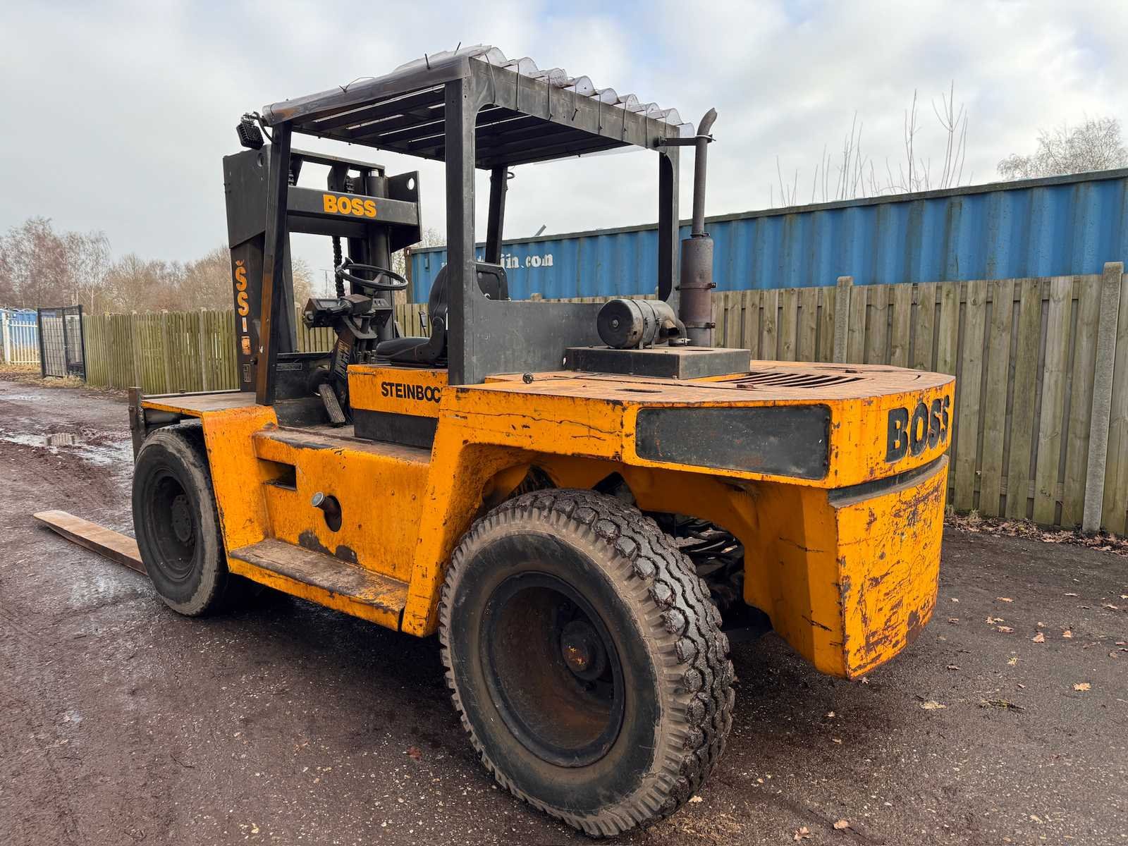 Recent voorzien van nieuwe accu. Nee Merk: Steinbock Boss Type: C100/60D/MK4C-1 Bouwjaar: 1989 Serienummer: 014630 Brandstof: Diesel Kenteken: nvt Mast: Duplex Soort band: Luchtbanden Aantal wielen: 4 Afgelezen urenstand: 4310 Ruw terrein: true Side-shift: true Hydraulisch verstelbare lepels: true Duplex mast: true Eigen gewicht: 13000kg Hefvermogen: 10000kg Lepellengte: 2170mm Max. hefhoogte: 3300mm Luchtbanden: true Minimale doorrijhoogte: 2700mm Totale afmeting L: 4200mm Totale afmeting Breedte: 2500mm Totale afmeting Hoogte: 2700mm Diesel: true Leveringsvoorwaarden: Niet gefundeerd - onverpakt
