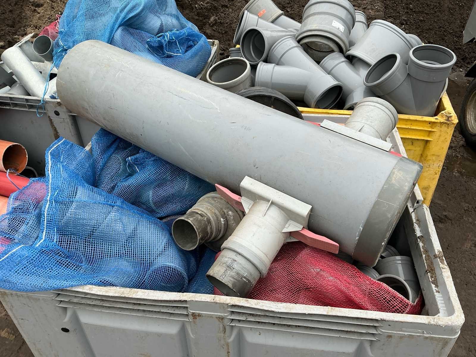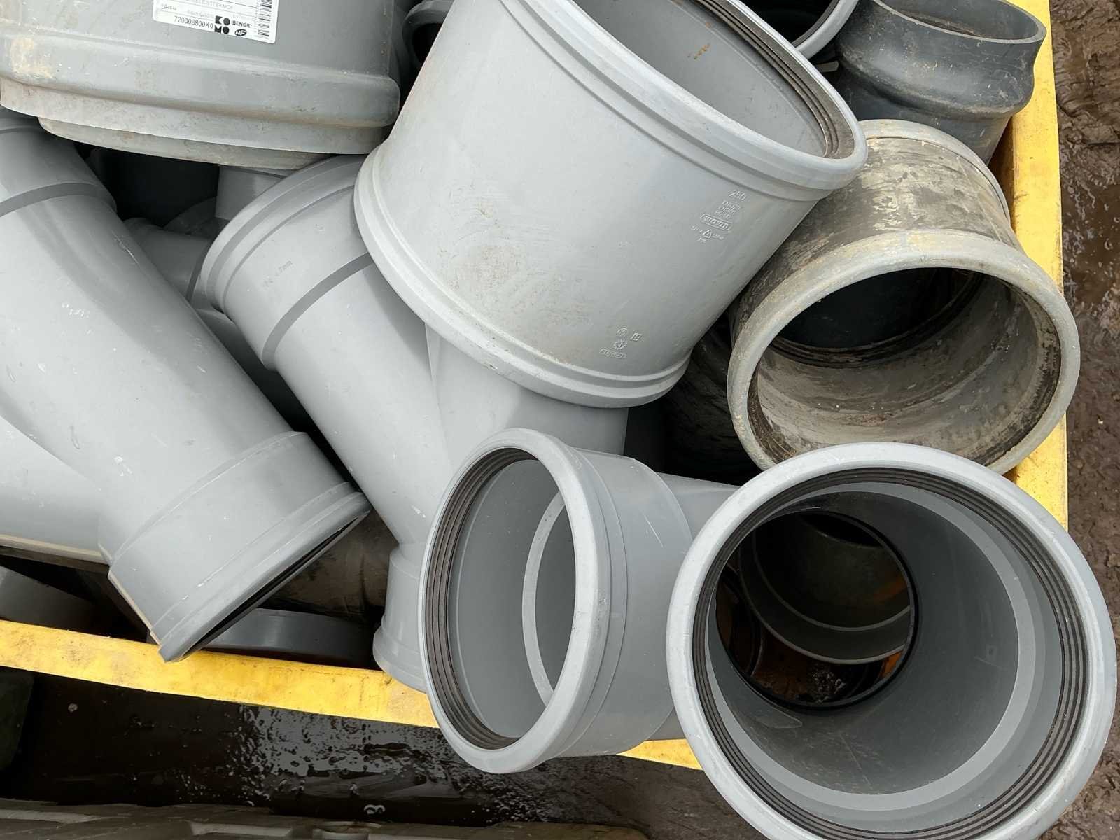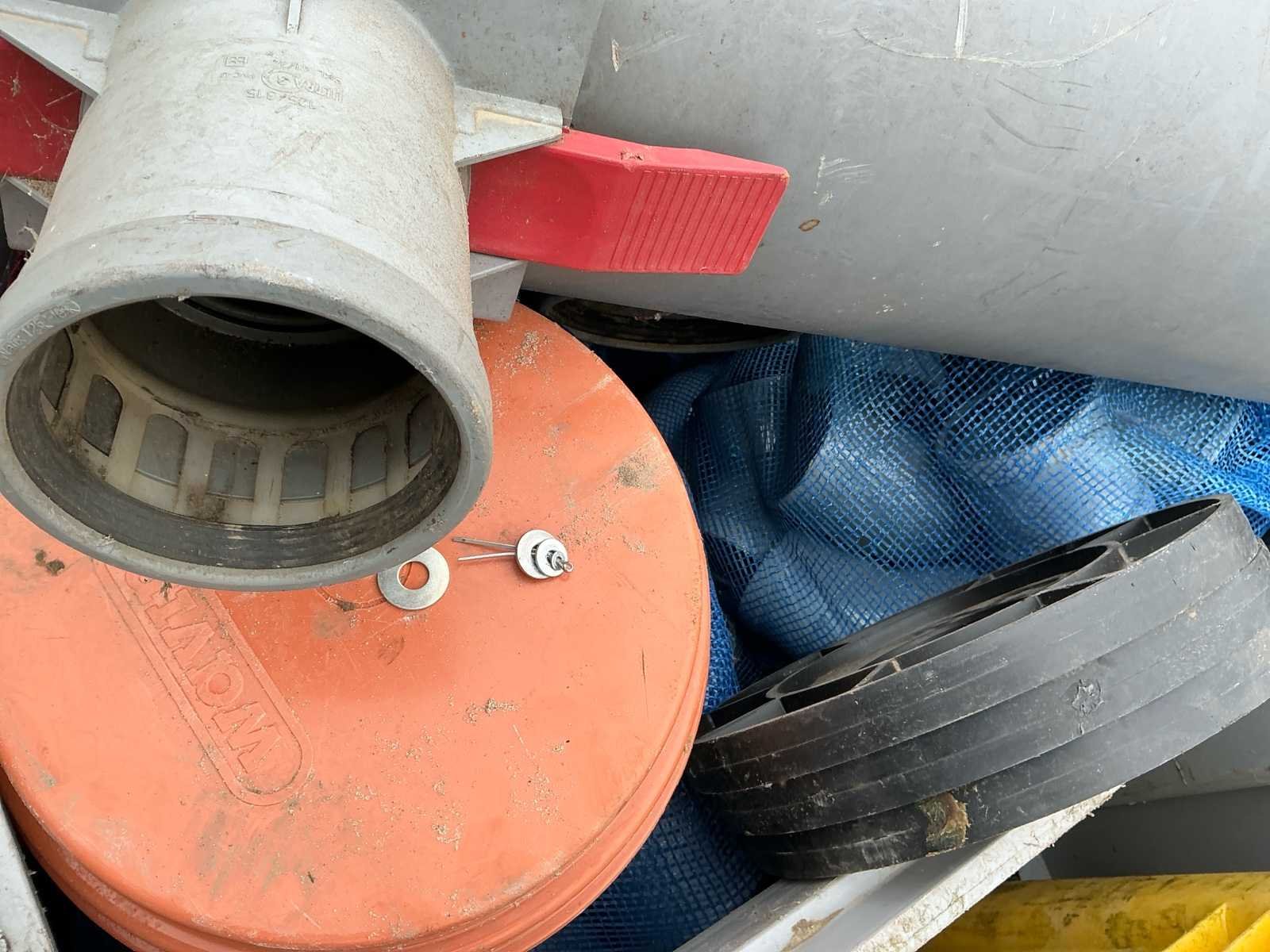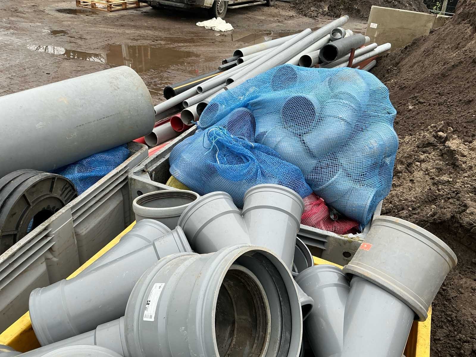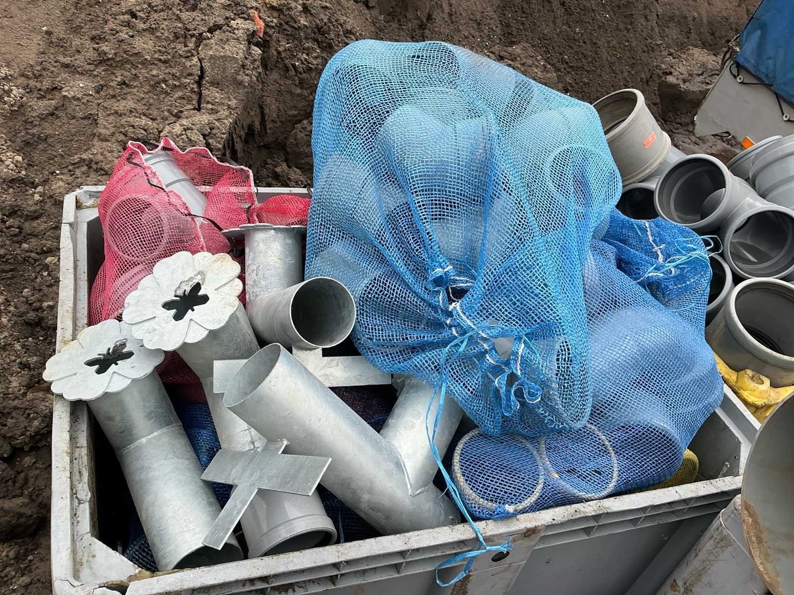 Voorzien van: • 45° Ø250 mof/mof manchet – 2 st • 45° Ø200 – 1 st • Steek mof Ø250 manchet – 2 st • Steek mof Ø315 – 2 st • Verloop 200/160 – 1 st • 1 stuk beugels 315 x 160/125 – 1 st • 45° Ø250 mof/spie 1x manchet – 1 st • 1 stuk beugels 2x Ø250 1x Ø160 – 1 st • Verloop Ø160–Ø125 1x manchet – 1 st • Mof steek Ø160 – 5 st • 45° Ø160 mof/mof manchet – 2 st • 45° Ø160 mof/spie 1x – 2 st • 87½° Ø160 mof/mof manchet – 6 st • 1 stuk beugels 2x160 1x125 mm – 8 st • Verlengde schuifmof Ø125 mm – 3 st • 1 stuk Y Ø160 manchet – 7 st • Steek mof Ø200 manchet – 4 st • Dop Ø200 – 4 st • Steek mof Ø160 manchet – 8 st • 15° Ø160 mof/spie manchet – 1 st • 87° Ø160 mof/mof manchet – 5 st • 45° Ø160 mof/mof manchet – 3 st • Steek mof Ø125 manchet – 50 st • 87½° Ø125 mof/mof manchet – 4 st (totaal 16 st genoteerd) • 87½° Ø125 mof/mof verlengd manchet – (aantal onduidelijk) • 45° Ø125 mof/mof manchet – 8 st • 45° Ø125 mof/spie 1x manchet – 8 st • Overstort staal Ø125 – 4 st • Verloop Ø160–125 1x manchet – 7 st • 88° Ø110 mof/spie 1x manchet – 8 st • 87° Ø110 mof/mof manchet – 10 st • 45° Ø110 mof/mof manchet – 20 st • 45° Ø110 mof/spie 1x manchet – 10 st • Steek mof Ø110 manchet – 6 st • Y-stuk Ø110 manchet – 4 st • 1 stuk Ø110 mof/spie + deksel – 6 st • Verloop Ø160–110 manchet – 1 st • Deksel Ø315 – 5 st • Verloop Ø200–125 – 1 st • Stelringen brandkraan – 3 st No