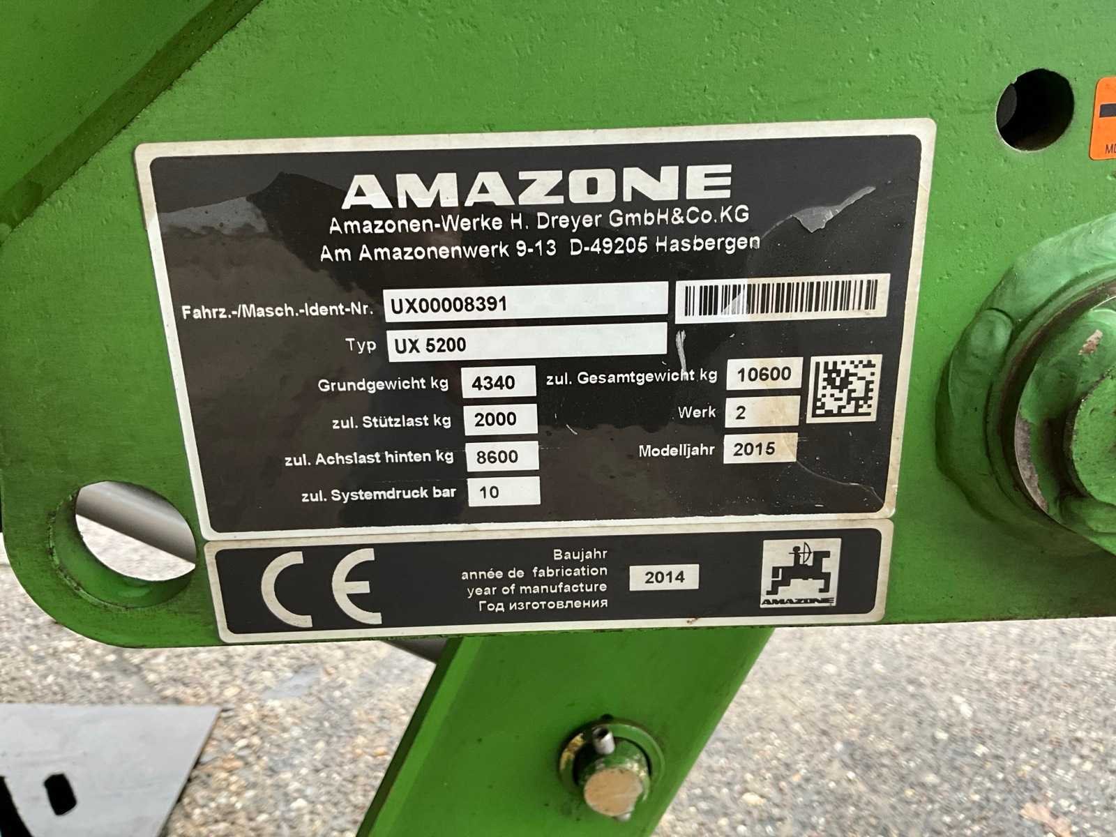 Voorzien van 13 secties; isobus; hectare stand ca. 22500; geldige SKL keuring tot 27/3/2027; 39 meter ; 5200 liter tankinhoud; 2x AR280 bp pompen (gekeurd tot 27-03-27); joystick bediening. i.c.m. Amatron 3 bedieningskast; hydraulische steunpoot; groothoekaftakas; vulspoelinrichting; hydraulisch geremd; elektrische kantdoppen; fusee gestuurd Nee Merk: Amazone Type: UX5200 Bouwjaar: 2014 Serienummer: UX00008391 Kenteken: LFJ-31-T Spuitboombreedte: 39m Tankinhoud: 5000l Bandenmaat: 580/70R42 Voorzien van verlichting: true Schoonwatertank: true Sectie afsluiting: true