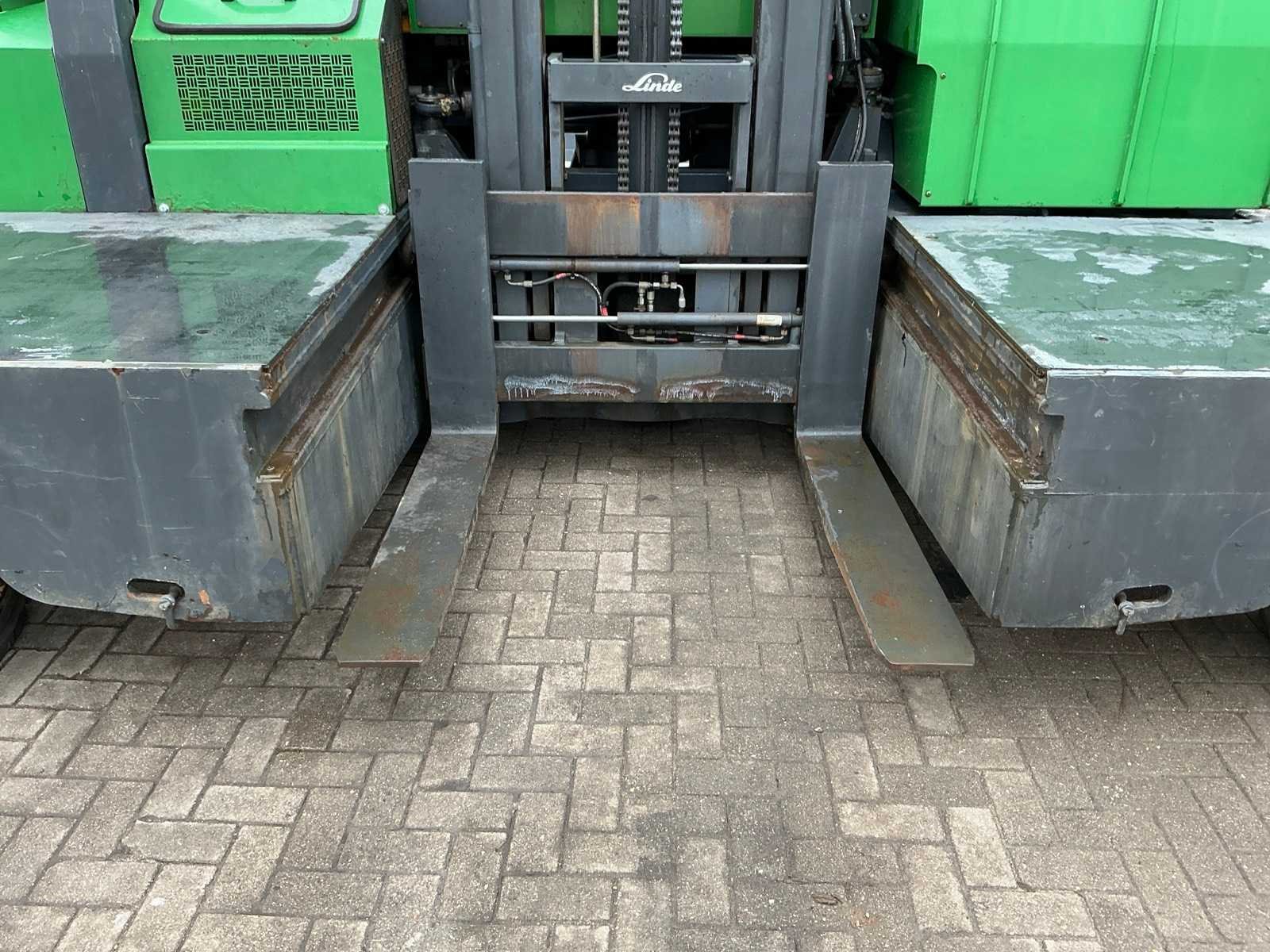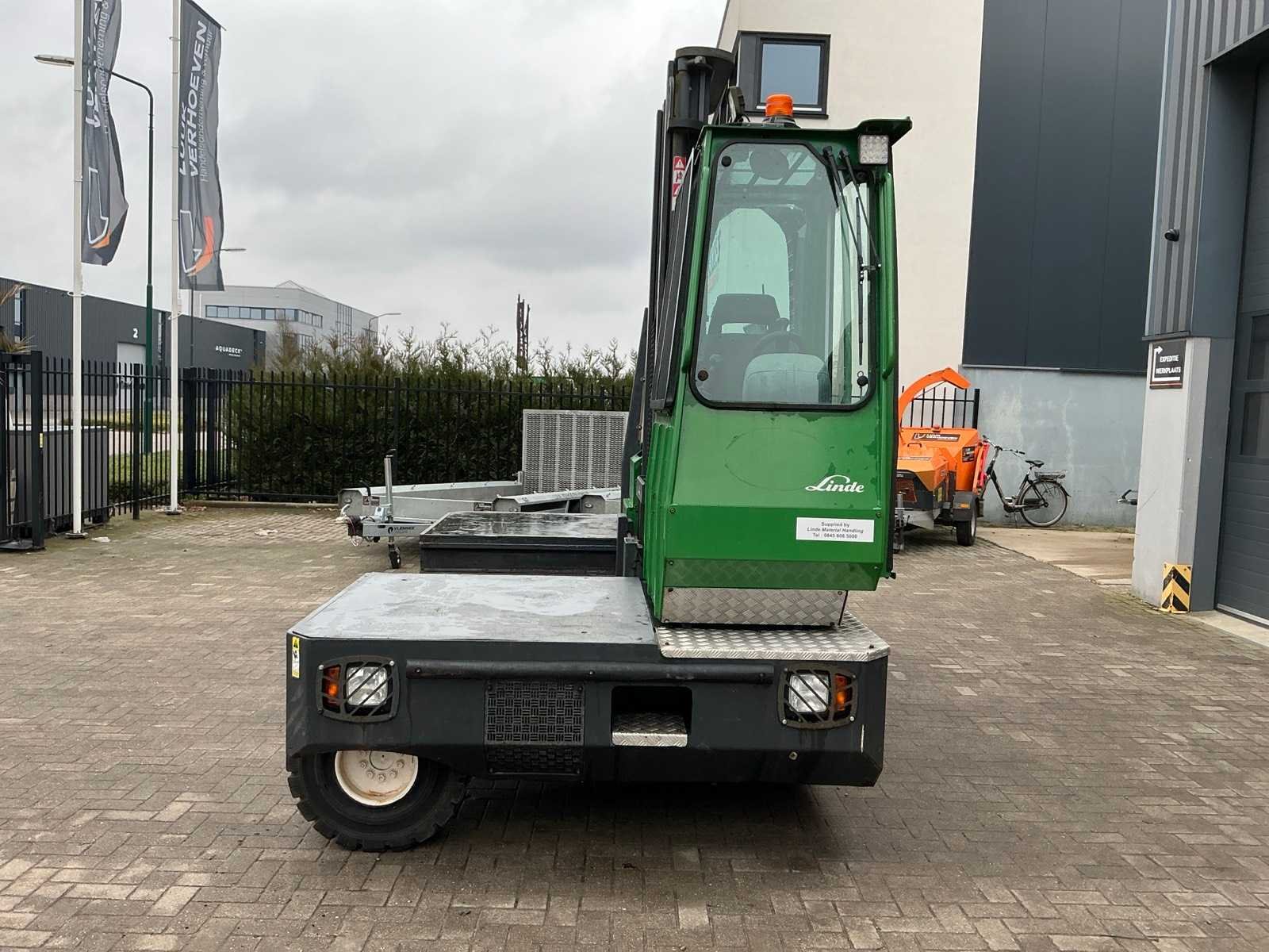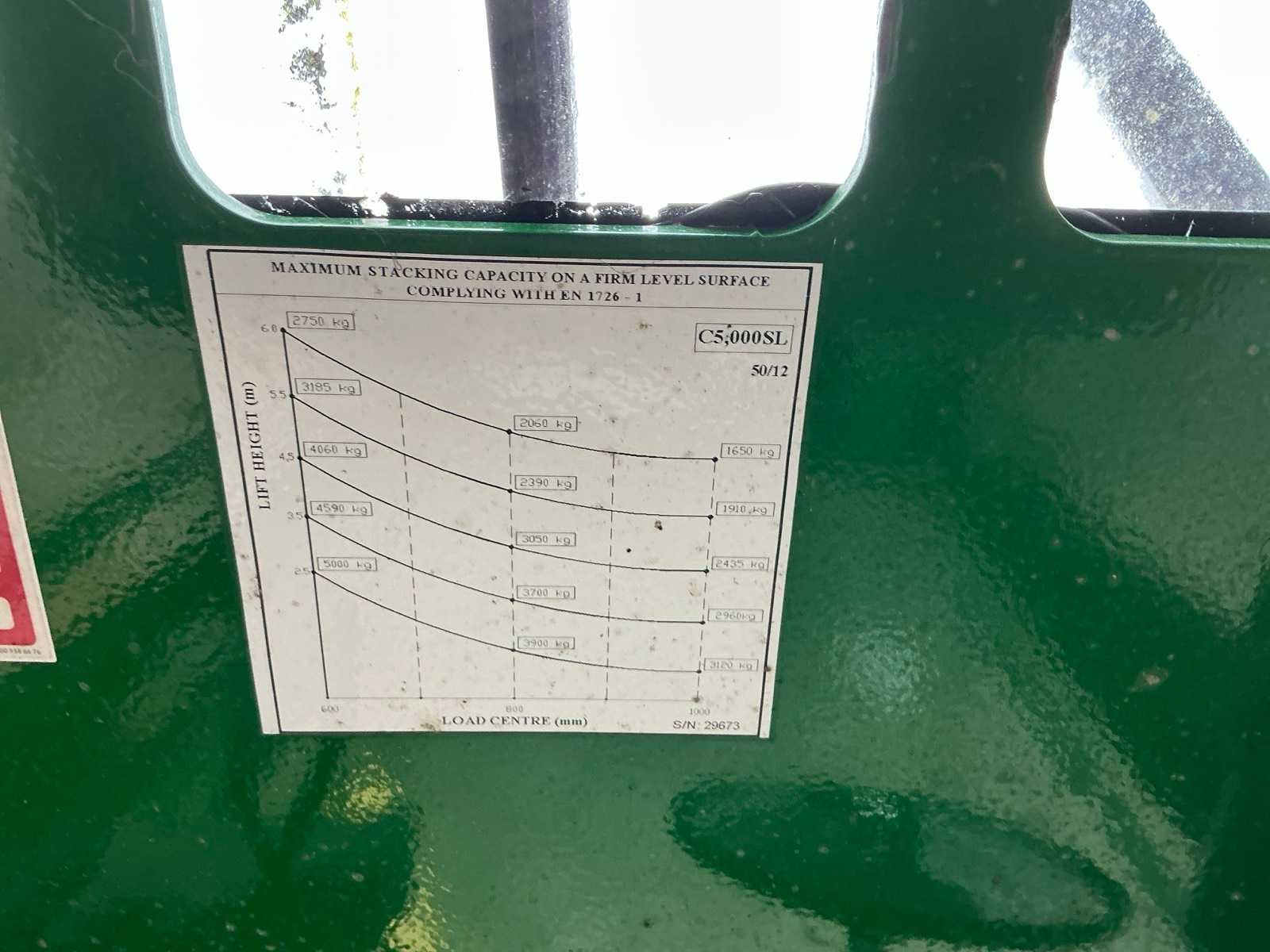 Voorzien van; Lepels 1200mm, duplex mast, zijlader, uitschuifbare lepels, free lift, vorken spreider, verstelbare wielen , opleg platformen, max hefhoogte 4040mm, max hefvermogen 5000kg. Nee Merk: Combilift Type: C5000SL Combi-liftte Bouwjaar: 2015 Serienummer: 29673 Brandstof: Diesel Mast: Duplex Soort band: Volrubber banden Aantal wielen: 3 Free-lift: true Side-shift: true Hydraulisch verstelbare lepels: true Duplex mast: true Eigen gewicht: 9800kg Hefvermogen: 5000kg Lepellengte: 1200mm Max. hefhoogte: 4040mm Vol rubber banden: true Minimale doorrijhoogte: 3000mm Totale afmeting L: 4500mm Totale afmeting Breedte: 2050mm Totale afmeting Hoogte: 3000mm Diesel: true
