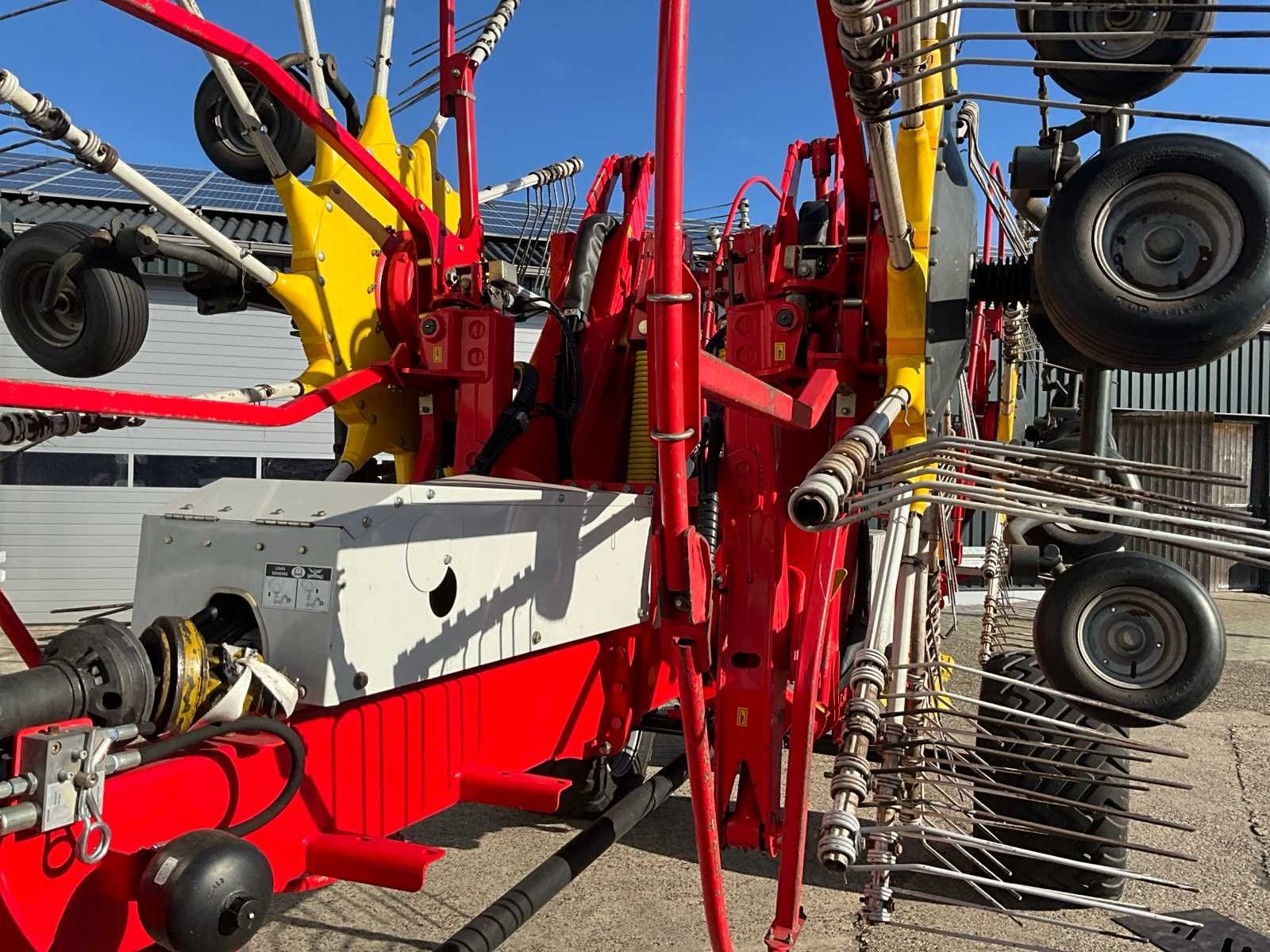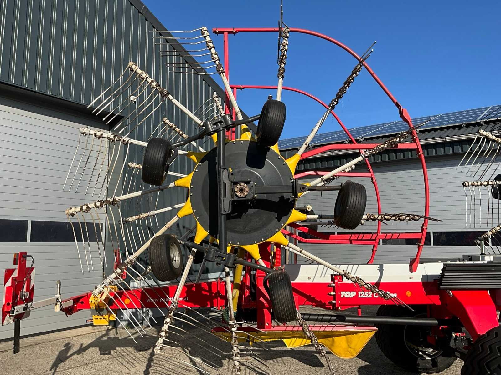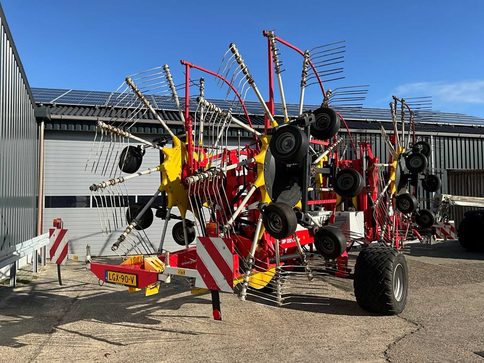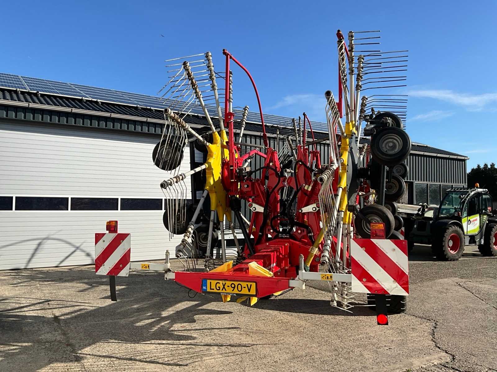 Voorzien van 4 rotoren 13 armen ieder 8 vingers; 5 loopwielen per rotor; bandenmaat 620/40R22.5 “Alliance” banden; isobus terminal; hydraulische remmen; hydraulische hoogte verstelling rotoren; middenafleg; Nee Merk: Pottinger Type: Top 1252 C S-Line Bouwjaar: 2014 Serienummer: 24410001552 Kenteken: LGX-90-V Eigen gewicht: 6650kg Werkbreedte: 12500mm
