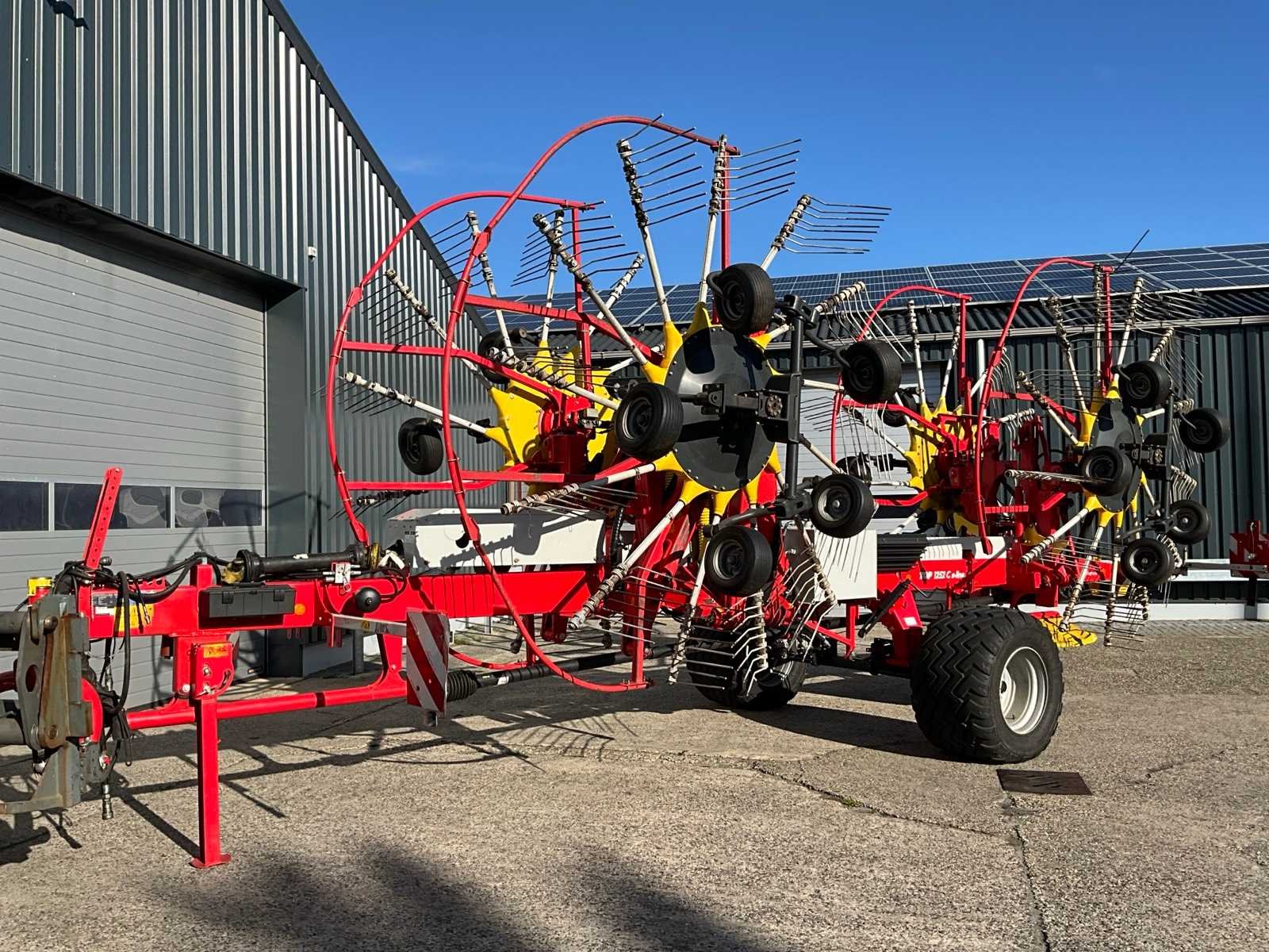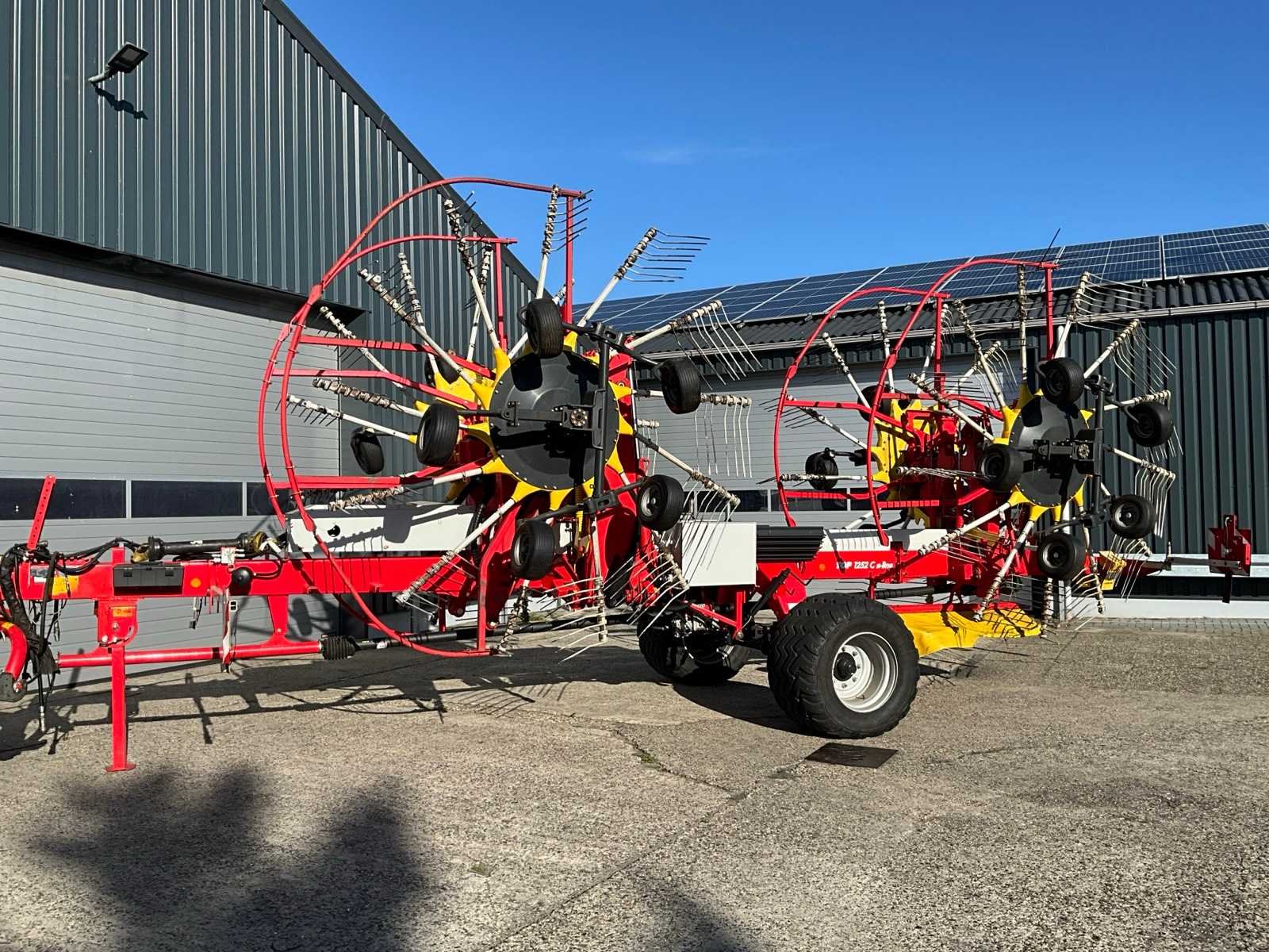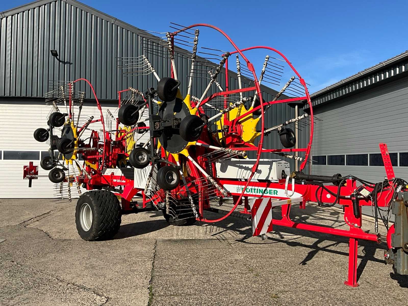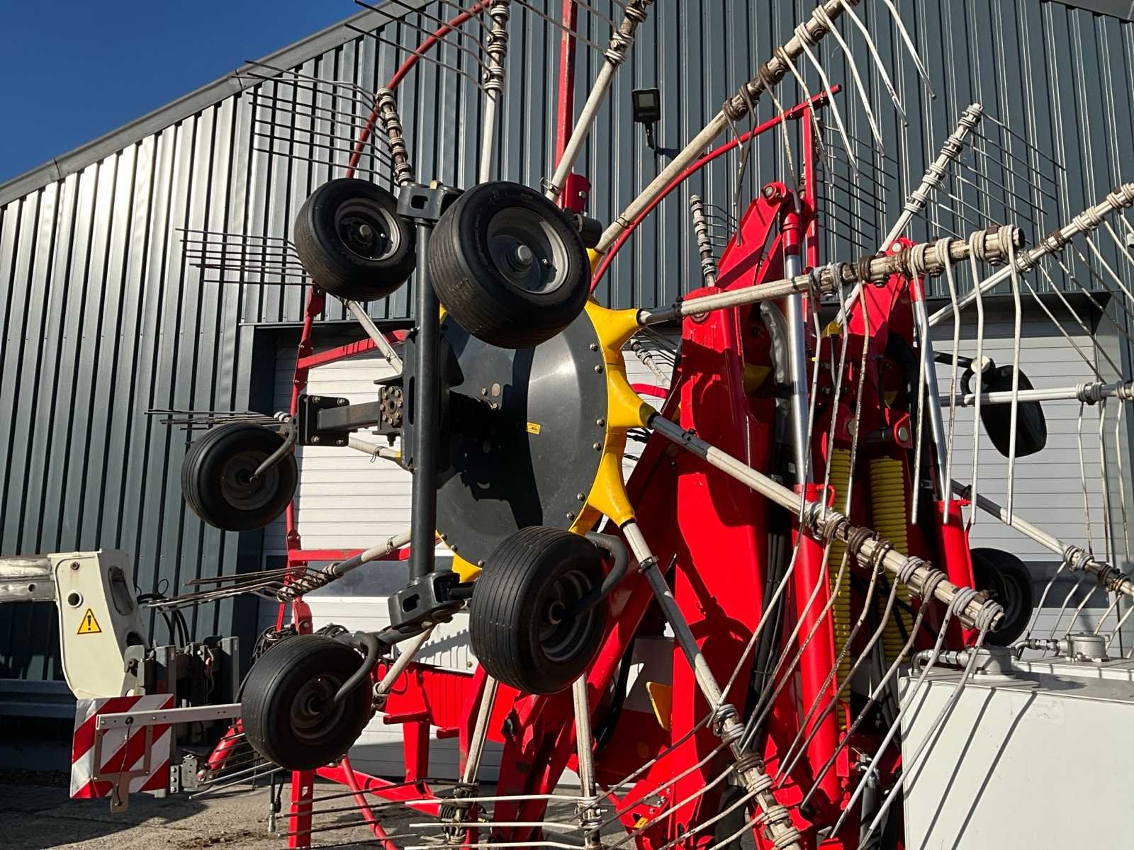 Voorzien van 4 rotoren 13 armen ieder 8 vingers; 5 loopwielen per rotor; bandenmaat 620/40R22.5 “Alliance” banden; isobus terminal; hydraulische remmen; hydraulische hoogte verstelling rotoren; middenafleg; Nee Merk: Pottinger Type: Top 1252 C S-Line Bouwjaar: 2014 Serienummer: 24410001552 Kenteken: LGX-90-V Eigen gewicht: 6650kg Werkbreedte: 12500mm