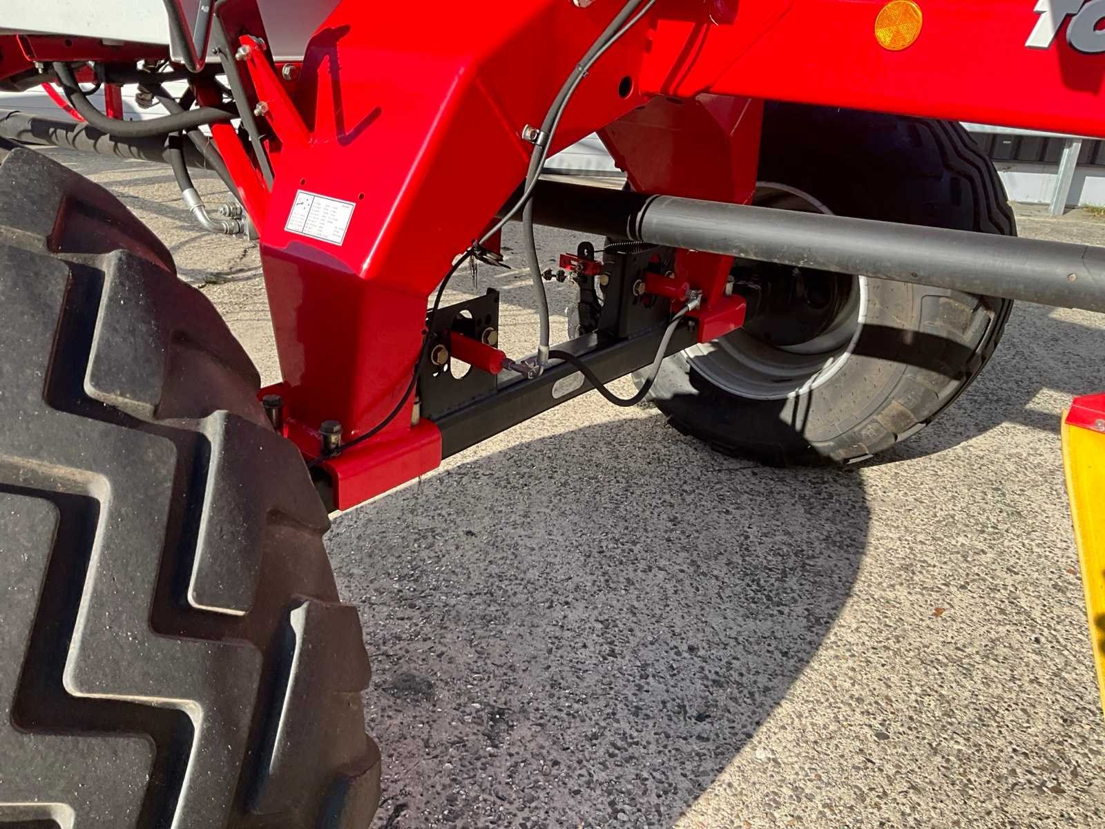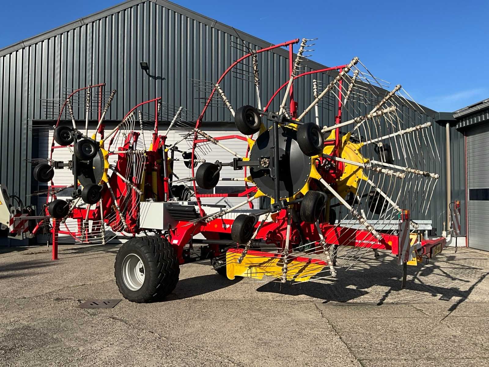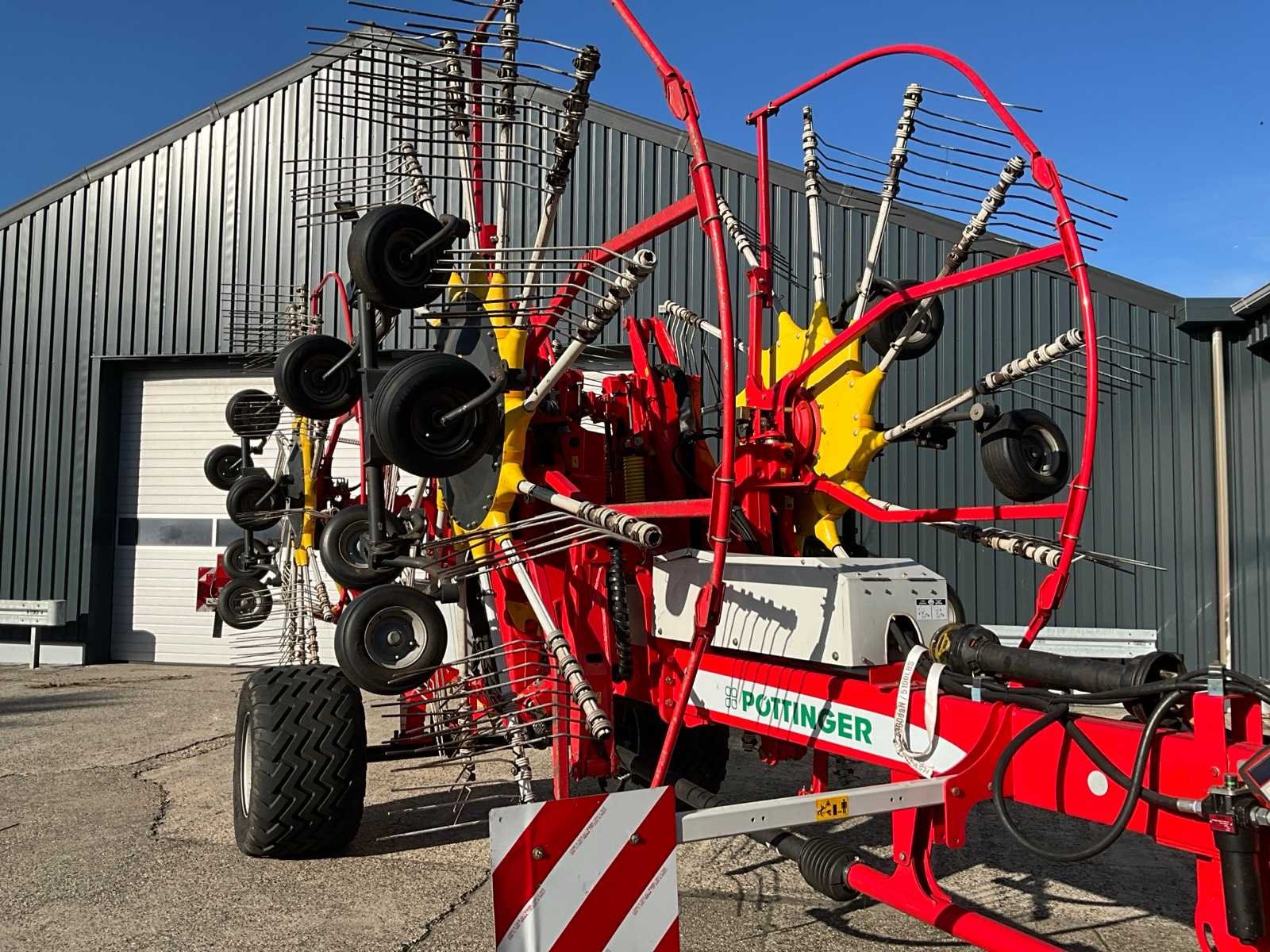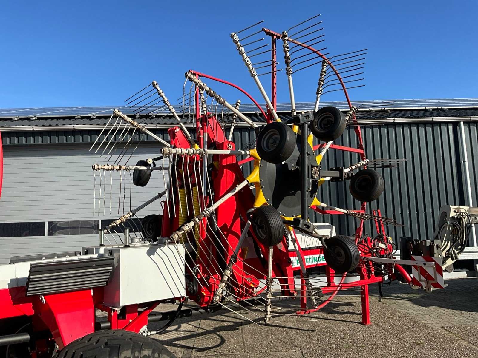 Voorzien van 4 rotoren 13 armen ieder 8 vingers; 5 loopwielen per rotor; bandenmaat 620/40R22.5 “Alliance” banden; isobus terminal; hydraulische remmen; hydraulische hoogte verstelling rotoren; middenafleg; Nee Merk: Pottinger Type: Top 1252 C S-Line Bouwjaar: 2014 Serienummer: 24410001552 Kenteken: LGX-90-V Eigen gewicht: 6650kg Werkbreedte: 12500mm