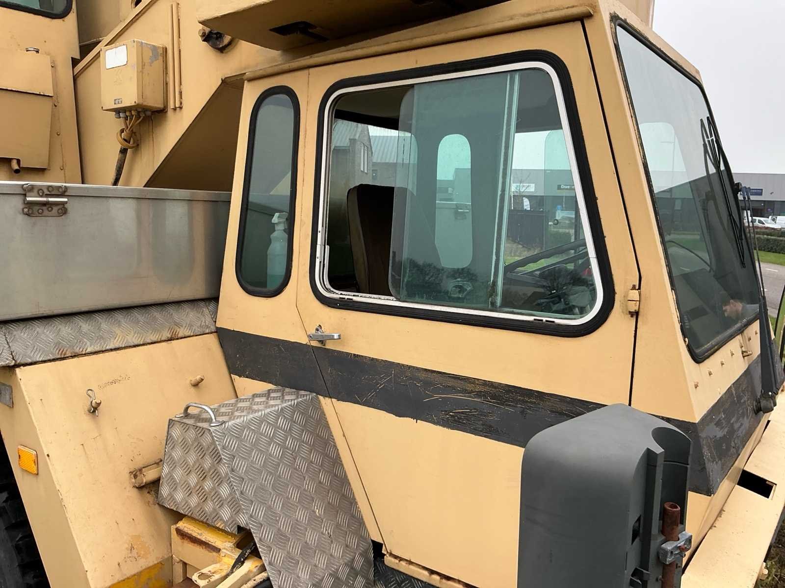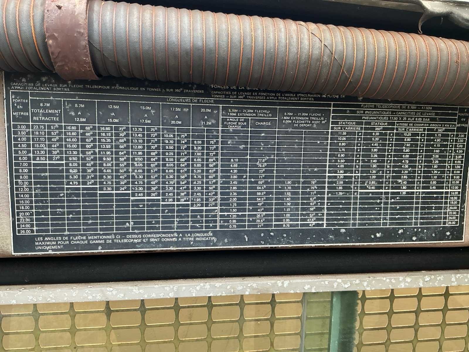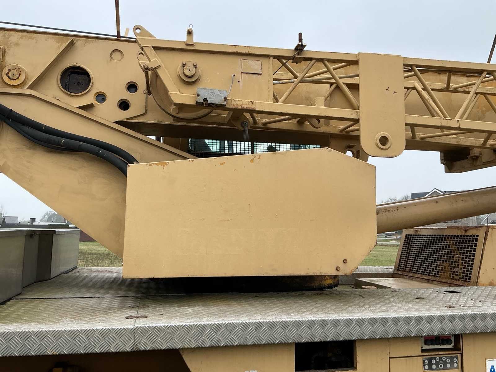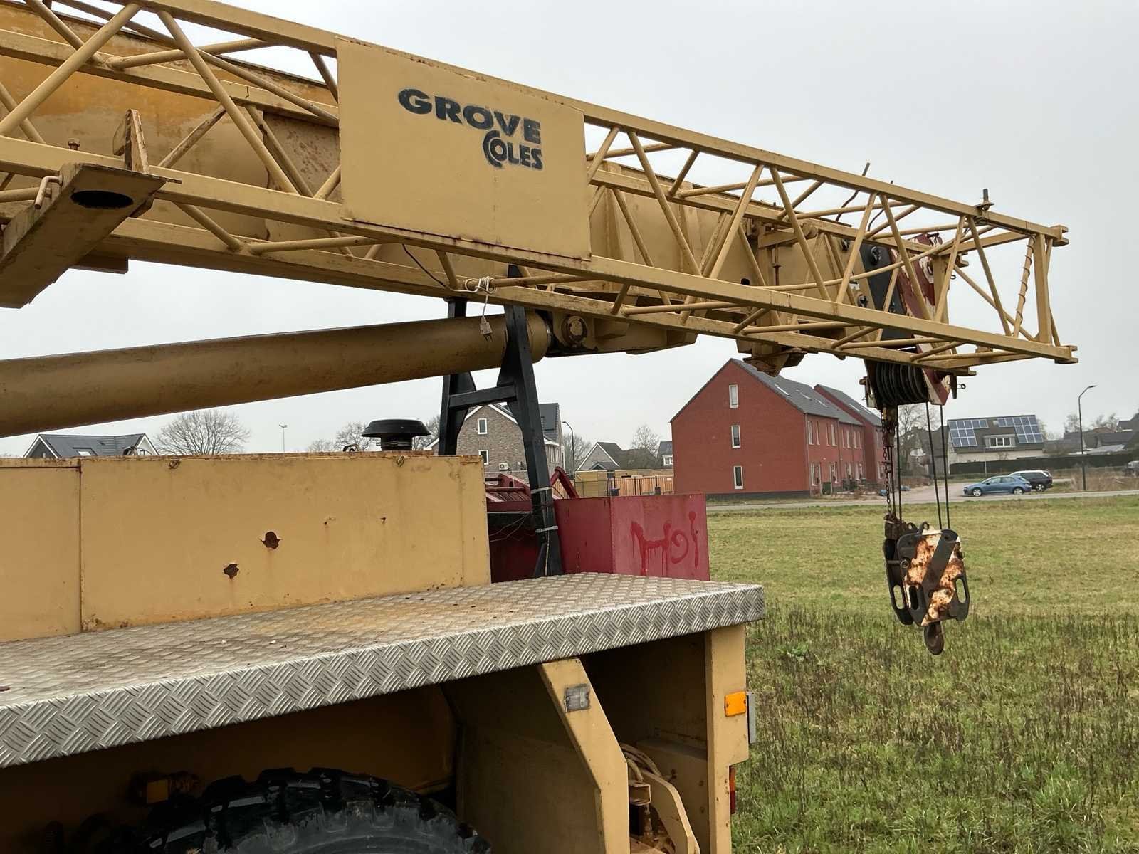 Voorzien van: JIB BAL (kleine haak),Groot hijsblok 25 Ton, 4x stempel, geen lekkages. Nee Merk: Grove Type: Coles Ranger 520 Bouwjaar: 1988 Serienummer: 71095(01) Kenteken: Belgisch Max. hijscapaciteit: 25000kg Max. mastlengte: 24m Aantal mastdelen: 2 Max. hijshoogte: 31m Max. haakhoogte: 31m Afgelezen urenstand: 5615 Met kraanboek: true Merk motor: Deutz Motorvermogen (kW): 165kW Aantal cilinders: 6 Aantal assen: 2 Bandenmaat: 17,5R25 Eigen gewicht: 20000kg Totale afmeting L: 11000mm Totale afmeting Breedte: 2600mm Totale afmeting Hoogte: 3400mm