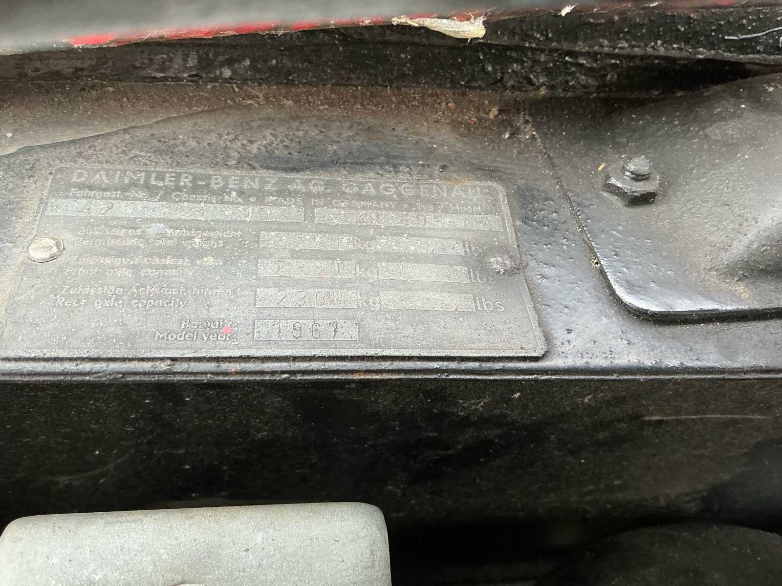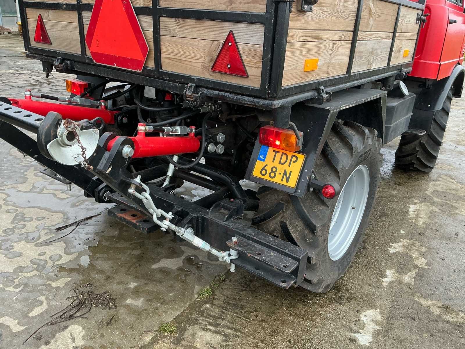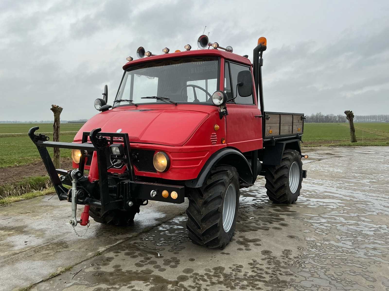 Urenstand: 2553 uur. Beschikt over een trekhaak, Om 621.914 motor, grote F versnellingsbak met kruip en superkruip, pro 540 toeren voor en achterzijde, zelfbouw front en achterhef (Fronthef is opklapbaar en te vergrendelen.), stuurbekrachtiging door middel van stuurcilinder, luchtcompressor, nieuwe brandstof pomp, 3 zijdige kiepbak, rondom werkverlichting, schuifraampje achterzijde. Bandenmaat: 340/65r18 bkt banden met velg. Maximale snelheid: 54 km/uur 10 jaar geleden is de cabine volledig gerestaureerd. Versnellingsbak en motor zijn 10 jaar geleden gereviseerd. Contactslot en startschakelaar zijn nieuw. Nee Merk: Mercedes-Benz Type: Unimog 421 Bouwjaar: 1967 Kenteken: TDP68N Chassisnummer: 121123-10-000405 Laadvermogen: 1000kg Vermogen (kW): 54kW Kleur: niet van toepassing Gewicht: 3500kg