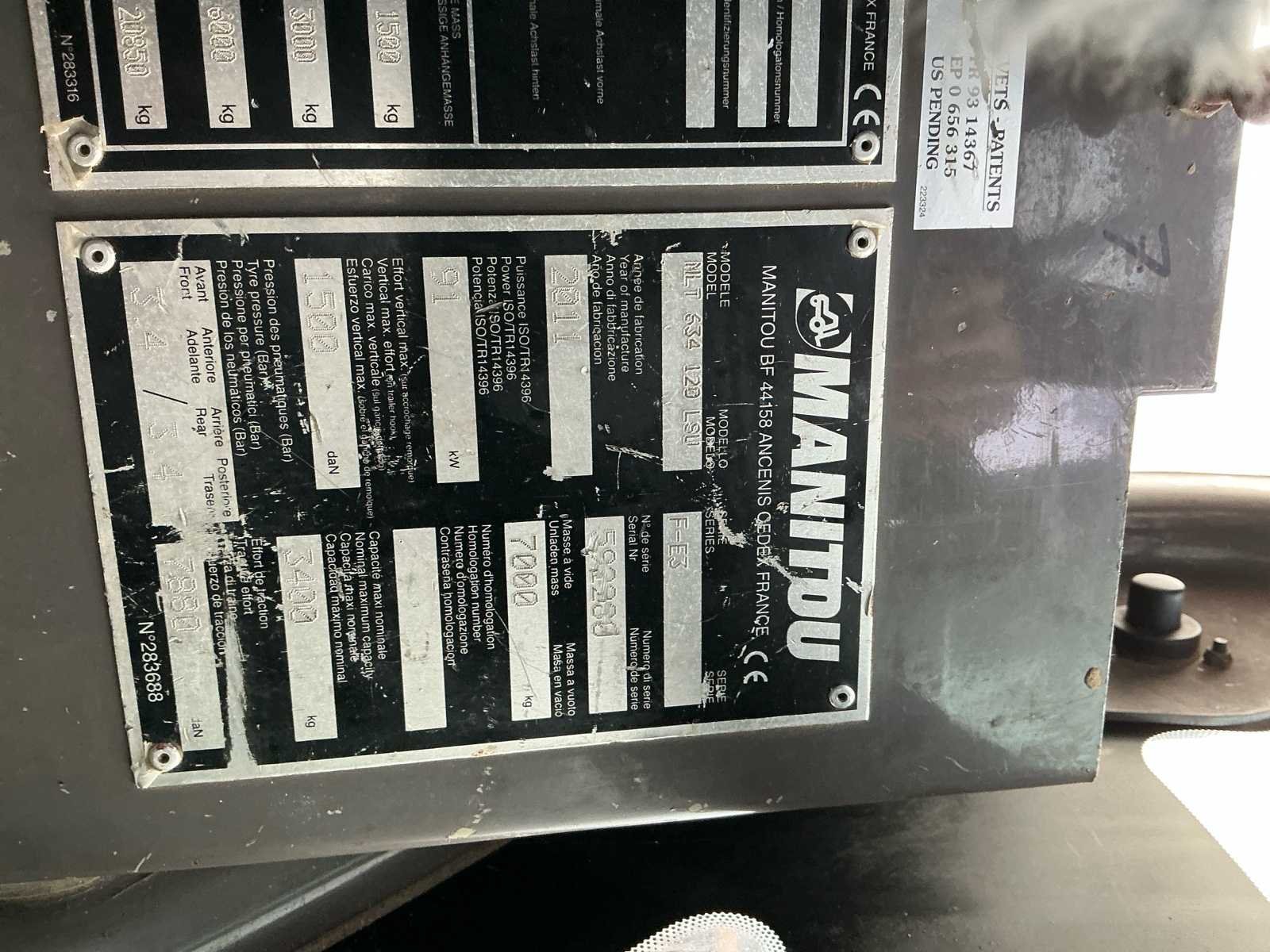 LET OP! dit voertuig heeft een kenteken registratie, bij afhalen dient u dit ter plaatste bij een derde partij te naam te stellen of te exporteren, hier zijn extra kosten aan verbonden) No Merk: Manitou Type: MLT 634-120 Bouwjaar: 2011 Kenteken: TXG-83-L Motorvermogen (kW): 91kW Hefvermogen: 3400kg Hefhoogte: 6005mm Cabine: true Luchtbanden: true Afgelezen urenstand: 7248 Eigen gewicht: 6950kg