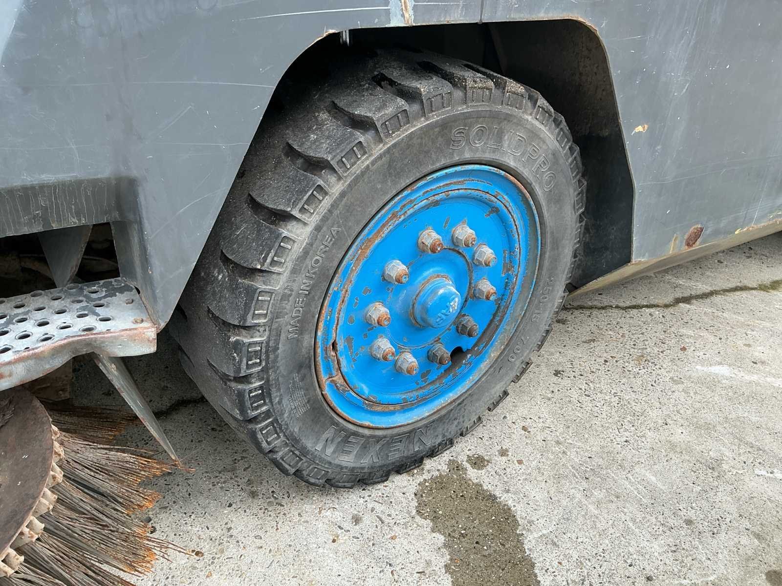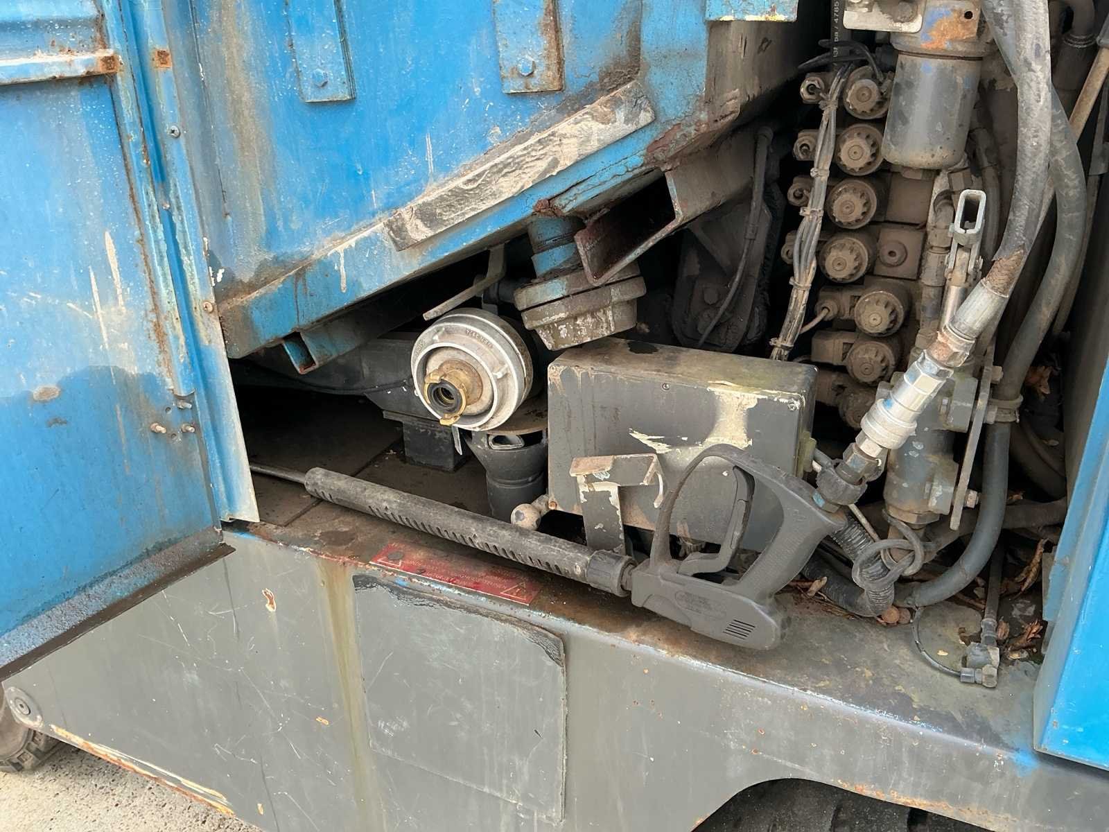 Voorzien van: RAVO 5002, zelfrijdende compacte straatveeg-/zuigmachine, merk RAVO, type 5002, bouwjaar 2000, uitgerust met hydraulisch kiepbare vuilcontainer en gesloten cabine, geschikt voor inzet op industrieterreinen, logistieke centra en gemeentelijke reiniging, urenstand: 5.847 uur (afgelezen), 6-cilinder Iveco diesel, vermogen: 81 kW, toerental: 700 – 2500 n/min, ledig gewicht: ca. 5.560 kg, max. totaalgewicht: 10.500 kg, hoppercapaciteit (vuilcontainer): 5,0 m³, watertank: 600 liter, werkbreedte standaard: 2.200 – 2.400 mm, werkbreedte met 3e borstel: tot 3.300 mm, kenteken: aanwezig, VIN: aanwezig op typeplaat, stalen borstels (verstelbaar), 3e borstel (verstelbaar), zuigarm, frontborstelunit, hydraulisch kiepbare vuilcontainer (5,0 m³), watertank (600 L), ingebouwde hogedrukspuit met haspel en spuitlans,TFT kleurmonitor in cabine, gesloten cabine met bedieningsconsole, radio, bijrijdersstoel, trekhaak, verlichting. No Merk: Ravo Type: Ravo 5002 SI Bouwjaar: 2000 Serienummer: 517780000318 Werkbreedte: 3300mm Afgelezen urenstand: 5847hr Eigen gewicht: 5560kg Totale afmeting L: 4600mm Totale afmeting Breedte: 1920mm Totale afmeting Hoogte: 2800mm