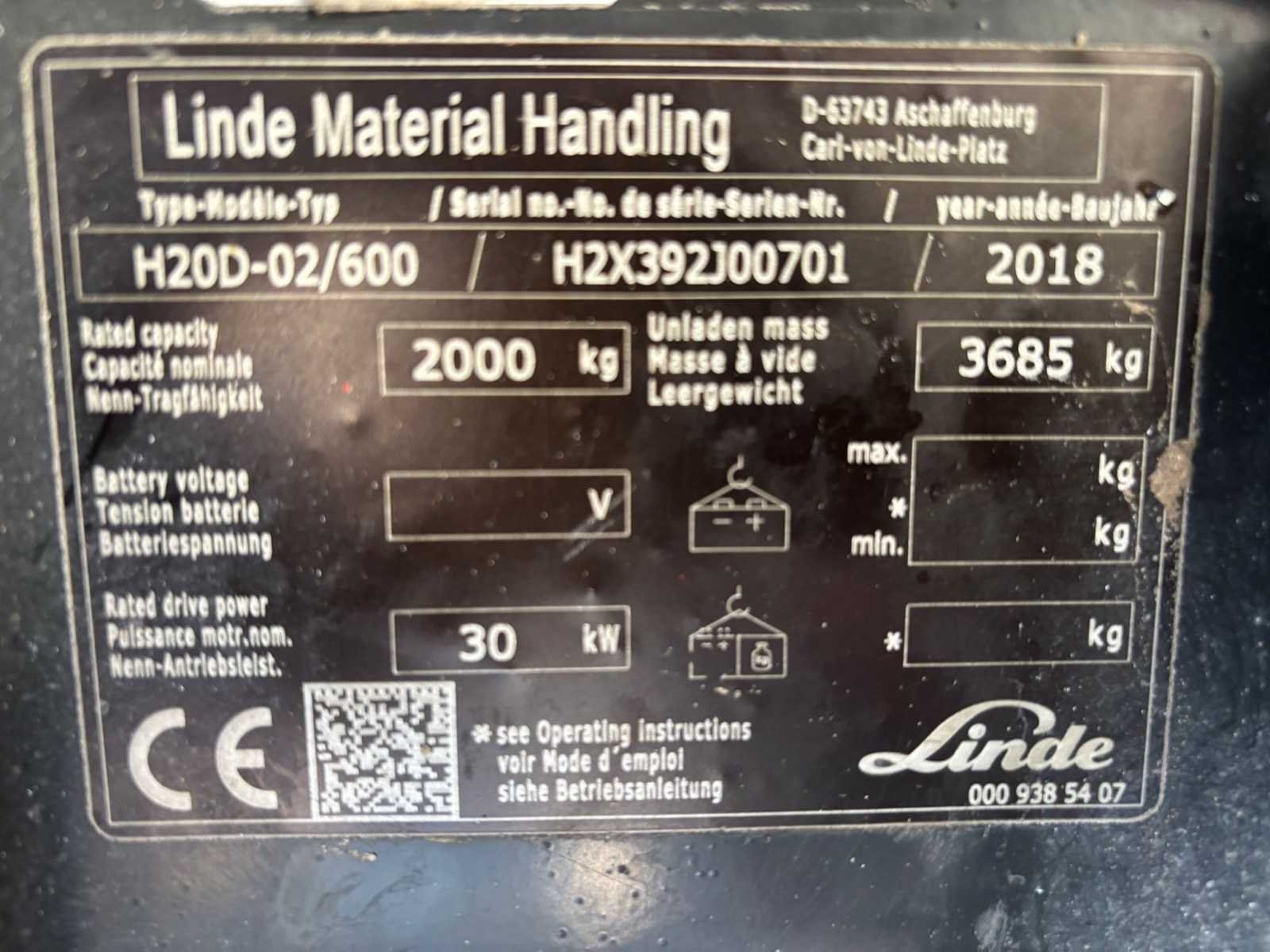 Nee Merk: Linde Type: H20D-02/600 Bouwjaar: 2018 Serienummer: H2X392J00701 Brandstof: Diesel Aantal wielen: 4 Afgelezen urenstand: 7602 Free-lift: true Side-shift: true Eigen gewicht: 3685kg Hefvermogen: 2000kg Lepellengte: 1100mm Max. hefhoogte: 4700mm Vol rubber banden: true Minimale doorrijhoogte: 2150mm Totale afmeting L: 3700mm Totale afmeting Breedte: 1200mm Diesel: true Leveringsvoorwaarden: Gratis op vrachtwagen