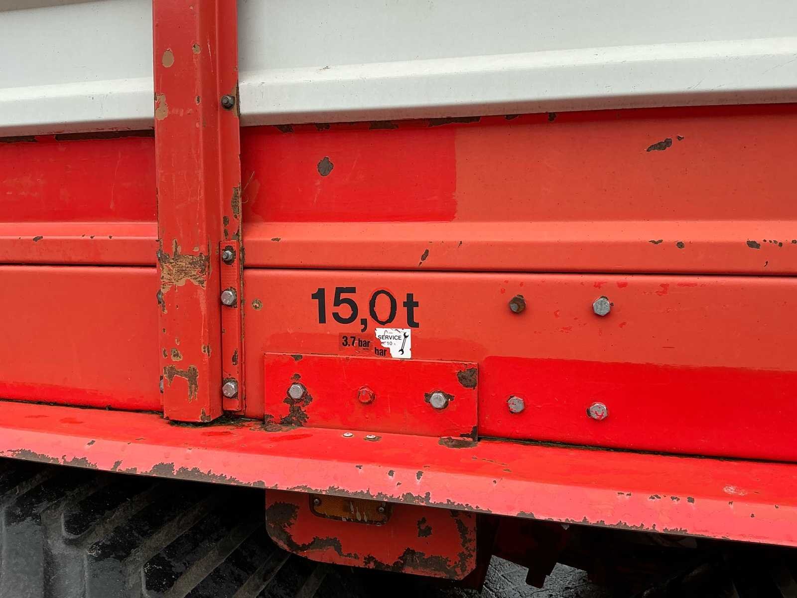 15 Ton, 35m3 inhoud Bedieningskast, nieuwe aftakas, steunpoot, trekoog, K80 koppeling, 1000 toeren aftakas. Nee Merk: Kemper Type: Green-Trans S-1600 Bouwjaar: 1997 Kenteken: LGJ07X Opslagcapaciteit: 35 Met onderstel: true Bandenmaat: 700/40-22.5 Maximaal aantal messen: 41 Verdeelwals: true Stuuras: true