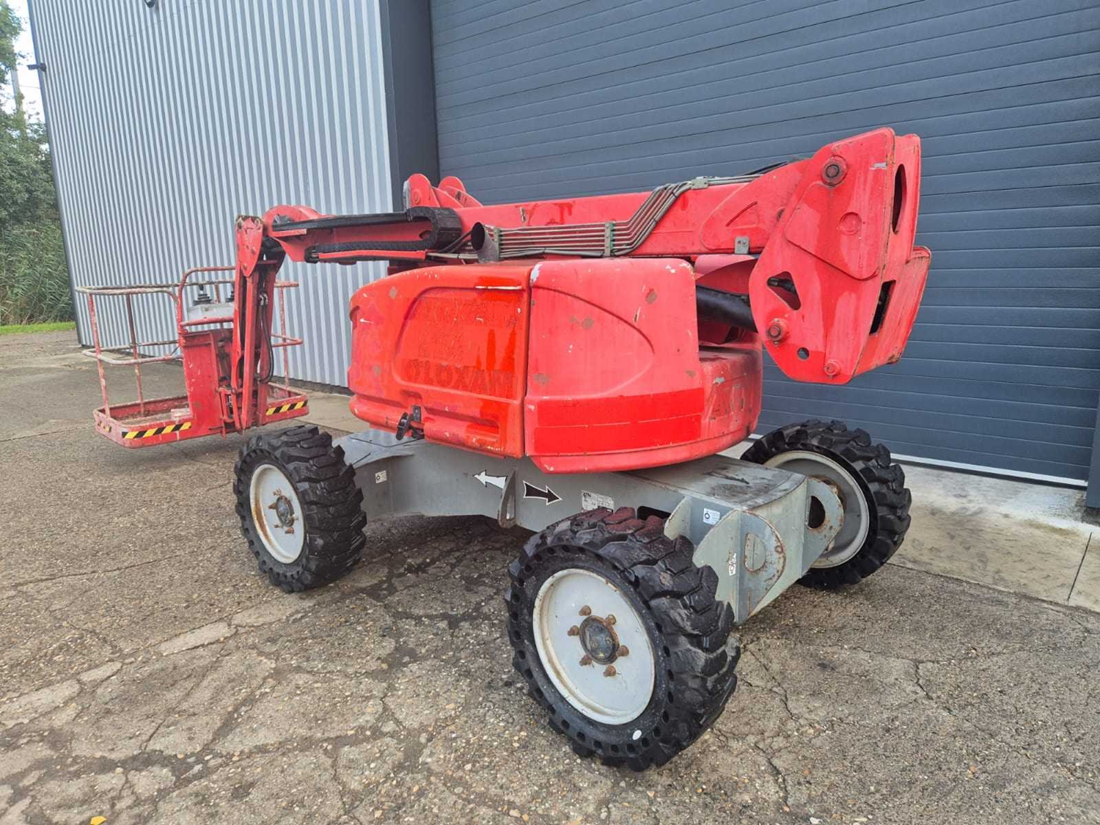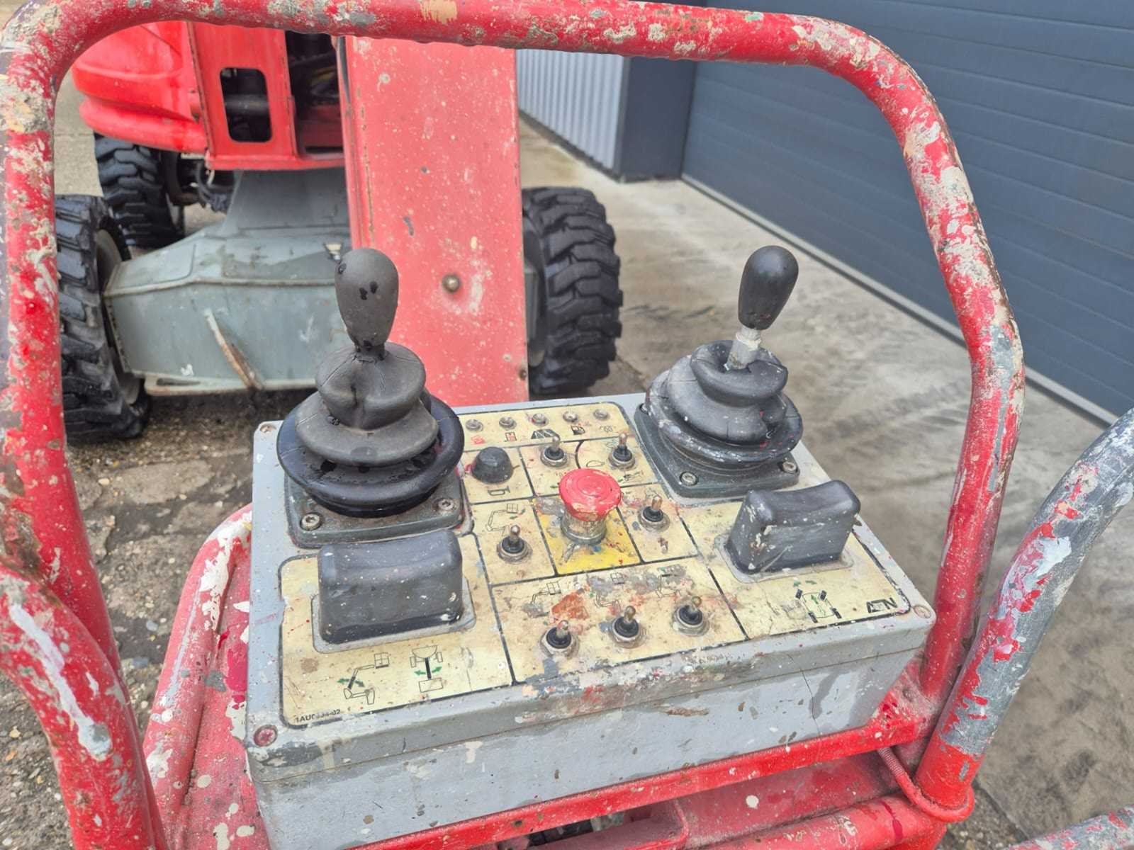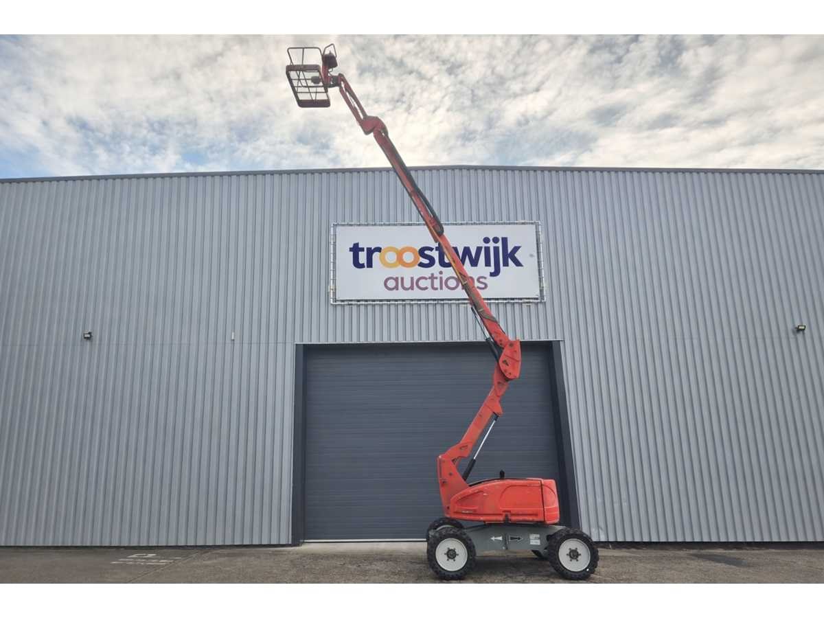 Voorzien van: ATN Zebra 12, bouwjaar: 2011, GVW (eigen gewicht): 5.150 kg, max. platformcapaciteit: 230 kg, max. rijsnelheid: 4,5 km/h, max. hellingshoek: 40%, platformhoogte: ca. 10,00 m, 4x4 terreinuitvoering, proportionele bediening voor aandrijving en hefmechanisme, overbelastingssensor, werkhoogte 12,20 m, platformhoogte 10,20 m, horizontaal bereik 8,50 m, doorrijhoogte 4,42 m, hefcapaciteit 230 kg, draaitafelrotatie 2x178°, platformrotatie 2x90°, giekrotatie 133°, platformbreedte 1,45 m, platformlengte 0,80 m, breedte 1,94 m, lengte - ingeklapt 6,05 m, hoogte - ingeklapt 2,11 m, lengte - ingeklapt 4,50 m, hoogte - ingeklapt 2,68 m, wielbasis 2,00 m, bodemvrijheid midden 0,39 m, draaicirkel - binnen 1,57 m, draaicirkel - buiten 4,00 m, banden 33x12x20, rijsnelheid - ingeklapt 6 km/u., rijsnelheid - uitgeklapt 1 km/u. No Merk: ATN Type: Zebra 12 Bouwjaar: 2011 Knikarm hoogwerker: true Werkhoogte: 12200mm Horizontale rijkwijdte: 8500mm Plateau afm. l: 800mm Plateau afm. b: 1950mm Platform capaciteit: 230kg Afgelezen urenstand: 3459 Eigen gewicht: 5150kg Totale afmeting L: 6000mm Totale afmeting Breedte: 1500mm Totale afmeting Hoogte: 2100mm