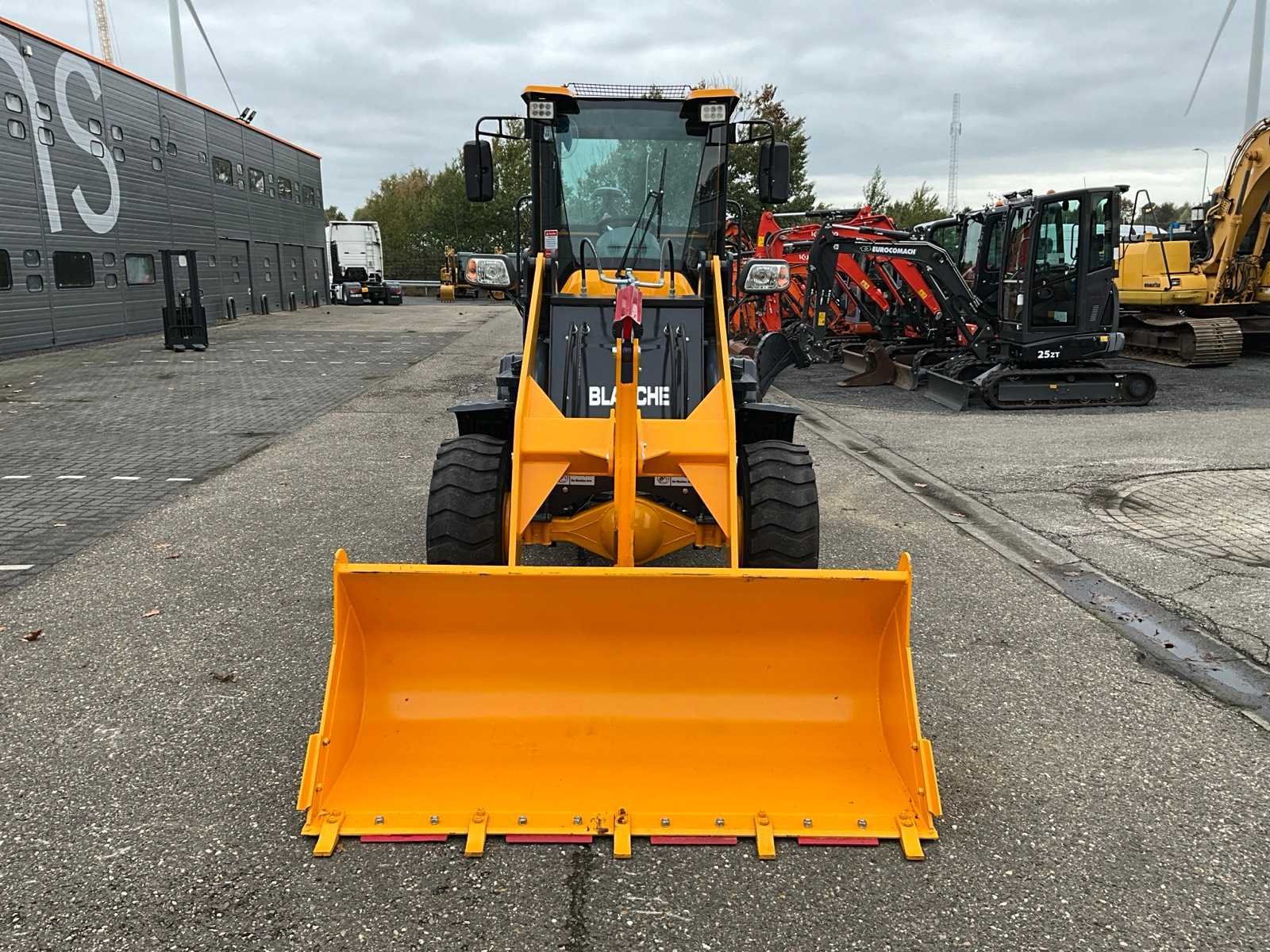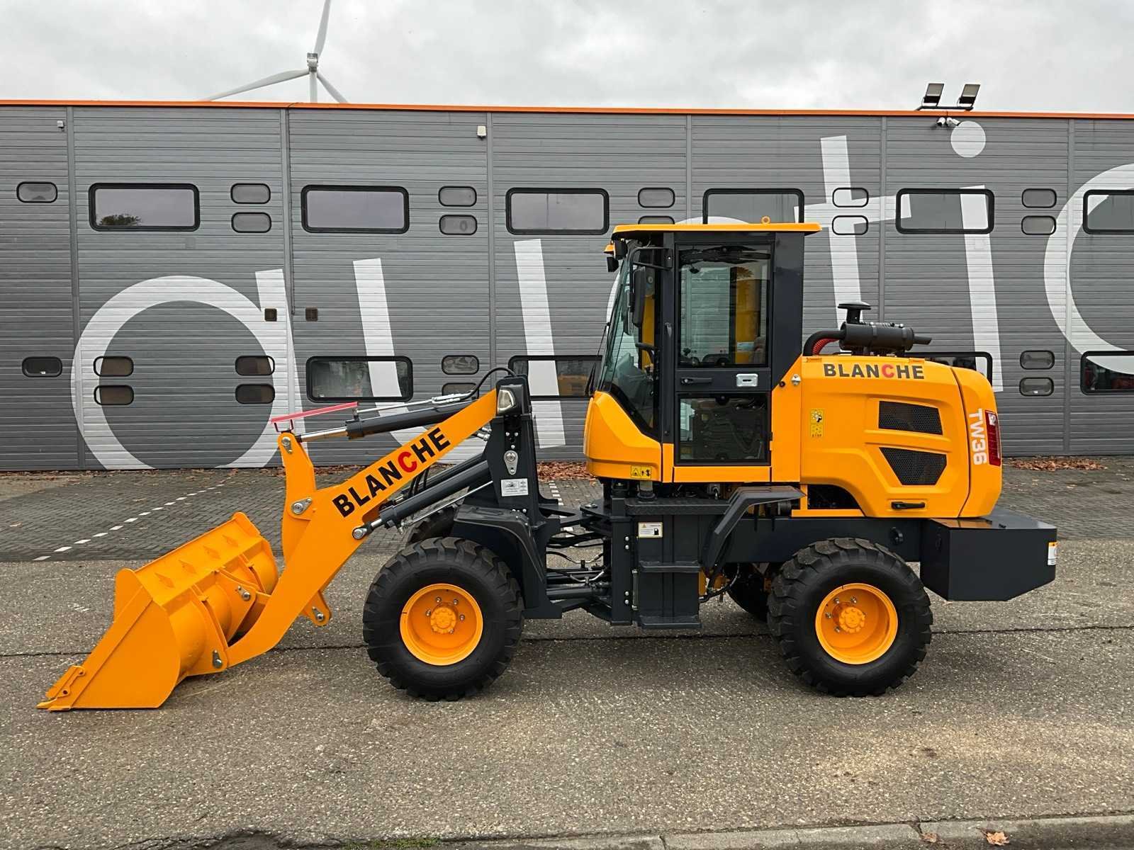 Dichte bak met tanden 1800mm, trommel remmen, 4WD, 2 rijsnelheden, LED verlichting, joystick bediening No Merk: Blanche Type: TW36 Bouwjaar: 2025 Serienummer: 25D064 Motorvermogen (kW): 42kW Aantal cilinders: 4 Brandstof: Diesel Bedrijfsgewicht: 3000kg Graafbak afm. b: 1800mm Bandenmaat: 20.5/70-16 Cabine: true Totale afmeting L: 5500mm Totale afmeting Breedte: 1900mm Totale afmeting Hoogte: 2700mm
