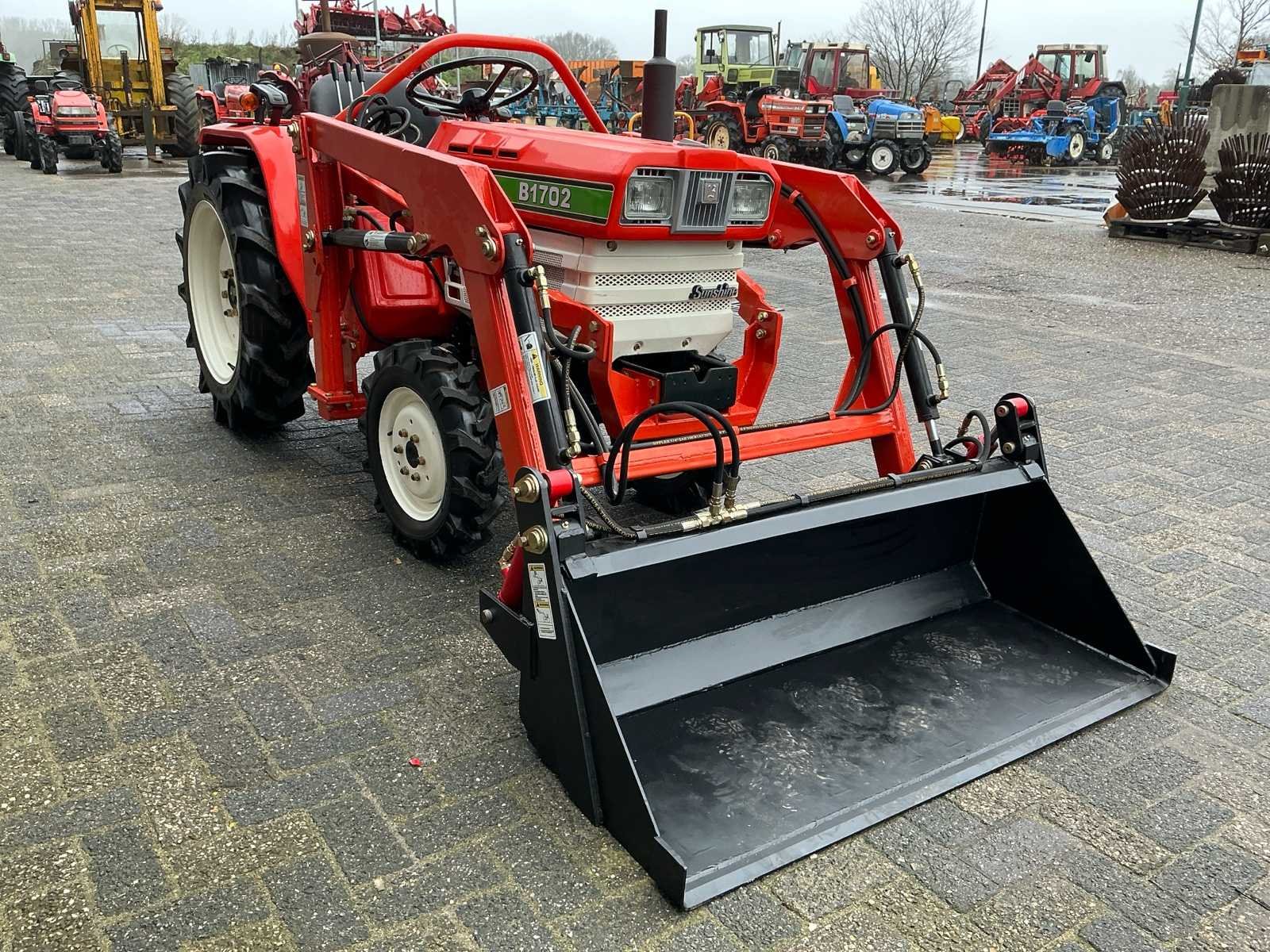 Voorzien van voorlader, hefinrichting, aftakas — afmetingen schepbak: 50x125x35 Nee Merk: Kubota Type: B1702 Afgelezen urenstand: 25 Bandenmaat voor: 5.00-12 Bandenmaat achter: 8.3R22 super radial Voorlader: true Totale afmeting L: 3600mm Totale afmeting Breedte: 1200mm Totale afmeting Hoogte: 1200mm