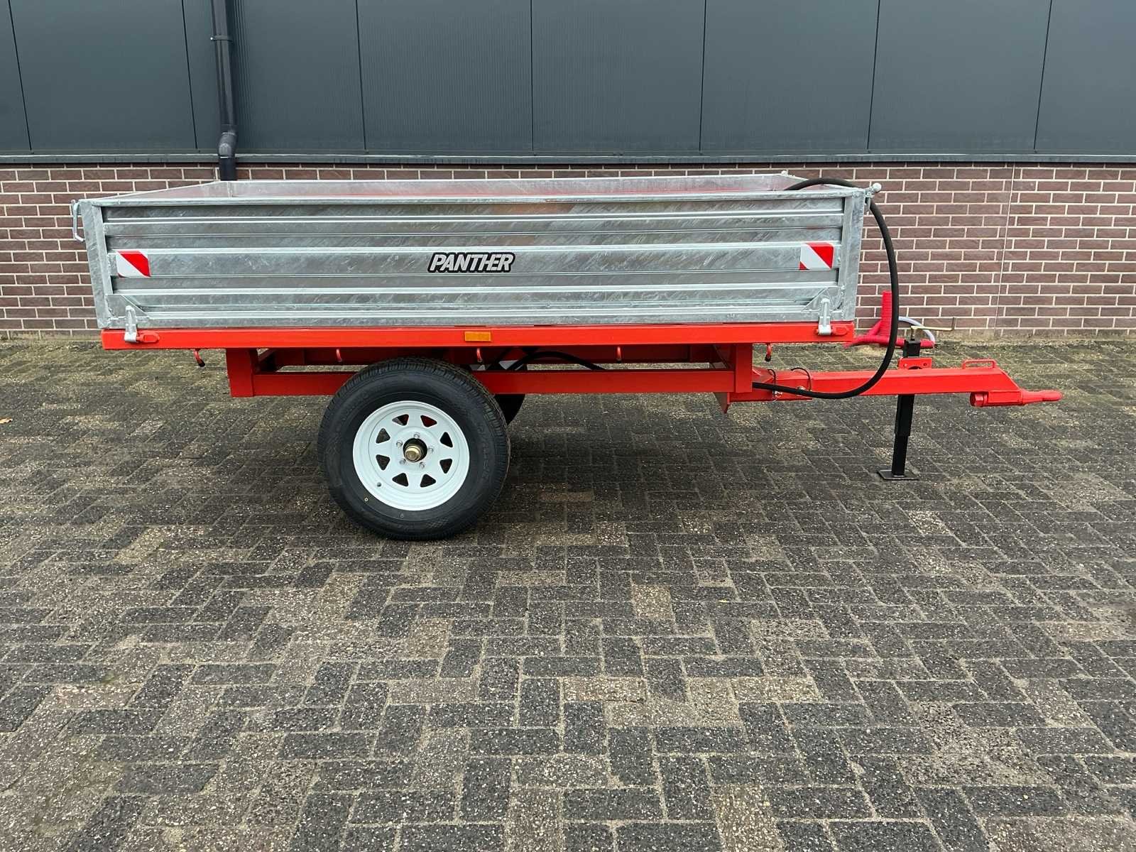 Voorzien van trekoog, steunpoot, hydraulische aansluiting, opklapbare kleppen (zijkanten), verlichtingsbalk Nee Merk: Panther Type: T2.5/2 Bouwjaar: 2024 Totaal max. gewicht: 2t Aantal assen: 1 Bandenmaat: 185R14C WANDA Totale afmeting L: 3400mm Totale afmeting Breedte: 1250mm Totale afmeting Hoogte: 1200mm