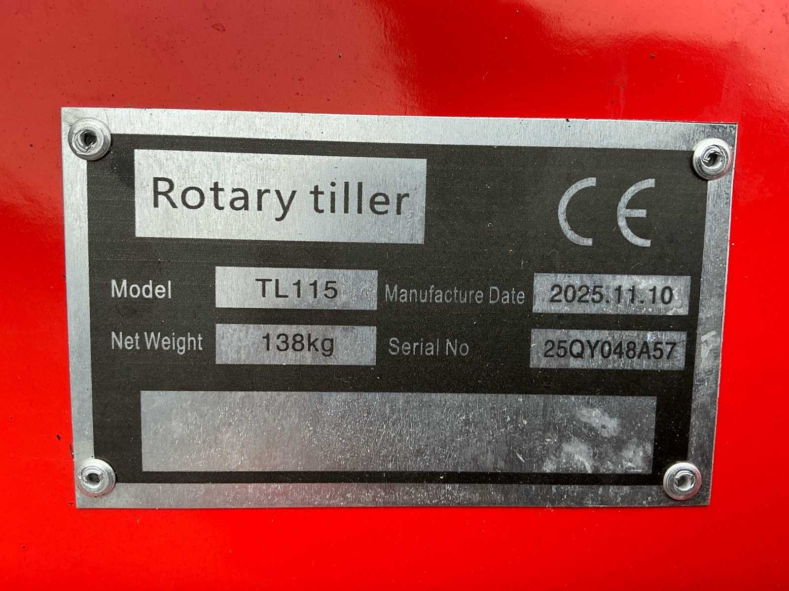 Voorzien van aftakas, driepunts ophanging, steunpoot Nee Merk: Panther Type: TL115 Bouwjaar: 2025 Serienummer: 25QY048A57 Werkbreedte: 115mm Totale afmeting L: 750mm Totale afmeting Breedte: 1350mm Totale afmeting Hoogte: 900mm