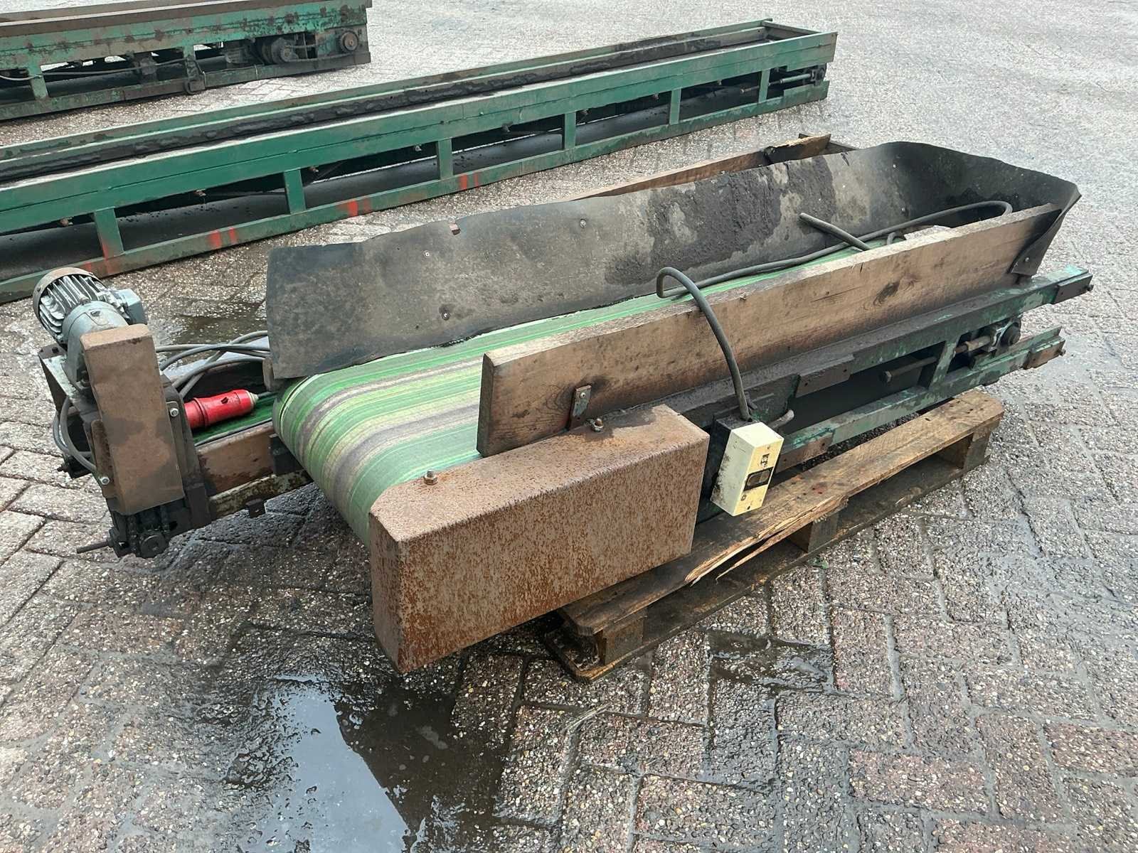 Voorzien van vlakke banden, 2x 380v aansluiting Nee Kleur: Groen Lengte: 220cm Breedte: 100cm