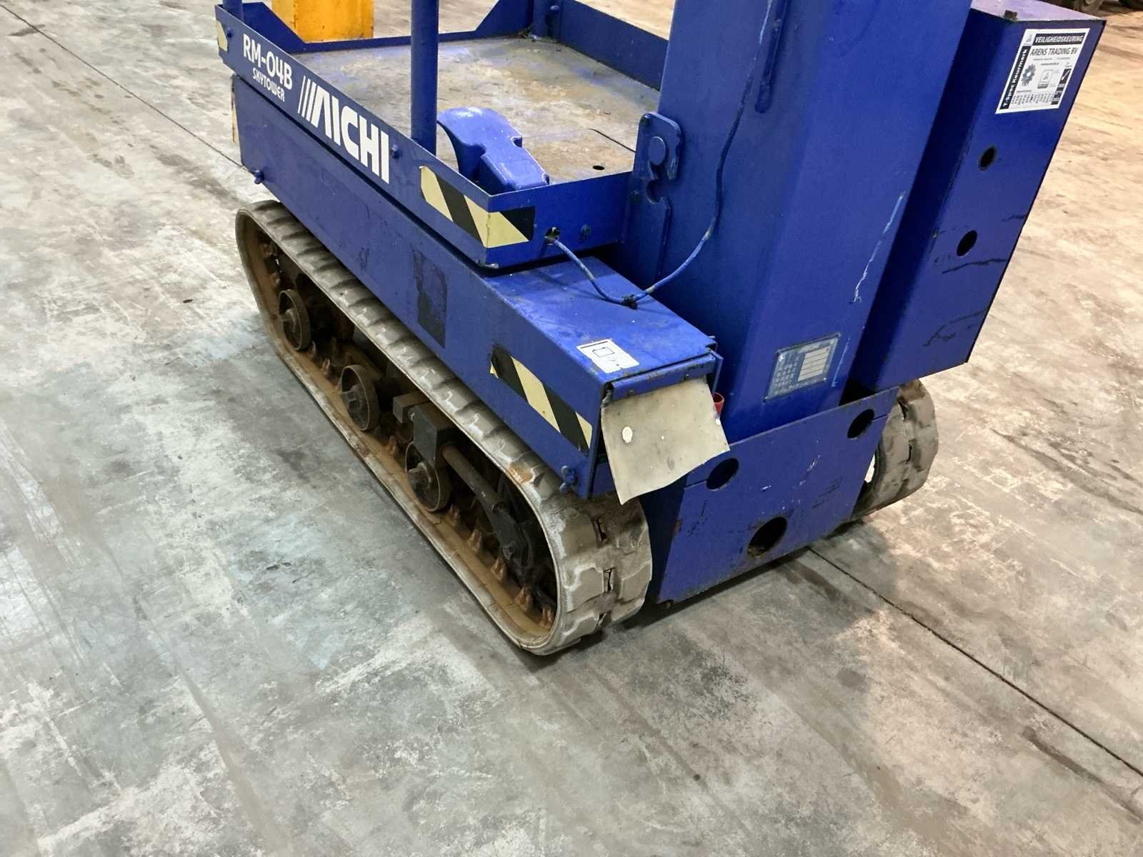 Voorzien van: nonmarking rupsband, bedieningspaneel, Nee Merk: Achi Type: RM04B Bouwjaar: 2007 Serienummer: 710921 Elektrisch: true Schaarhoogwerker: true Plateau afm. l: 950mm Plateau afm. b: 730mm Platform capaciteit: 200kg Eigen gewicht: 630kg Totale afmeting L: 1250mm Totale afmeting Breedte: 780mm Totale afmeting Hoogte: 1730mm