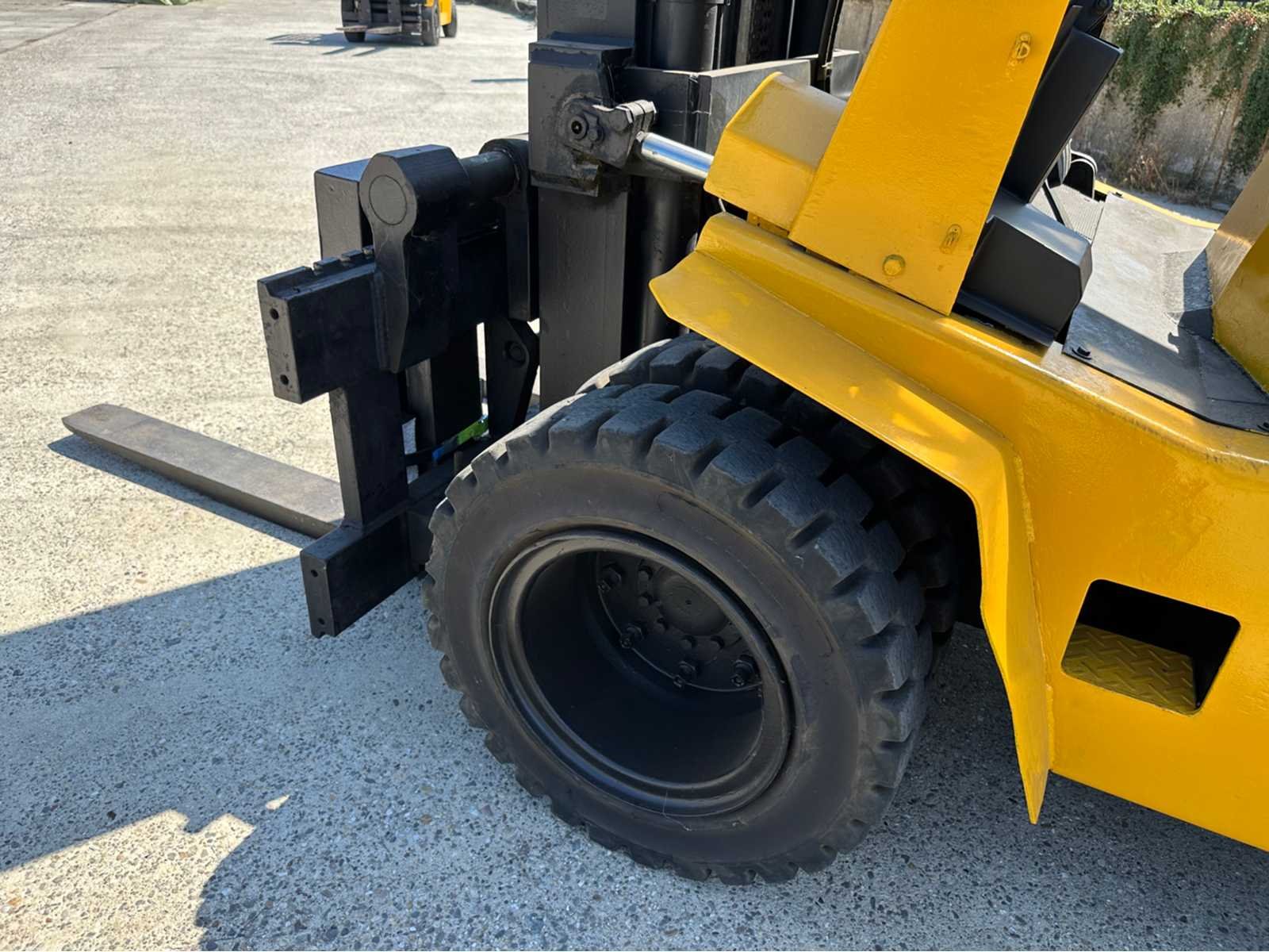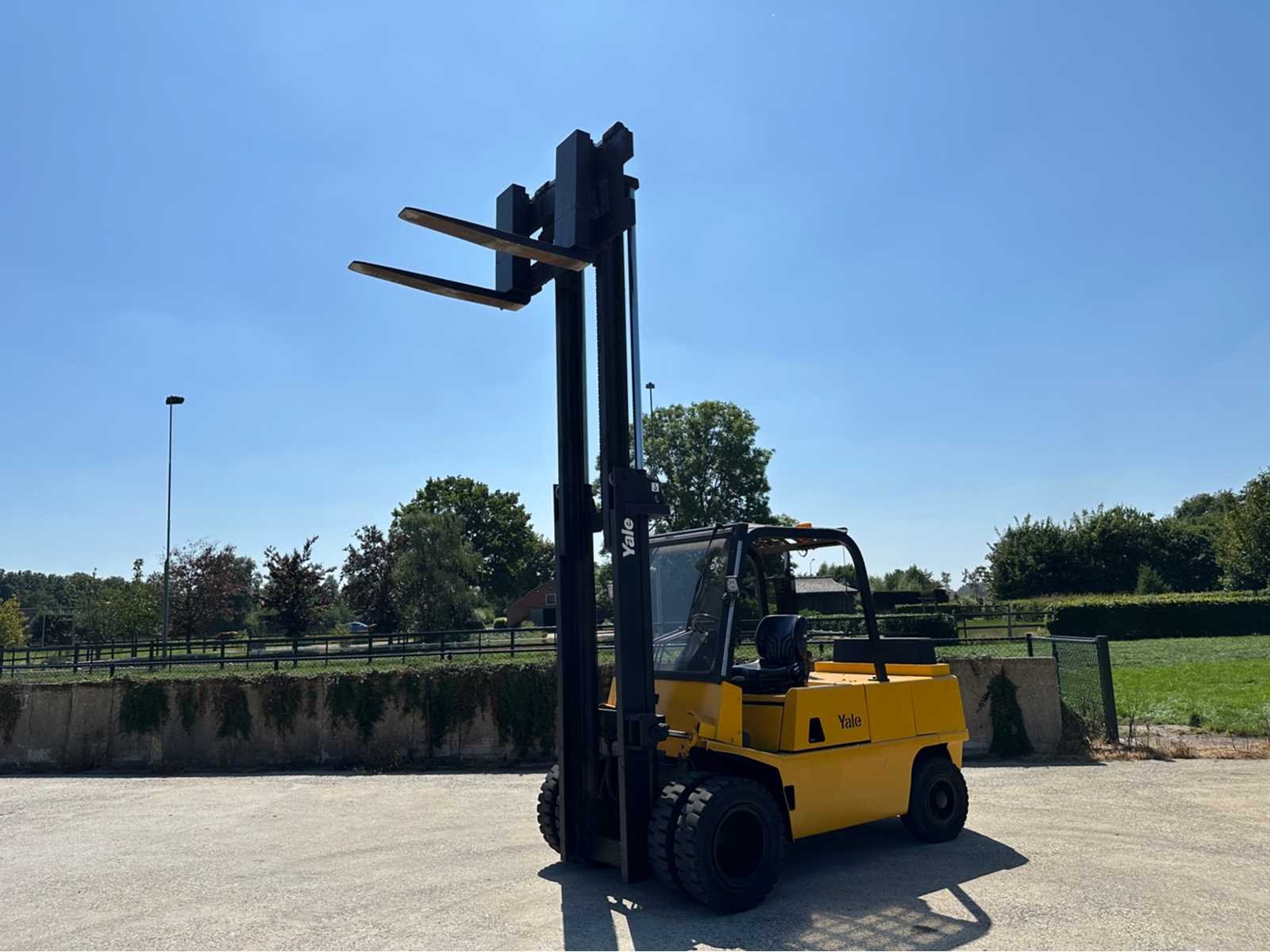 Motor: Perkins 1004.42 dieselmotor met een vermogen van 60 kW, Gewicht: 7,08t, Draaicirkel: circa: 2,75 m, Rijsnelheid: ± 22–24 km/h, Hefsnelheid: ± 0,53–0,55 m/s, Daalsnelheid: ± 0,51/0,39 m/s (met/zonder last) Nee Merk: Jungheinrich Type: DFG50 Bouwjaar: 1992 Serienummer: 74611023x8 Brandstof: Diesel Aantal wielen: 4 Afgelezen urenstand: 4288 Duplex mast: true Hefvermogen: 5000kg Lepellengte: 1200mm Max. hefhoogte: 5000mm Vol rubber banden: true Minimale doorrijhoogte: 2700mm Totale afmeting Breedte: 4530mm Totale afmeting Hoogte: 3290mm Diesel: true