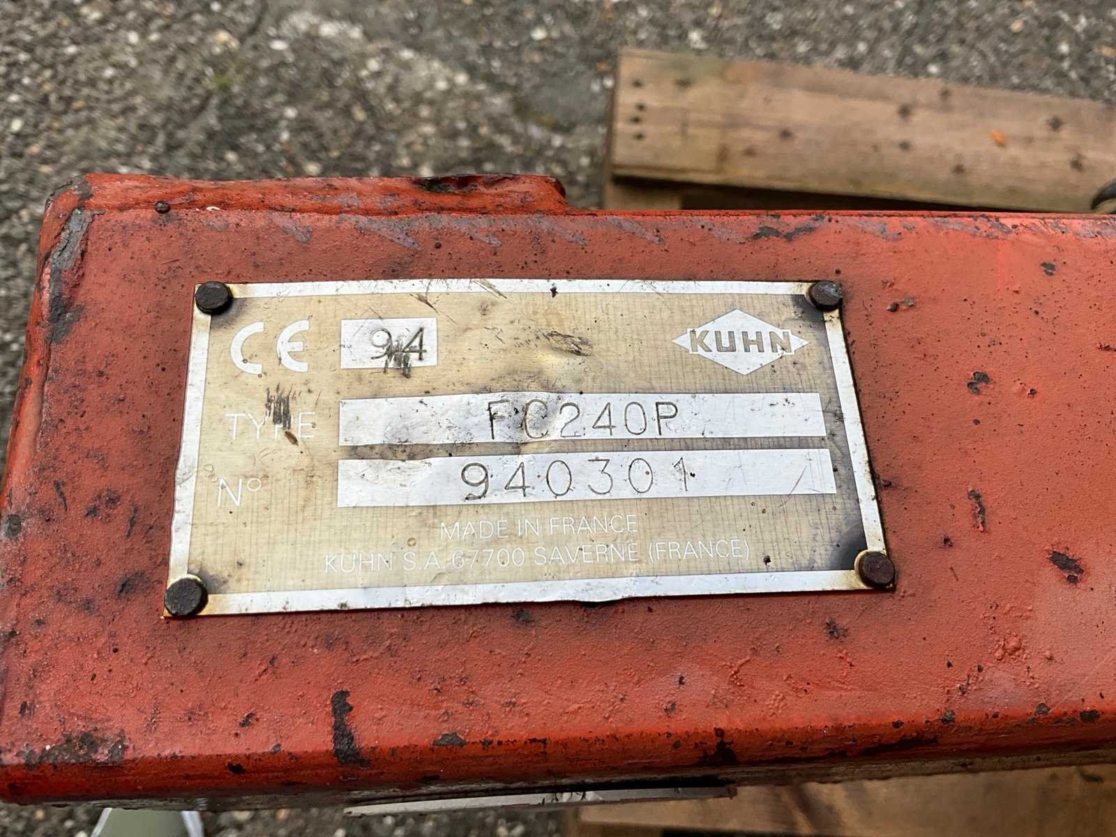 Voorzien van 3 punts aansluiting; 6 schijven met messen Nee Merk: Kuhn Type: FC 240 P Serienummer: 940301 Werkbreedte: 2400mm