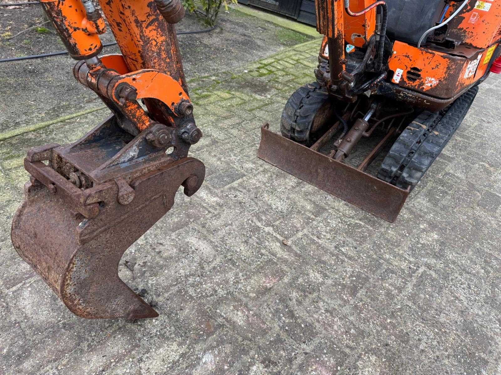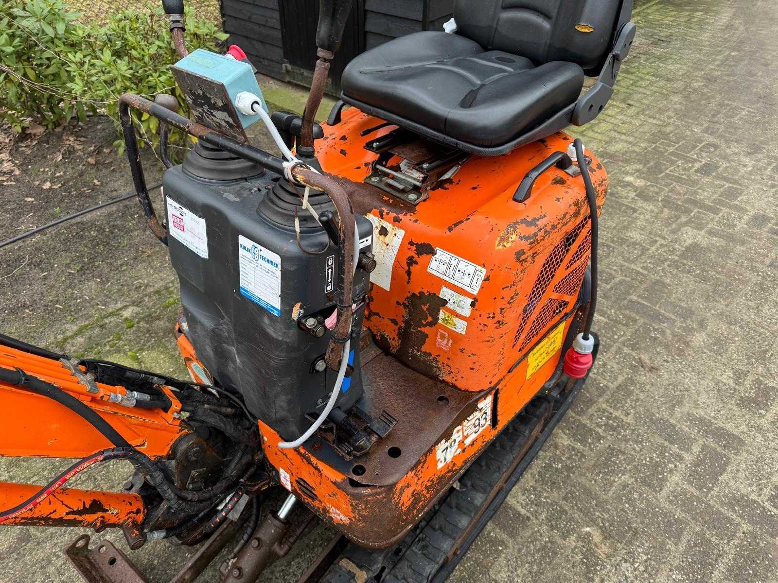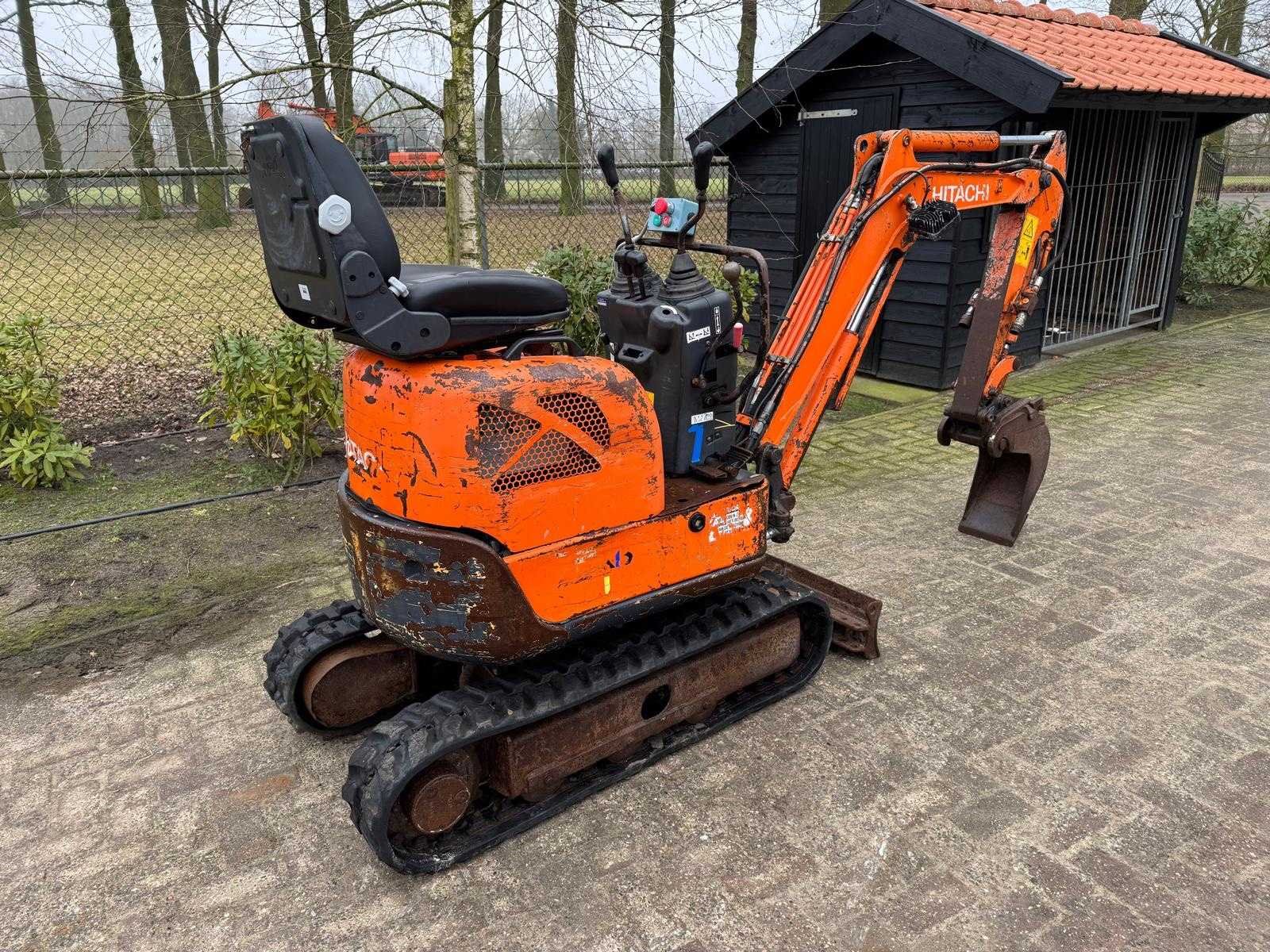 Werkend No Merk: Hitachi Type: ZX10U Bouwjaar: 2009 Brandstof: Electrisch Bedrijfsgewicht: 1060kg Inclusief graafbak: Ja Rups breedte: 180mm Afgelezen urenstand: 3048 Eigen gewicht: 1100kg Totale afmeting L: 2970mm Totale afmeting Breedte: 1000mm Totale afmeting Hoogte: 2150mm