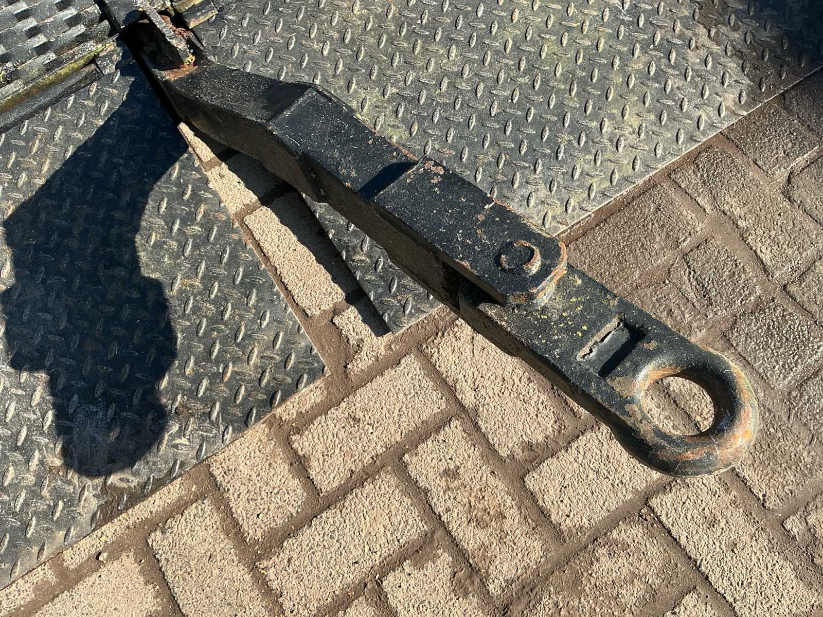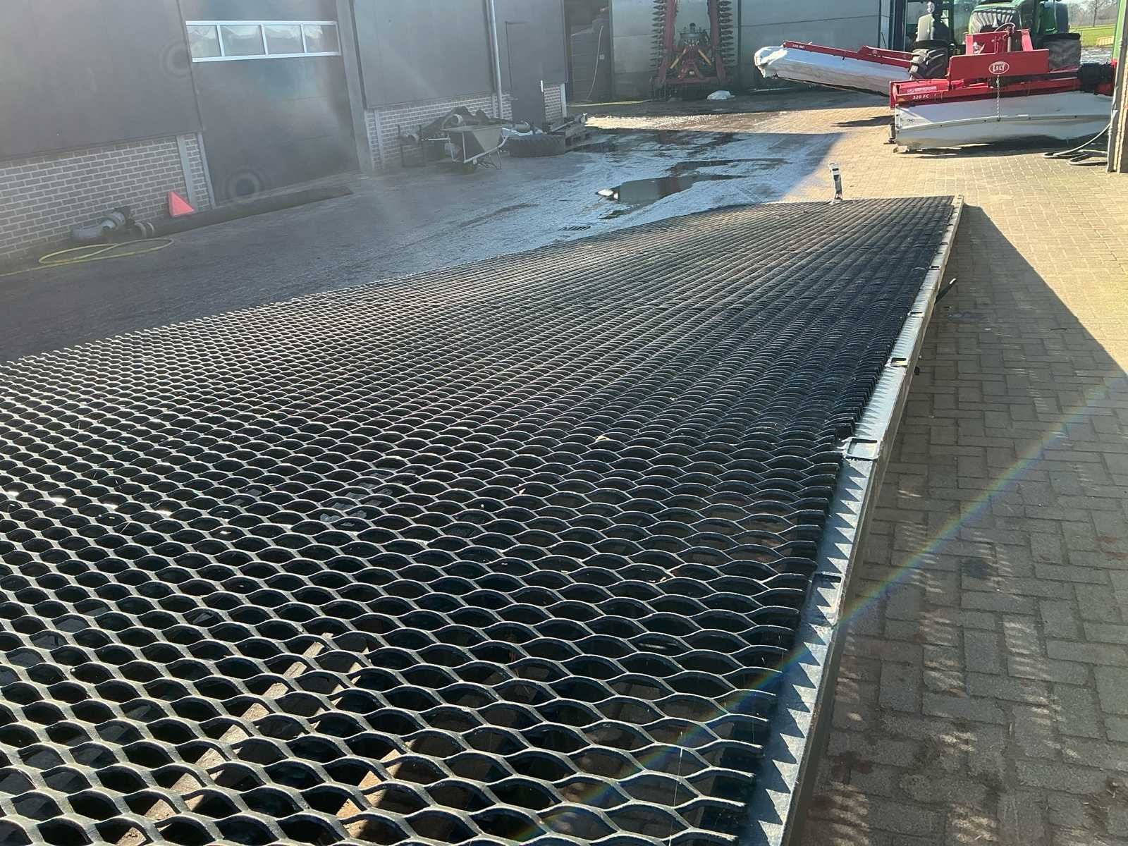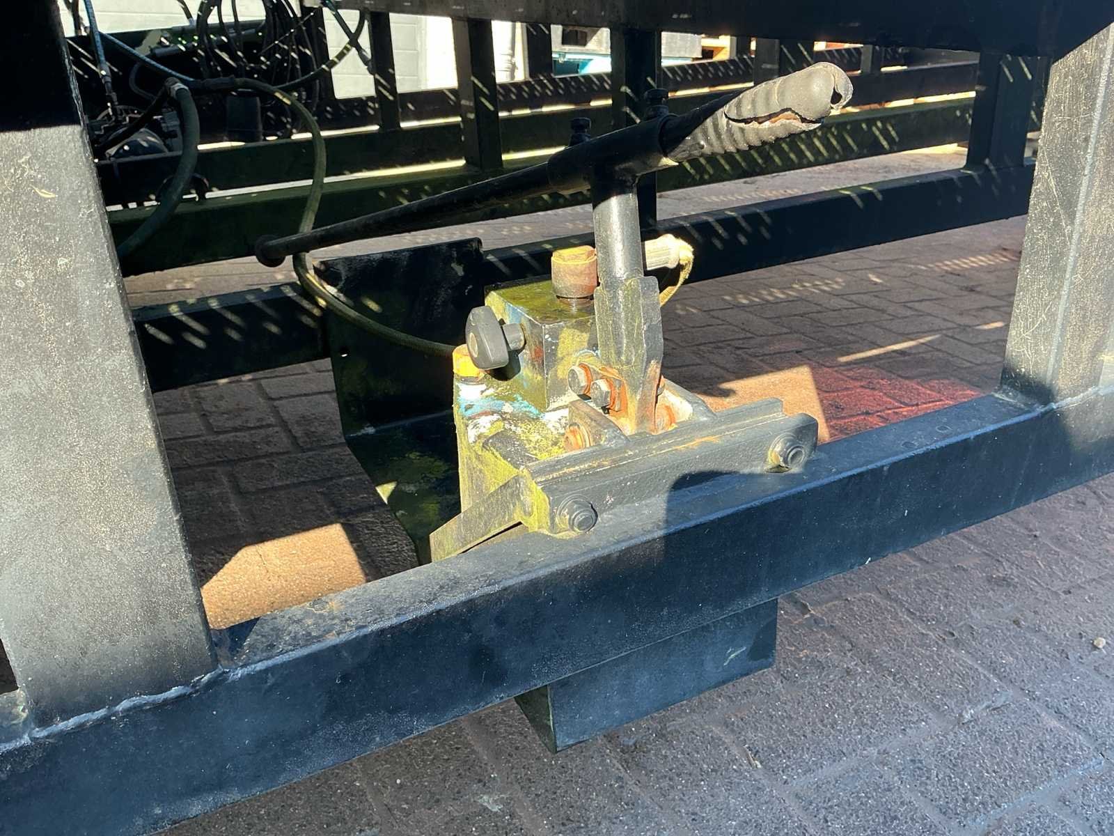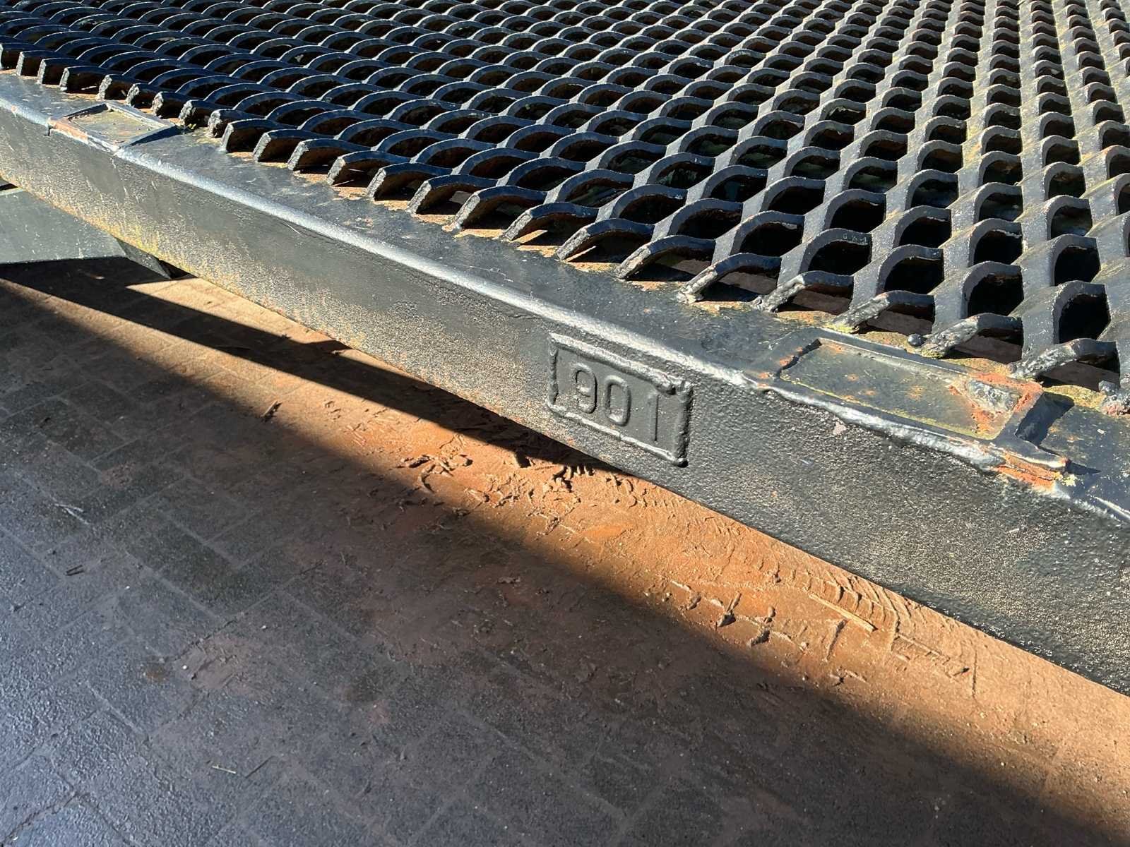 Voorzien van: handpomp, elektrische pomp, vol rubberen banden, haakoog, Zware stalen laadbrug / oprijplateau met traanplaat rijvlak, 12,00 meter lang en 2,50 meter breed, voorzien van oprijklep en robuust stalen frame, geschikt voor het laden van voertuigen, tractoren en machines, met een geschat draagvermogen van circa 10–15 ton. No Totale afmeting L: 12100mm Totale afmeting Breedte: 2400mm Totale afmeting Hoogte: 1000mm