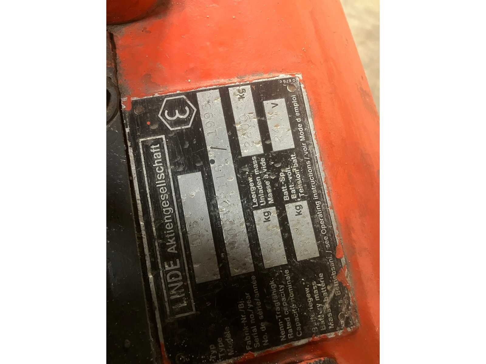 Nee Merk: Linde Type: E15 Bouwjaar: 1993 Serienummer: 324D02102115 Brandstof: Electrisch Mast: Duplex Soort band: Volrubber Aantal wielen: 3 Afgelezen urenstand: 8003 Duplex mast: true Eigen gewicht: 2200kg Hefvermogen: 1500kg Lepellengte: 1000mm Max. hefhoogte: 2800mm Hefhoogte: 2800mm Vol rubber banden: true Minimale doorrijhoogte: 2000mm Totale afmeting L: 2800mm Totale afmeting Breedte: 1100mm Totale afmeting Hoogte: 2000mm