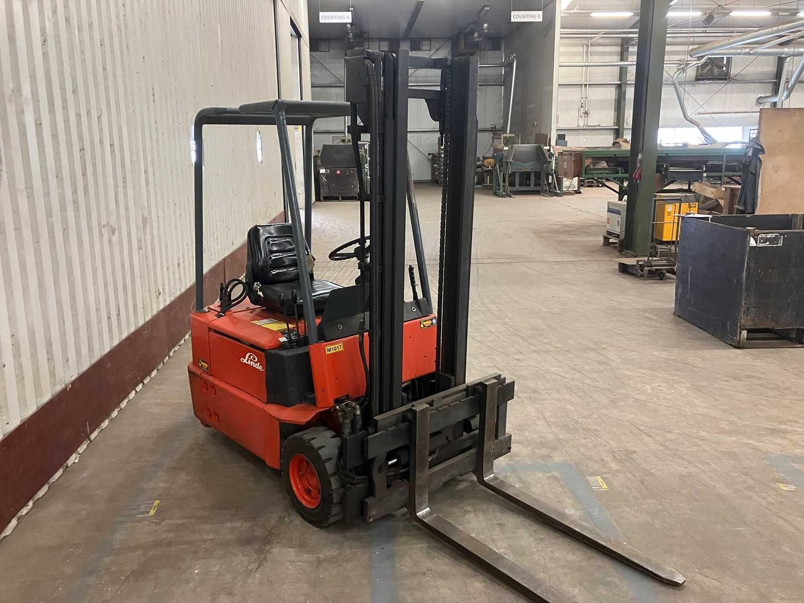 Nee Merk: Linde Type: E15 Bouwjaar: 1990 Brandstof: Electrisch Mast: Duplex Soort band: Volrubber Aantal wielen: 3 Afgelezen urenstand: 51395 Side-shift: true Duplex mast: true Eigen gewicht: 2200kg Hefvermogen: 1500kg Lepellengte: 1000mm Max. hefhoogte: 3300mm Hefhoogte: 3300mm Vol rubber banden: true Minimale doorrijhoogte: 2100mm Totale afmeting L: 2800mm Totale afmeting Breedte: 1100mm Totale afmeting Hoogte: 2100mm