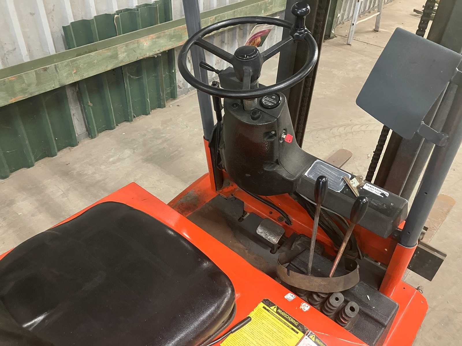 Accu slecht, motor kapot Nee Merk: Linde Type: E12 Bouwjaar: 1990 Brandstof: Electrisch Mast: Duplex Soort band: Volrubber Aantal wielen: 3 Afgelezen urenstand: 31693 Duplex mast: true Eigen gewicht: 2200kg Hefvermogen: 1200kg Lepellengte: 1000mm Max. hefhoogte: 2800mm Hefhoogte: 2800mm Vol rubber banden: true Minimale doorrijhoogte: 2000mm Totale afmeting L: 2700mm Totale afmeting Breedte: 1100mm Totale afmeting Hoogte: 2000mm