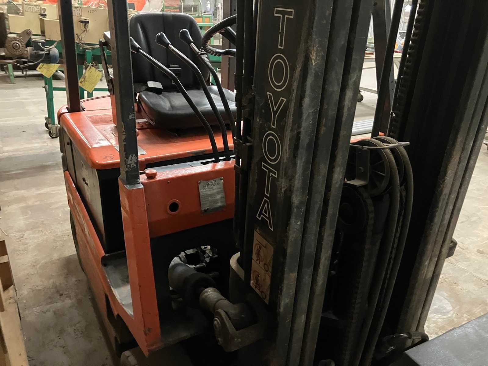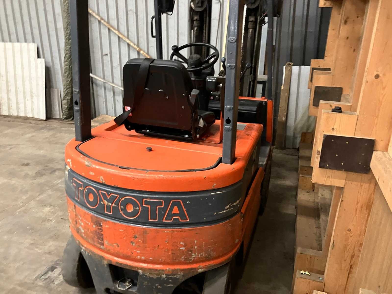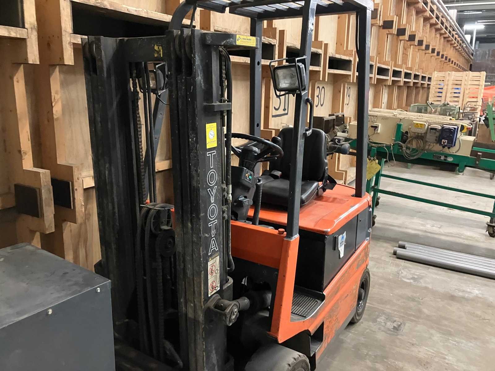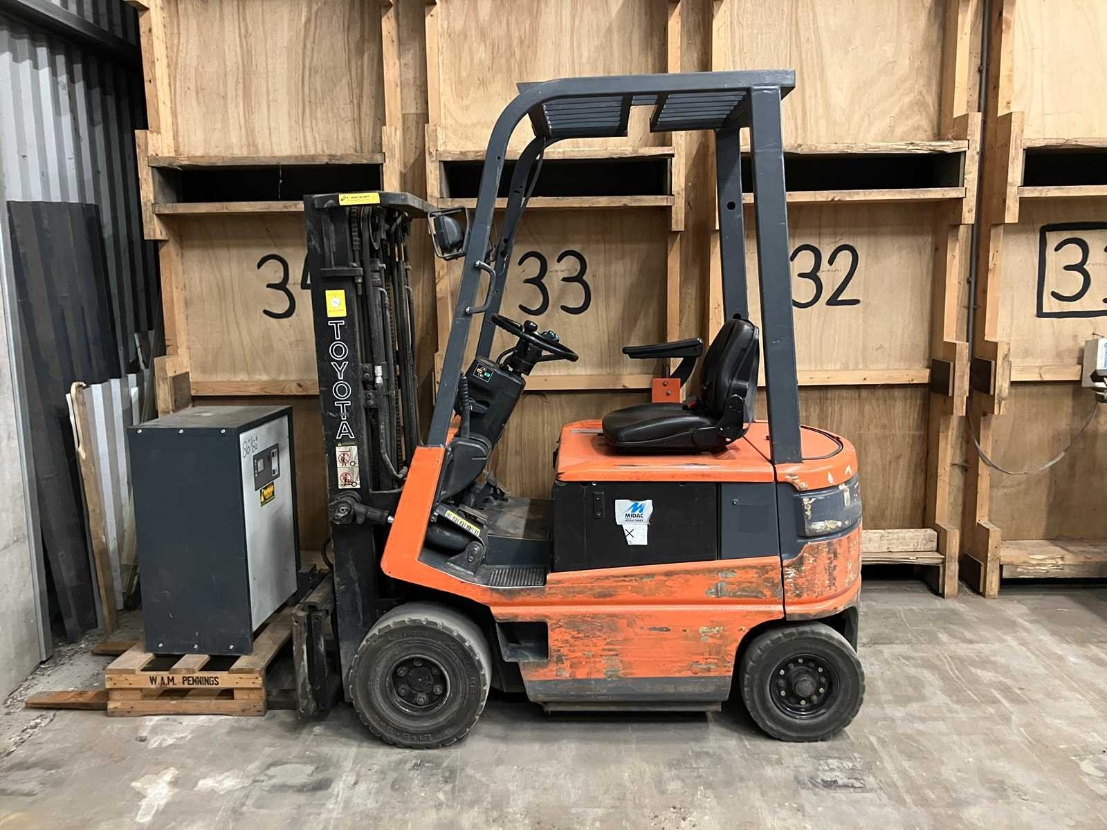 Slechte accu Nee Merk: Toyota Type: FMB16 Bouwjaar: 1991 Serienummer: FBM18-11016 Brandstof: Electrisch Mast: Triplex Soort band: Volrubber Aantal wielen: 4 Afgelezen urenstand: 71034 Accu lader: true Side-shift: true Triple mast: true Eigen gewicht: 3700kg Hefvermogen: 1600kg Lepellengte: 1100mm Max. hefhoogte: 4200mm Hefhoogte: 4200mm Vol rubber banden: true Minimale doorrijhoogte: 2300mm Totale afmeting L: 3300mm Totale afmeting Breedte: 1100mm Totale afmeting Hoogte: 2300mm