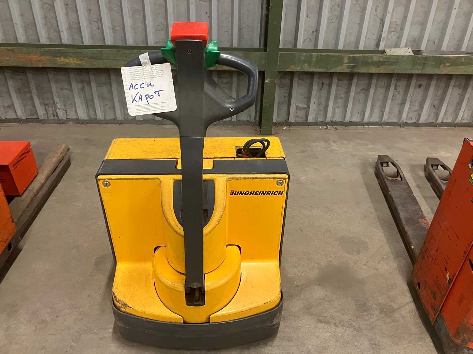 Nee Merk: Jungheinrich Hefvermogen: 2000kg Lepellengte: 1200mm Afgelezen urenstand: 6737 Eigen gewicht: 280kg Totale afmeting L: 1800mm Totale afmeting Breedte: 700mm Totale afmeting Hoogte: 1500mm
