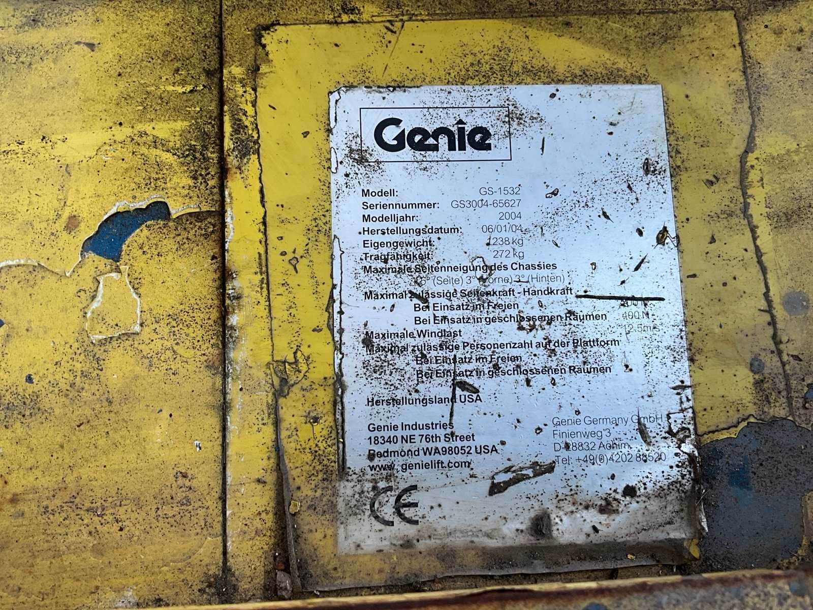 Voorzien van interne lader; Nee Merk: Genie Type: GS1532 Bouwjaar: 2004 Serienummer: GS3004-65627 Schaarhoogwerker: true Werkhoogte: 6mm Plateau afm. l: 1630mm Plateau afm. b: 740mm Platform capaciteit: 272kg Eigen gewicht: 1238kg Totale afmeting L: 1800mm Totale afmeting Breedte: 750mm