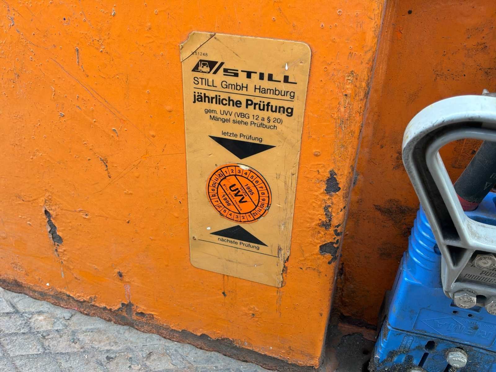Zonder lader * urenstand onbekend * bouwjaar onbekend * type onbekend No Merk: Still Brandstof: Elektrisch Aantal wielen: 3 Free-lift: true Hefvermogen: 1000kg Lepellengte: 1000mm Max. hefhoogte: 3050mm Vol rubber banden: true Minimale doorrijhoogte: 1940mm Totale afmeting L: 2600mm Totale afmeting Breedte: 900mm Leveringsvoorwaarden: Geladen op vrachtwagen