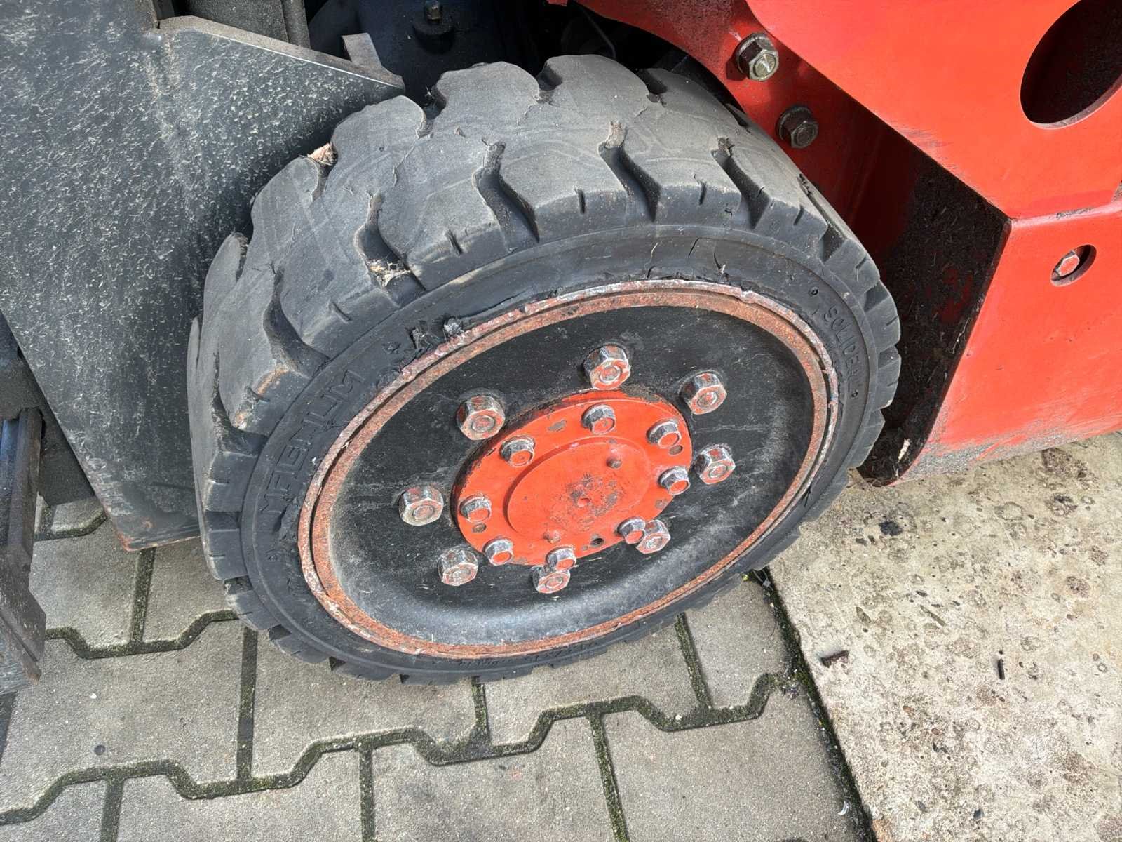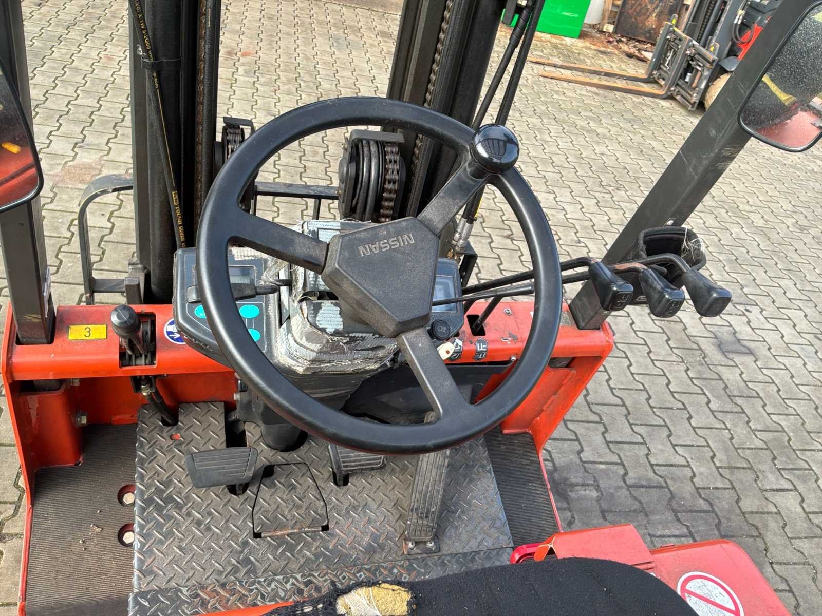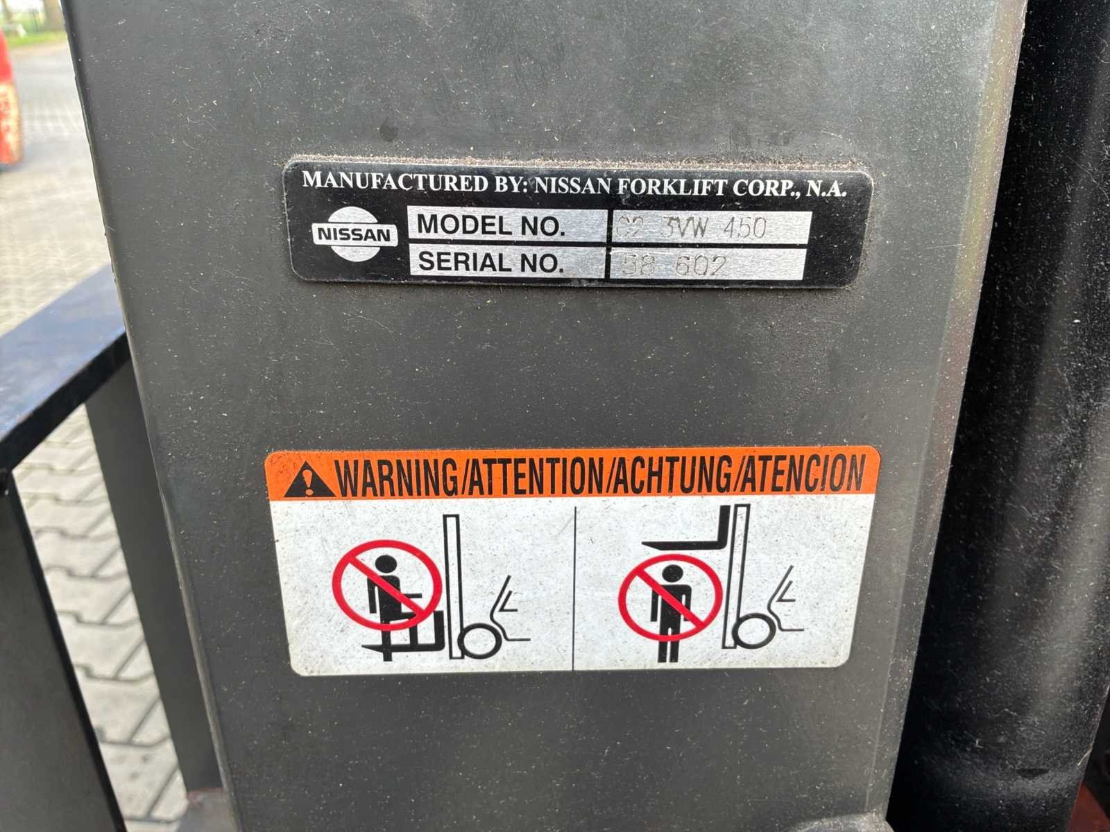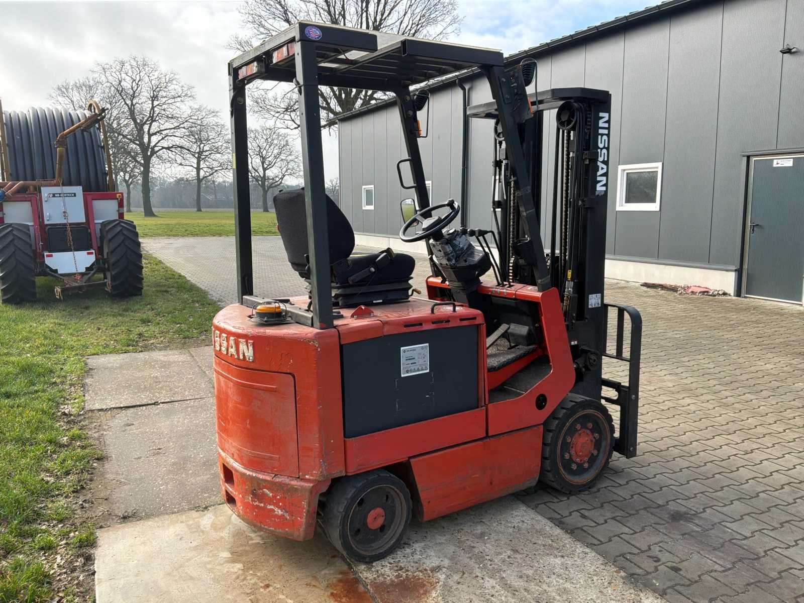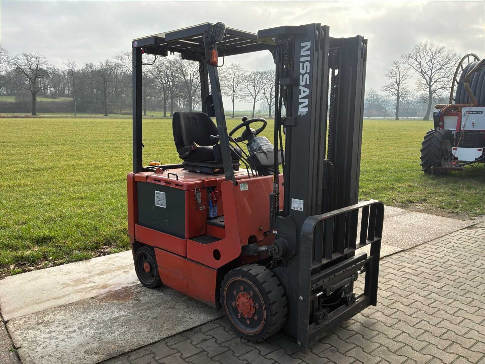 Zonder lader * zonder lepels * stuurbekrachtiging defect No Merk: Nissan Type: CHP02L25E Bouwjaar: 2005 Serienummer: 907719 Brandstof: Elektrisch Aantal wielen: 4 Afgelezen urenstand: 27343 Free-lift: true Side-shift: true Triple mast: true Eigen gewicht: 3360kg Hefvermogen: 2500kg Max. hefhoogte: 4300mm Vol rubber banden: true Minimale doorrijhoogte: 2220mm Totale afmeting L: 2200mm Totale afmeting Breedte: 1050mm Leveringsvoorwaarden: Geladen op vrachtwagen