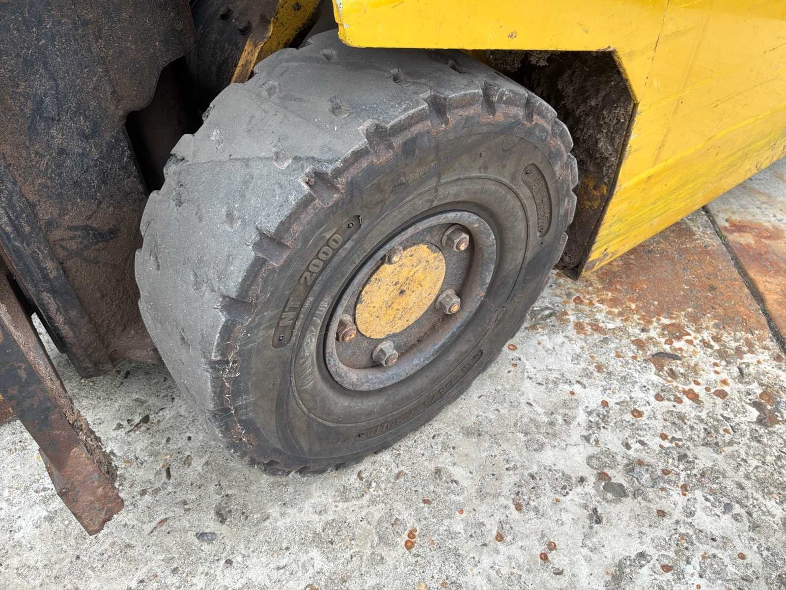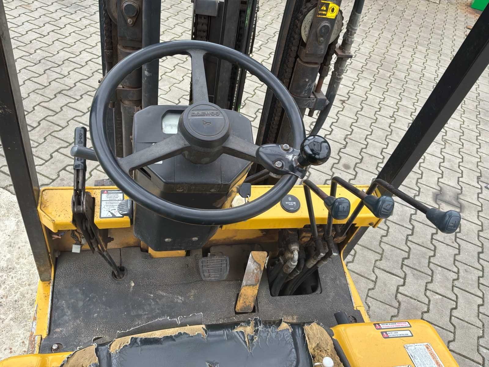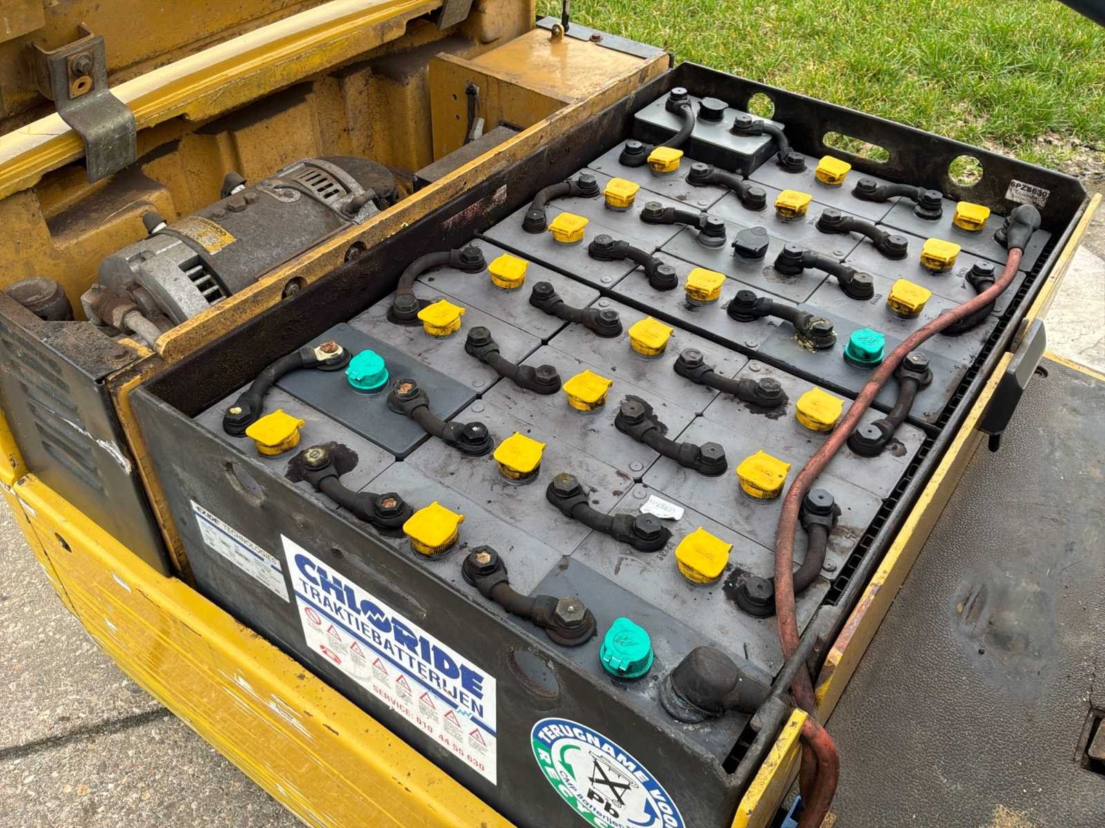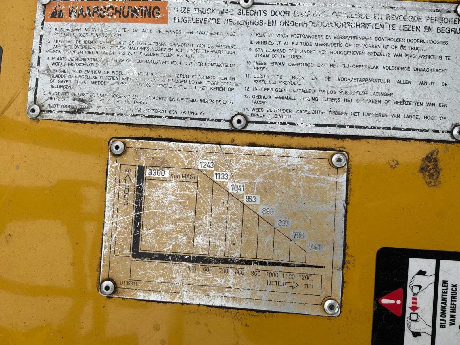 Zonder lader * 1 achterwiel ontbreekt * mogelijkheid voor 3e hydraulische functie No Merk: Daewoo Type: B18T-2 Bouwjaar: 1998 Serienummer: 93-00402 Brandstof: Elektrisch Aantal wielen: 3 Afgelezen urenstand: 8167 Free-lift: true Duplex mast: true Eigen gewicht: 3587kg Hefvermogen: 1800kg Lepellengte: 900mm Max. hefhoogte: 3300mm Vol rubber banden: true Minimale doorrijhoogte: 2100mm Totale afmeting L: 2800mm Totale afmeting Breedte: 1100mm Leveringsvoorwaarden: Geladen op vrachtwagen