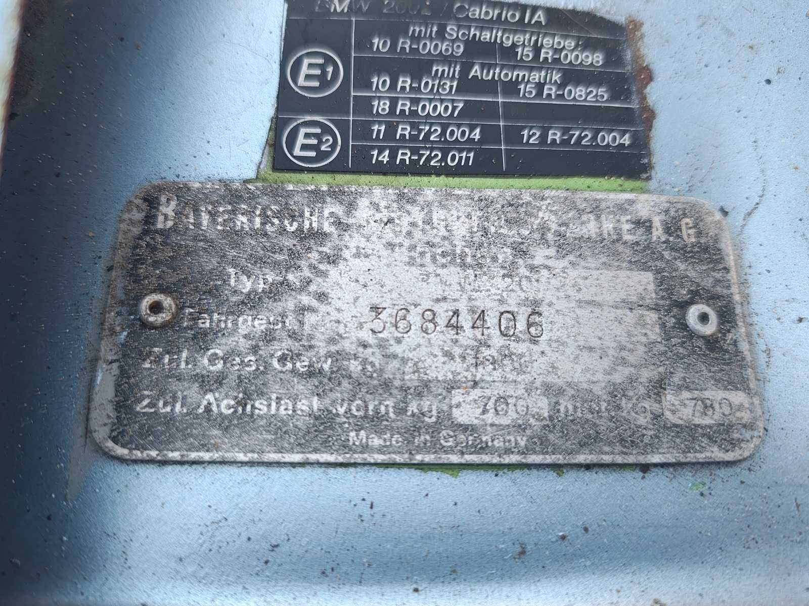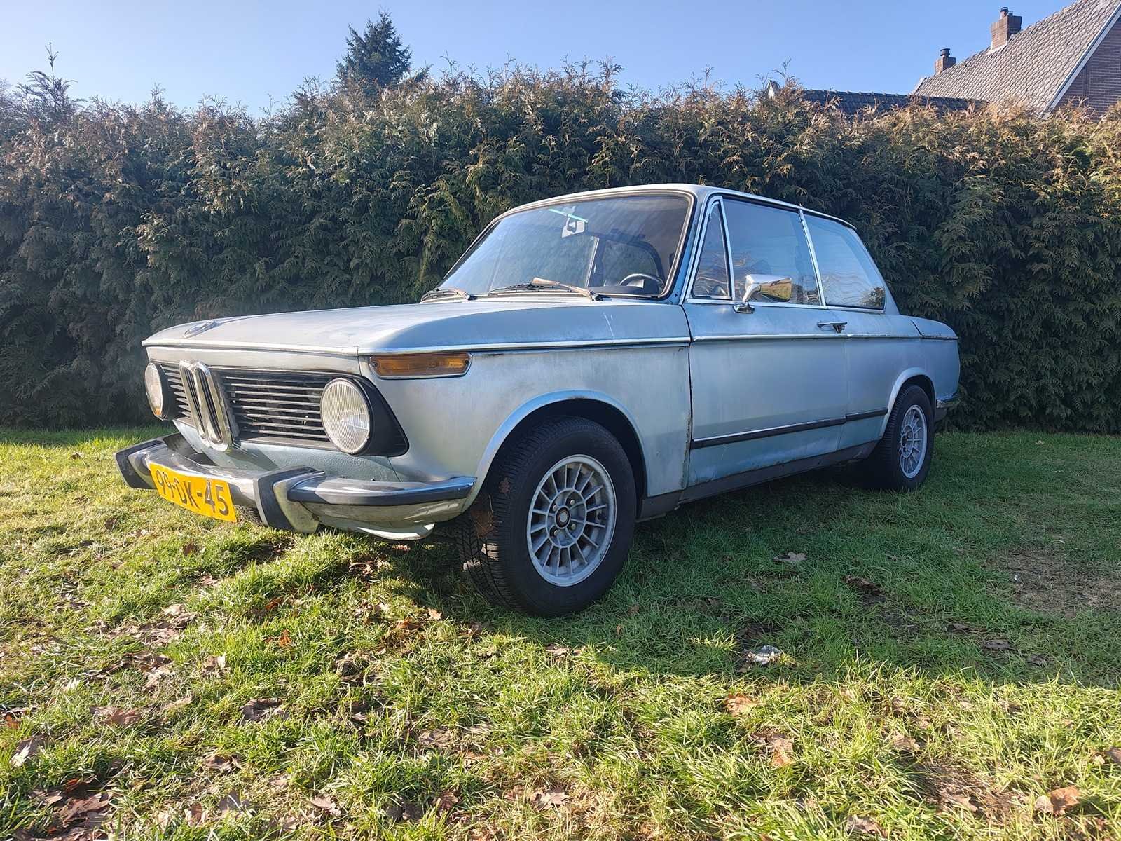 BMW 2002 02 serie Restauratie object Auto heeft meer dan 25 jaar van zijn leven geschorst gestaan. Originele oude ( non GAIK )kentekenplaten zitten nog op het voertuig Tenaamstelling documenten zijn volledig aanwezig heeft 13 inch alpina wielen Diverse sierlijsten aanwezig evenals de stootrand voor de achterbumper Start met contact schakellaar en startknop Auto is rijdend verplaatsbaar Nee Kenteken: 99-DK-45 Merk: BMW Type: 2002 Bouwjaar: 1974-08-07 Chassisnummer: 3684406 Afgelezen kilometerstand: 64472 Model: 02-serie Brandstof: Benzine Datum eerste toelating: 1974-08-07 Datum eerste toelating (NL): 1974-08-07 Nationaliteit documenten: Nederlands Kentekenpapieren compleet?: true Carrosserie: Sedan Aandrijving: Rijd Transmissie: Hand Vermogen (pk): 67 Vermogen (kW): 50kW Emissieklasse: 0 Aantal deuren: 2 Aantal zitplaatsen: 5 Stuurwiel: Links Velgmaat: 13´´ Aantal sleutels: 0 Startinformatie: Start met startknop Kleur: blauw Cilinderinhoud: 1600 Aantal cilinders: 4 Ledig gewicht: 1000 No self drive export!: true
