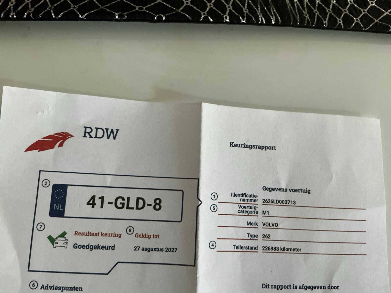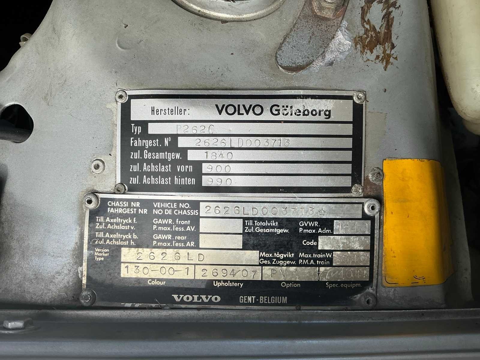 Voorzien: elec ramen, airco, leder bekleding, Gas tank 60L, 3 op 4e versnelling overdrive, stuurbekrachtiging, 4 schijfremmen, ander blok op kenteken 4 cilinder 2.2L. Nee Kenteken: 41-GLD-8 Merk: Volvo Model: 262C Type: Bertone Bouwjaar: 1979 Afgelezen kilometerstand: 227405km Cilinderinhoud: 2127cc Vermogen (kW): 80kW Brandstof: LPG Chassisnummer: 2626LD003713 Laadvermogen: 0kg Datum eerste toelating: 1979-03-19 Datum eerste toelating (NL): 2008-07-11 APK vervaldatum: 2027-08-27 Vermogen (pk): 109hp Aantal zitplaatsen: 4 Maximaal trekgewicht ongeremd: 735kg Maximaal trekgewicht geremd: 1500kg Kleur: grijs Transmissie: Handgeschakeld Emissieklasse: 0 Aantal deuren: 2 Aantal sleutels: 2 Ledig gewicht: 1370kg Velgmaat: 14 Bruto BPM (NL): 0€ Aantal cilinders: 4 Carrosserie: sedan Nationaliteit documenten: nederlands Carfax Link: https://was.carfax.eu/v0/api/ccdid/5100016408/svc/201/vinreg/41GLD8/checksum/eyJhbGciOiJIUzI1NiIsInR5cCI6IkpXVCJ9.eyJleHAiOjE3NjMxMjE1ODZ9.IWQo5zKxywxK78P3WVtSqDcqmD14eLiR_QUBIKuYwy8 Start en rijdt: ja Keuringsrapport geldig tot: 27-08-2027 Self drive export possible : true Airconditioning: true Leder bekleed: true Inschrijvingsbewijs - deel 1 : Aanwezig Inschrijvingsbewijs - deel 2: Aanwezig