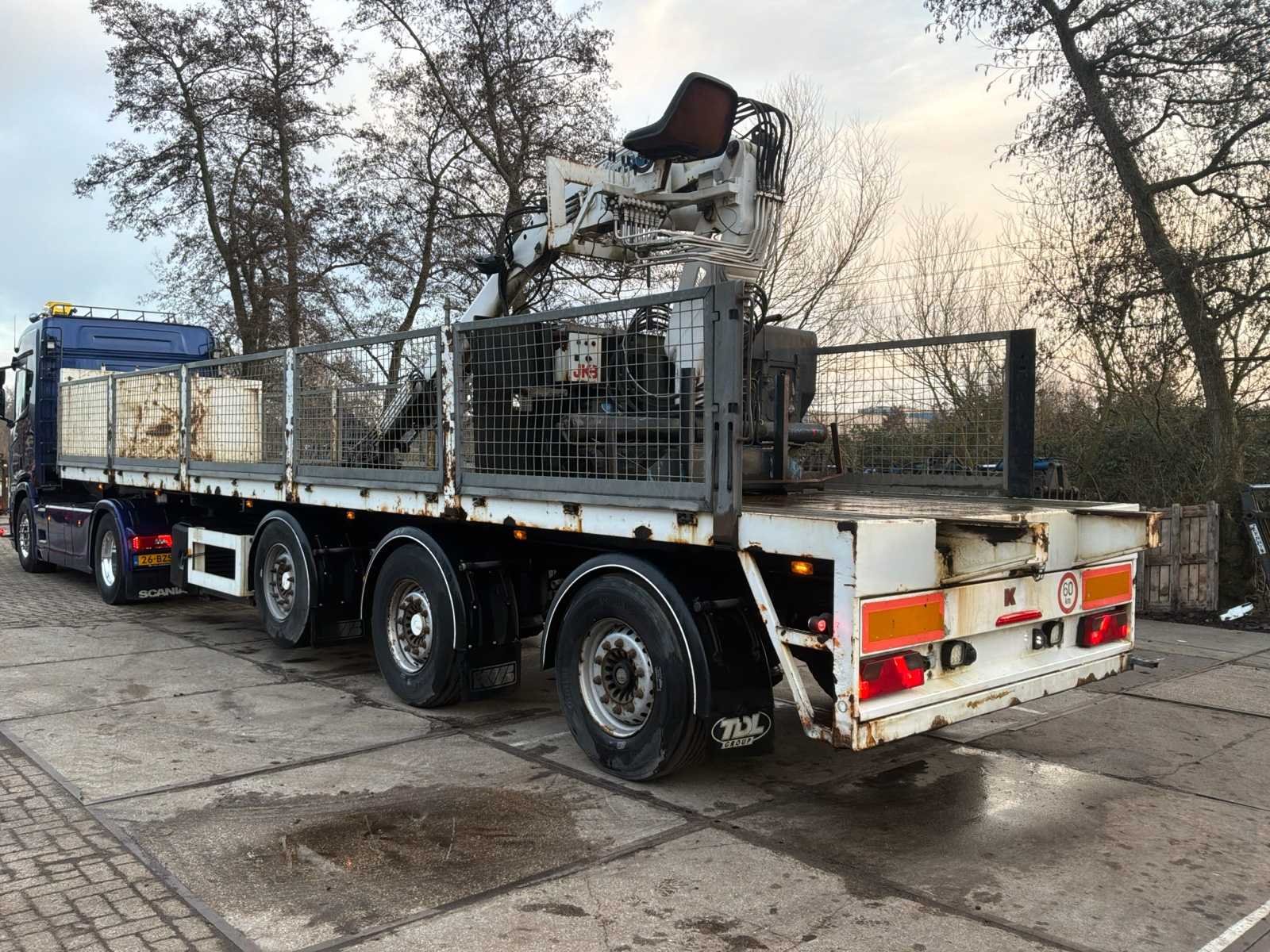 Voorzien van 2x meesturende as * 1x liftas * kennis R-16 kraan met max hefvermogen van 4700 kilo lengte 6 meter Nee Merk: KWB Type: P393STIH Type aanhangwagencarrosserie: Open Aanhangwagen Bouwjaar: 2009 Chassisnummer VIN: YA9P393HS8B148180 Aantal assen: 3 Laadvermogen: 30000kg Eigen gewicht: 9000kg Totale afmeting L: 12200mm Totale afmeting Breedte: 2500mm Zelf rijdend exporteren: Mogelijk Leveringsvoorwaarden: Niet gefundeerd - onverpakt