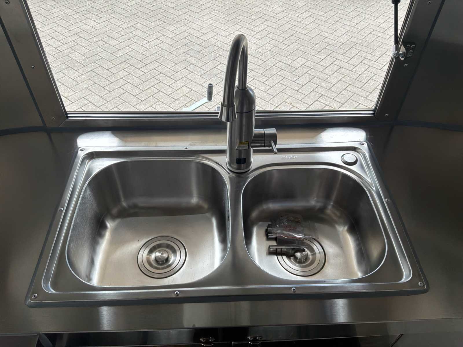 Geschikt voor B rijbewijs * voorzien van koelwerkbank met vriesfunctie, 2 spoelbakken met warm en koud water kraan, schoon en vuilwatertank, afzuigkap van 1,3 meter breed, volledige verlichting en rondom 230V stopcontacten, 230V 16A hoofdaansluiting Nee Merk: GT Type: Airstream Gold Bouwjaar: 2025 Aantal assen: 1 Eigen gewicht: 750kg Totale afmeting Lengte: 2500mm Totale afmeting Breedte: 1900mm Totale afmeting Hoogte: 2100mm