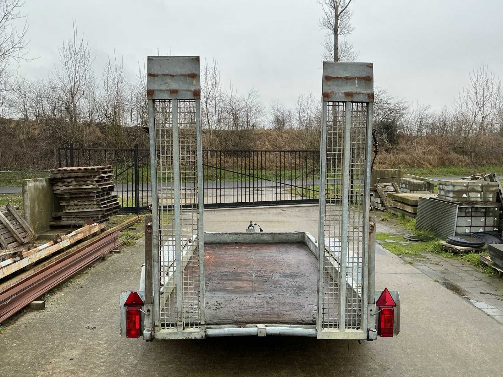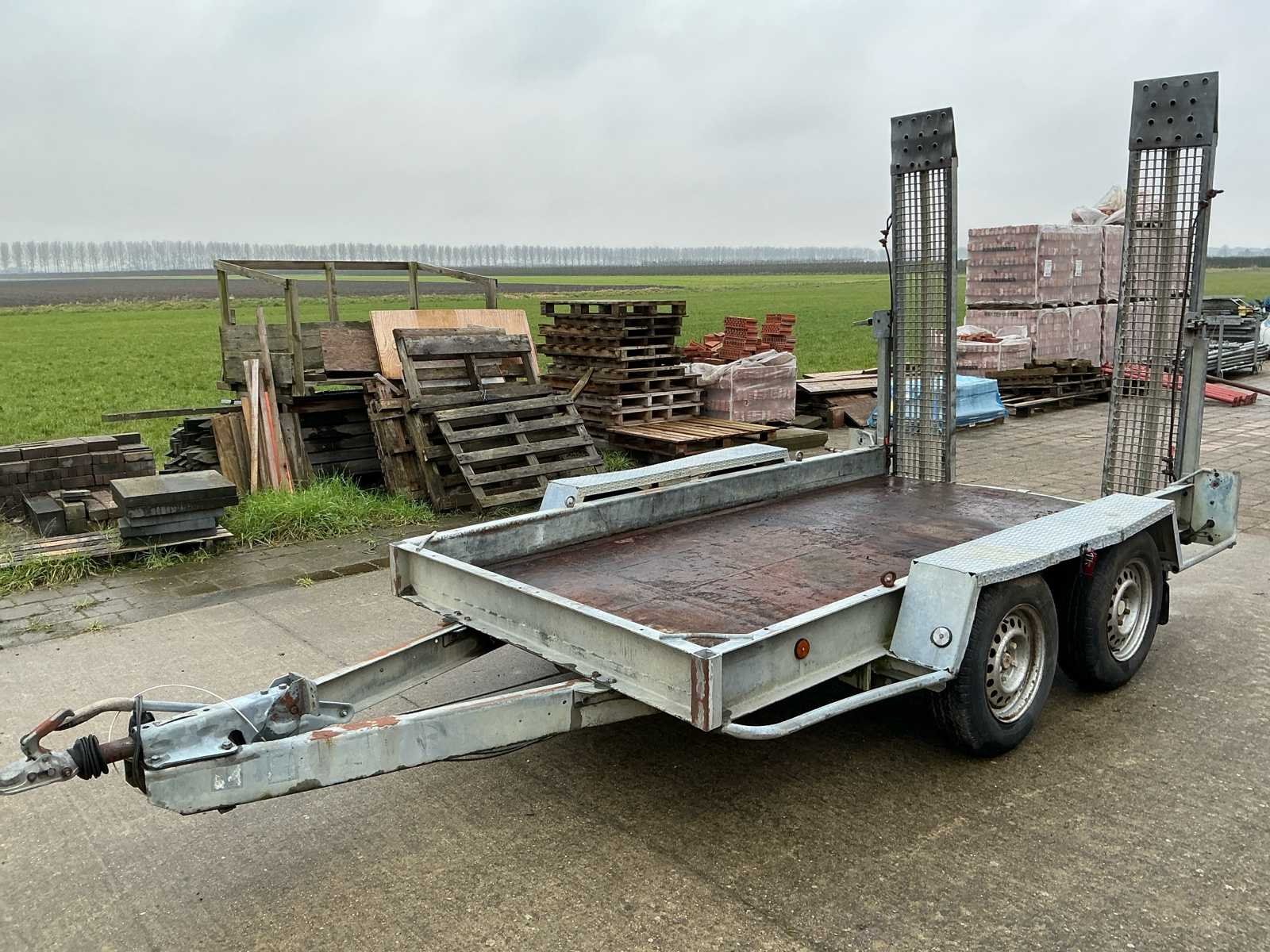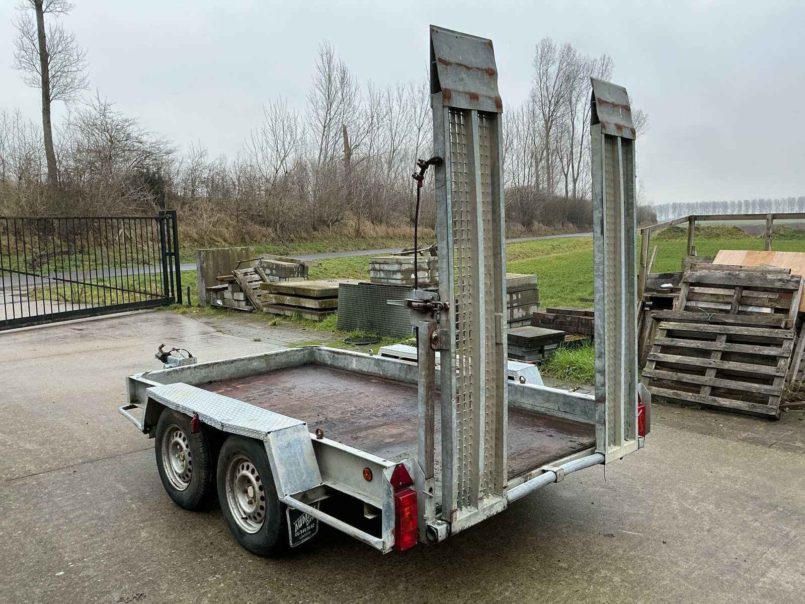 Voorzien van: Verstelbare rijplaten a 35cm breed en 200cm lang, verlichting. Afmeting laadplateau: 305 x 155cm. No Merk: A. Tack Type: B-2700-2 Aantal assen: 2 Laadbak afmeting l: 305cm Laadbak afmeting b: 155cm Ledig gewicht: 600kg Laadvermogen: 2100kg Kenteken: Geen Hoogte: 240cm Lengte: 470cm Breedte: 215cm