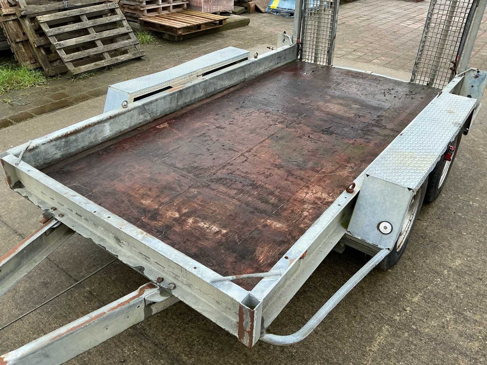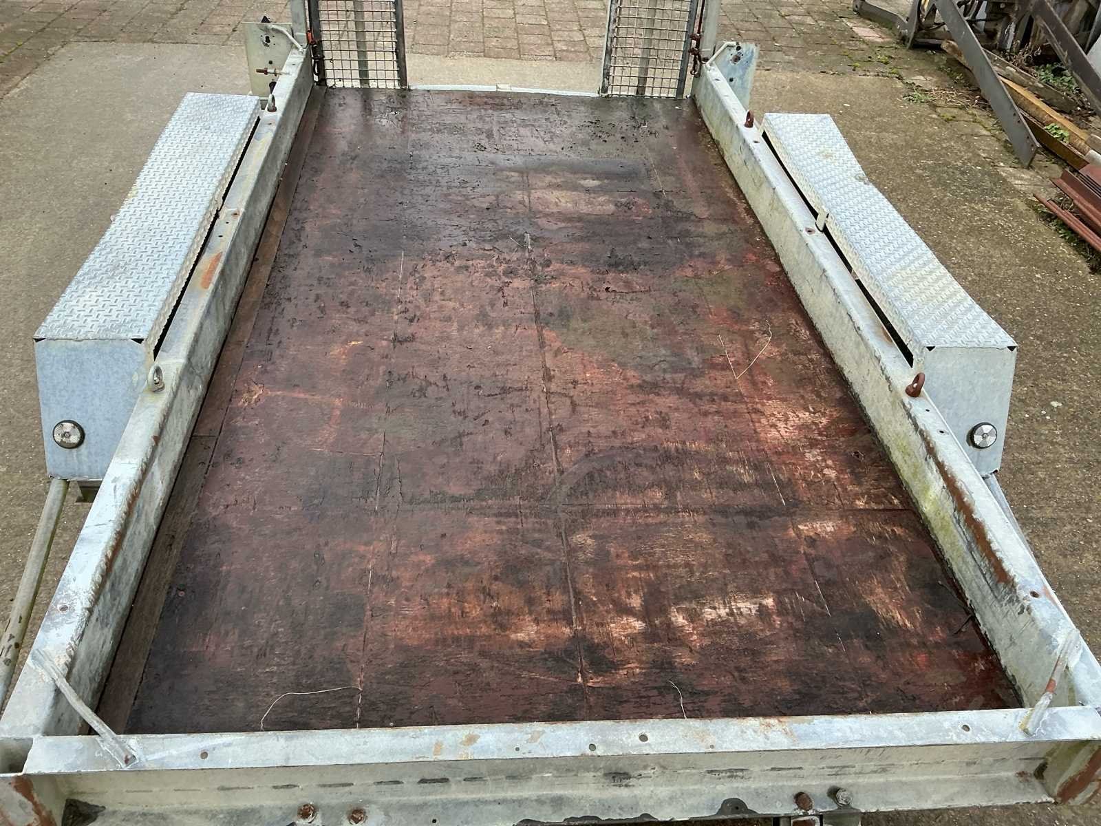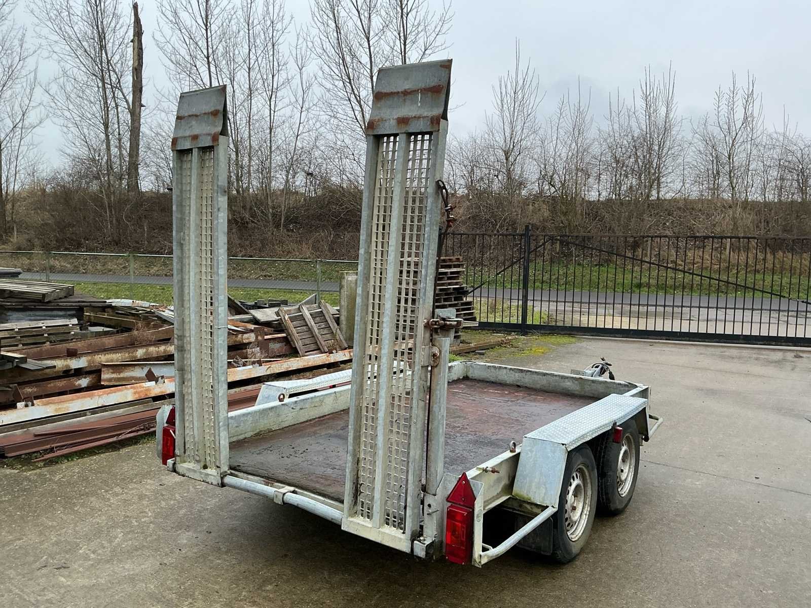 Voorzien van: Verstelbare rijplaten a 35cm breed en 200cm lang, verlichting. Afmeting laadplateau: 305 x 155cm. No Merk: A. Tack Type: B-2700-2 Aantal assen: 2 Laadbak afmeting l: 305cm Laadbak afmeting b: 155cm Ledig gewicht: 600kg Laadvermogen: 2100kg Kenteken: Geen Hoogte: 240cm Lengte: 470cm Breedte: 215cm
