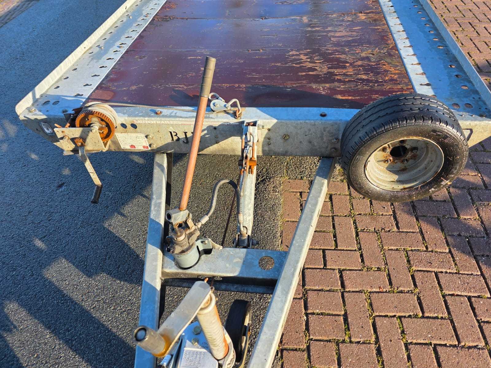 Kiepbaar. Lengte Laadvloer : 5600 mm Breedte laadvloer: 2120 mm Nee Merk: Brian james trailers Type: Drawbar, TT Bouwjaar: 2014 Aantal assen: 3 Ledig gewicht: 900kg Laadvermogen: 2600kg Datum eerste toelating: 2014-05-12 Datum eerste toelating (NL): 2014-05-12 Kenteken: 40-WK-KX Kentekenpapieren compleet?: true Nationaliteit documenten: Nl