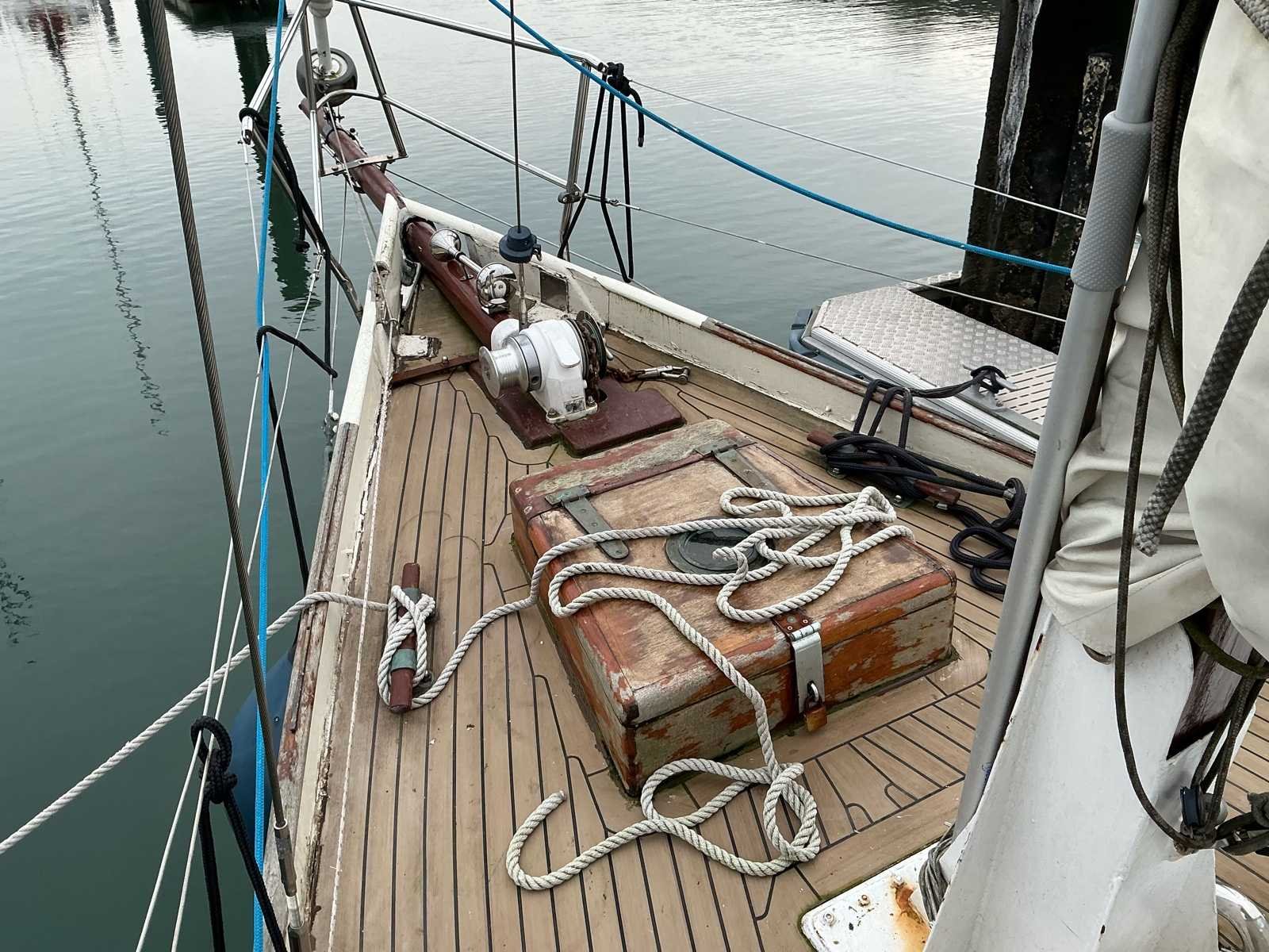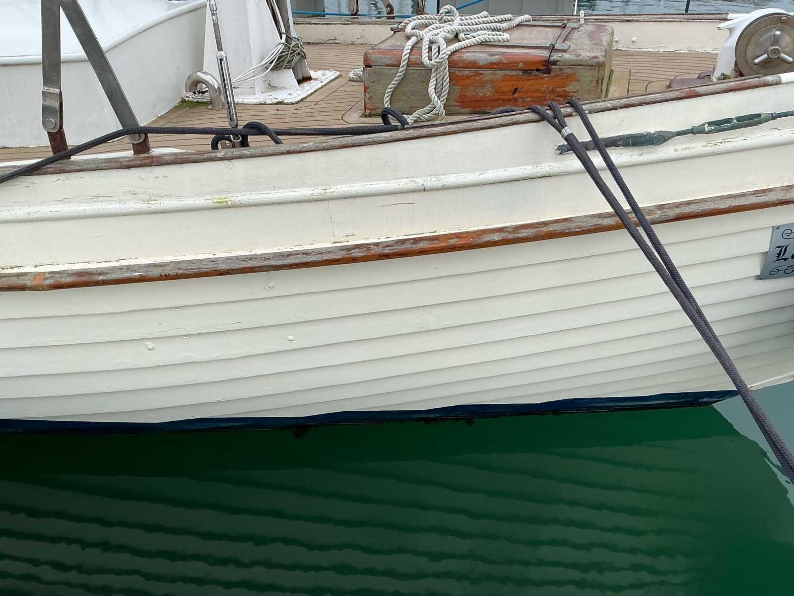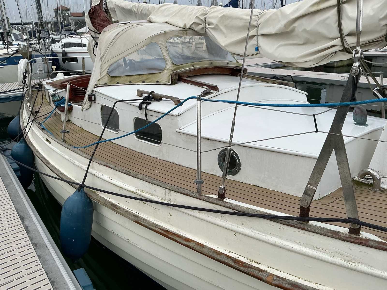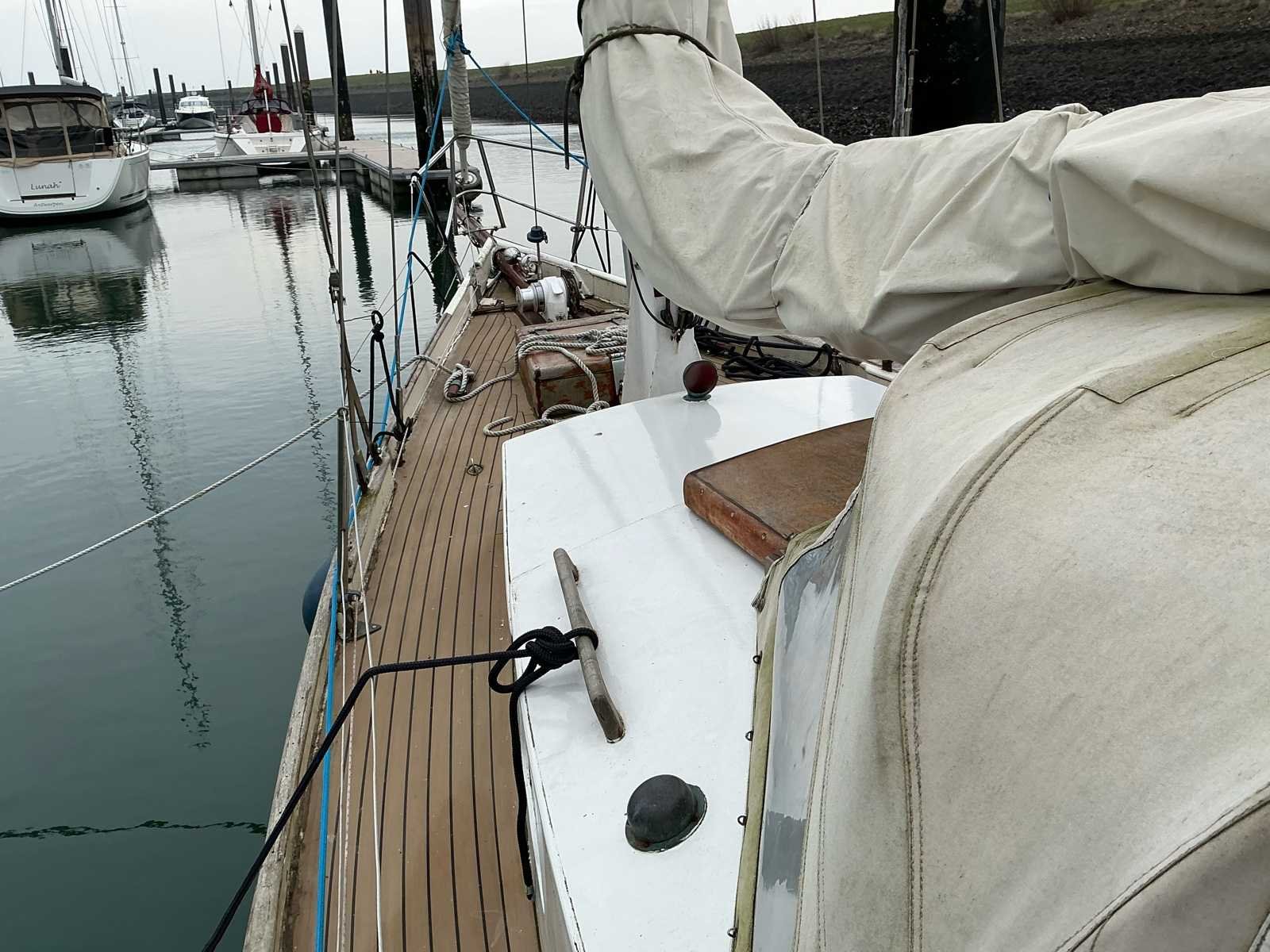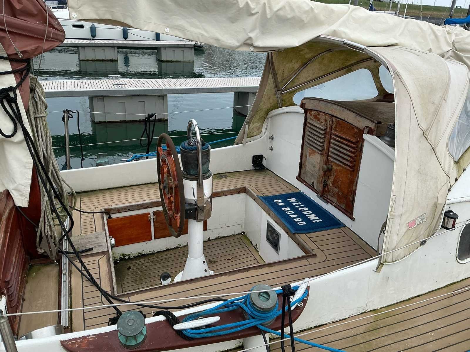 Klassieke houten zeilboot Specificaties: Lengte: 10,7m (13m inclusief boegspriet) Breedte: 2,50m Diepgang: 1m Bouwjaar: Ca. 1958 Stalen kiel Materiaal: hout Aantal masten: 2 Aantal zeilen: 3 Totaal aantal slaapplaatsen: 4 Motor: Craftsman 4 cilinder dieselmotor 42pk (geplaatst in 2023) Stahoogte in kajuit: 195cm en 185 cm Mogelijke bouwer / werf: G.A. Kroes Bootbouwers (niet geverifieerd) Voorzien van: 2 masten 3 zeilen (fok, grootzeil en bezaan) Kajuit voorzijde met 2 slaapplaatsen en koelkast Kajuit Buiskap Bank welke om te bouwen is tot 2 slaapplaatsen Keukenblok met spoelbak Tafel WC Dubbele accu Losse zwemtrap Anker Walstroomaansluiting Fenders De sleutel van de motor ontbreekt / is kwijt. Hier dient een nieuwe voor besteld te worden of een nieuw contactslot voor te worden geplaatst Nee Aantal motoren: 1 Aantal slaapplaatsen: 2 Rompmateriaal: Hout Merk motor: Craftsman CM4.42 Diepgang: 1m Brandstof: Diesel Bouwjaar: 1958 Aantal hutten: 2 Kleur: Wit Lengte: 11m Materiaal: Hout