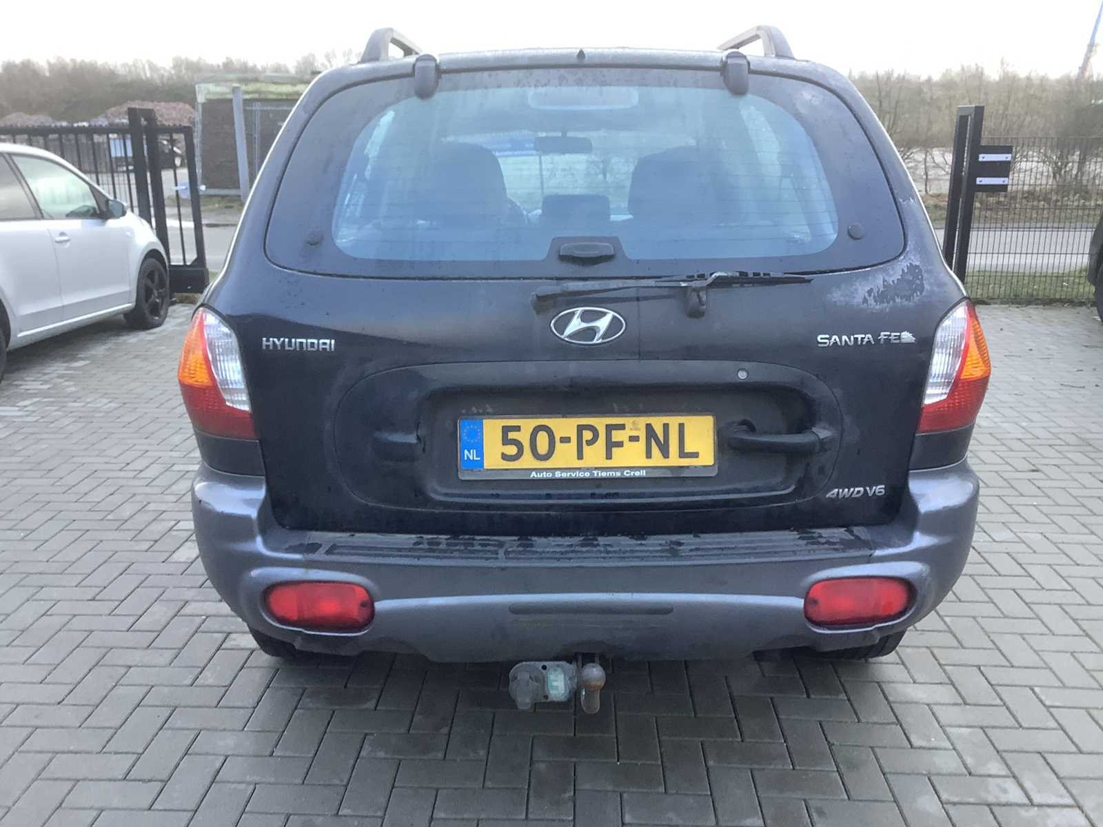 Geen mooie auto maar loopt en rijdt goed Nee Kenteken: 50pfnl Merk: Hyundai Model: Santa Fe Type: 2.7i V6 4WD Style Bouwjaar: 2004 Afgelezen kilometerstand: 256474km Cilinderinhoud: 2656cc Vermogen (kW): 127kW Chassisnummer: kmhsc81dp44715630 NAP status: Logisch Datum eerste toelating: 2004-05-27 Datum eerste toelating (NL): 2004-05-27 APK vervaldatum: 2027-03-11 Vermogen (pk): 170hp Aandrijving: 4x4 Aantal zitplaatsen: 5 Maximaal trekgewicht ongeremd: 2300kg Maximaal trekgewicht geremd: 750kg Kleur: zwart Transmissie: Aut. Emissieklasse: 3 Aantal deuren: 4 Ledig gewicht: 1656kg Bruto BPM (NL): 8561€ Aantal cilinders: 6 Carrosserie: MPV Carfax Link: https://was.carfax.eu/v0/api/ccdid/5100016408/svc/201/vinreg/50PFNL/checksum/eyJhbGciOiJIUzI1NiIsInR5cCI6IkpXVCJ9.eyJleHAiOjE3NzcwMzMyMDR9.iV6ADcdWb-yXQLyzrM3BfHlNGh-yT5U2X4ySDV0I3mQ Start en rijdt: start en rijdt Self drive export possible : true