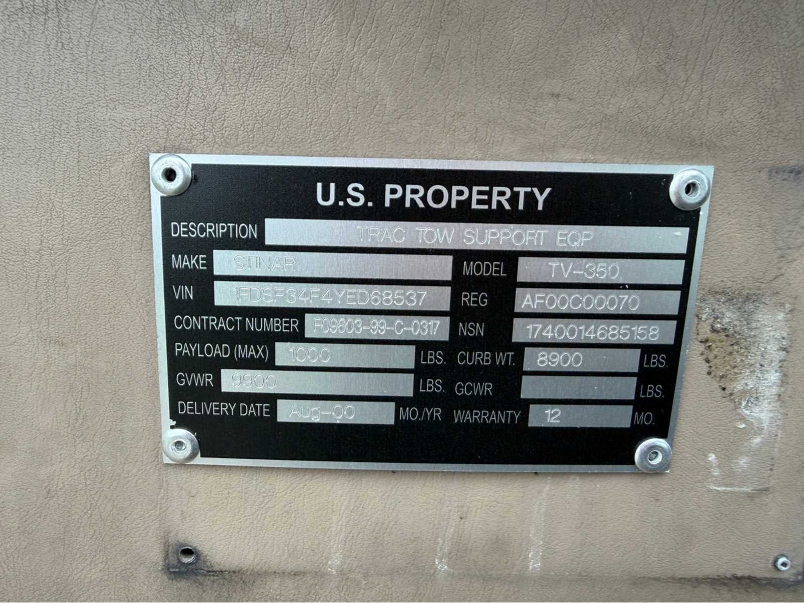 Nee Kenteken: Usa title Merk: Ford Type: TV-350 Model: F350 Chassisnummer: 1FDSF34F4YED68537 Cilinderinhoud: 7300cc Brandstof: diesel Afgelezen mijlenstand: 4102mi Transmissie: Automaat Aantal zitplaatsen: 3 Stuurwiel: limks Rest BPM: 0 Aantal deuren: 2 Vermogen (pk): 0