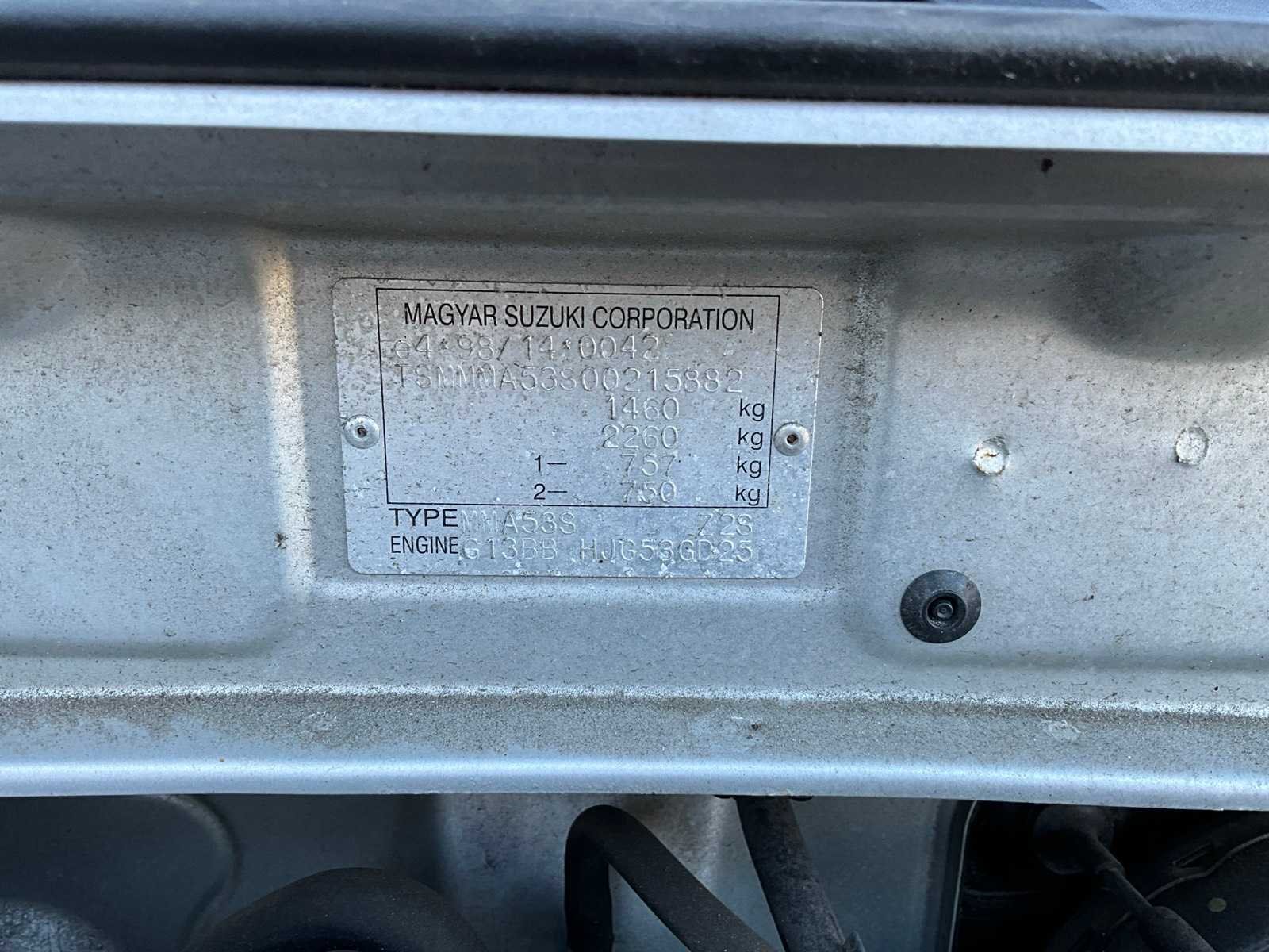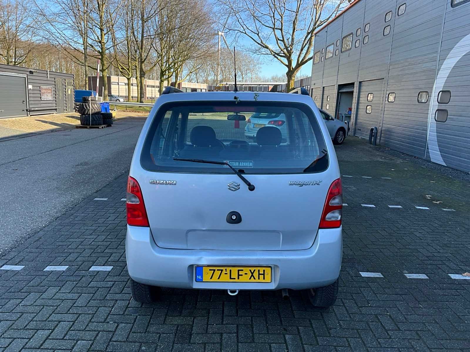 Elektrische ramen en spiegels, Radio, handgeschakeld 5 versnellingen No Kenteken: 77-LF-XH Merk: Suzuki Model: Wagon R Bouwjaar: 2002 Afgelezen kilometerstand: 140917km Cilinderinhoud: 1298cc Vermogen (kW): 56kW Brandstof: benzine Chassisnummer: TSMMMA53S00215882 Laadvermogen: 0kg NAP status: Logisch Datum eerste toelating: 2002-12-20 Datum eerste toelating (NL): 2002-12-20 APK vervaldatum: 2027-02-13 Vermogen (pk): 76hp Energielabel: C Aantal zitplaatsen: 5 Maximaal trekgewicht ongeremd: 350kg Maximaal trekgewicht geremd: 800kg Kleur: grijs Transmissie: Handgeschakeld Emissieklasse: 3 Aantal deuren: 4 Aantal sleutels: 1 Ledig gewicht: 956kg Bruto BPM (NL): 1796€ Rest BPM: 0€ Aantal cilinders: 4 Carrosserie: Stationwagen Nationaliteit documenten: Nederland CO2-uitstoot NEDC: 152 Carfax Link: https://was.carfax.eu/v0/api/ccdid/5100016408/svc/201/vinreg/77LFXH/checksum/eyJhbGciOiJIUzI1NiIsInR5cCI6IkpXVCJ9.eyJleHAiOjE3NzcyMTAyMTN9.C3c2WowXgUvYK472hBeX7SeocJ-4zAFlkUhZWJ9xBo8 Start en rijdt: Yes Zichtbare schade: Yes Self drive export possible : true
