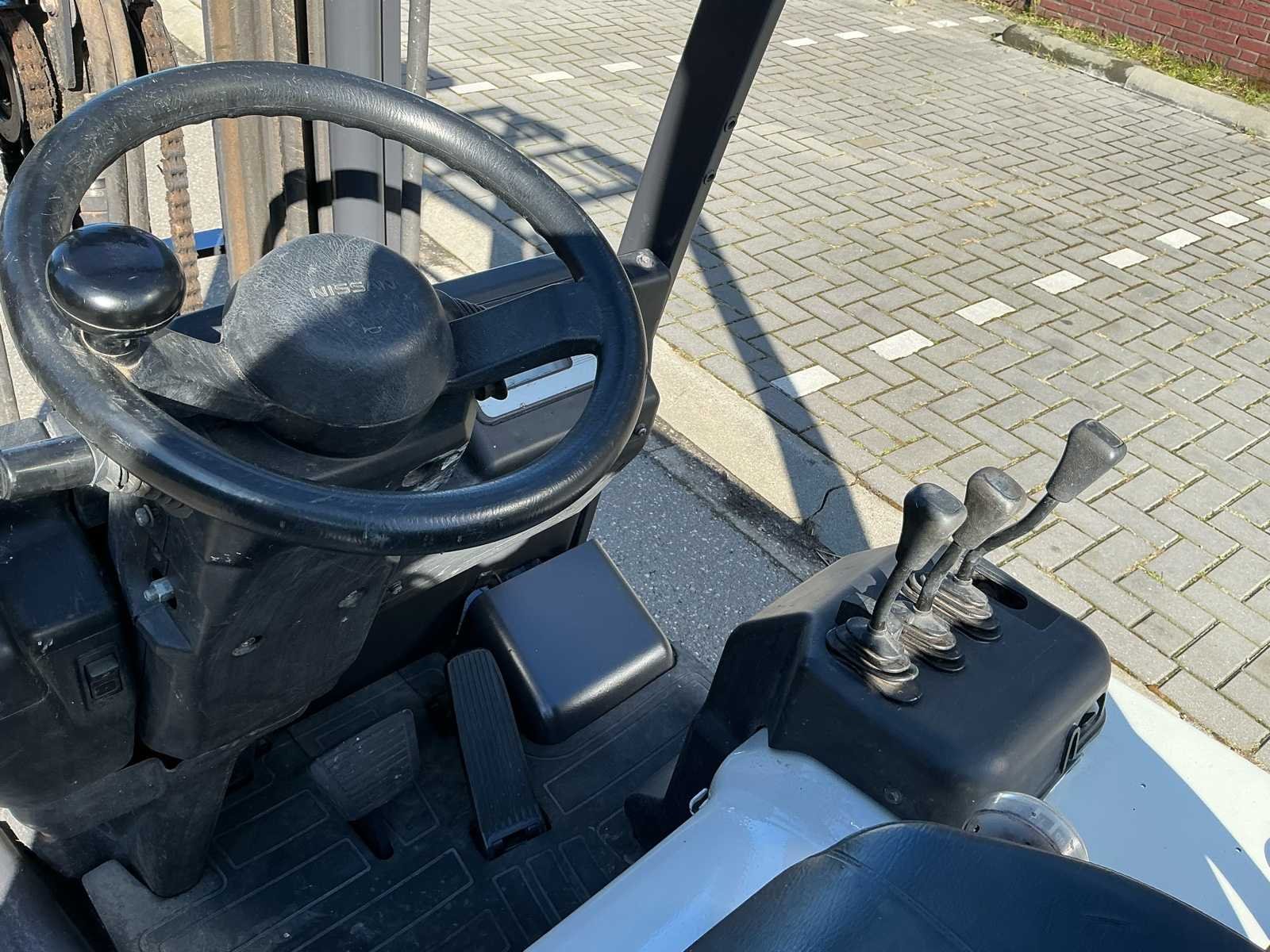 Nee Merk: NISSAN Bouwjaar: 2014 Brandstof: Elecktrisch Afgelezen urenstand: 5233 Accu lader: true Free-lift: true Side-shift: true Triple mast: true Eigen gewicht: 1008kg Max. hefhoogte: 4500mm Vol rubber banden: true