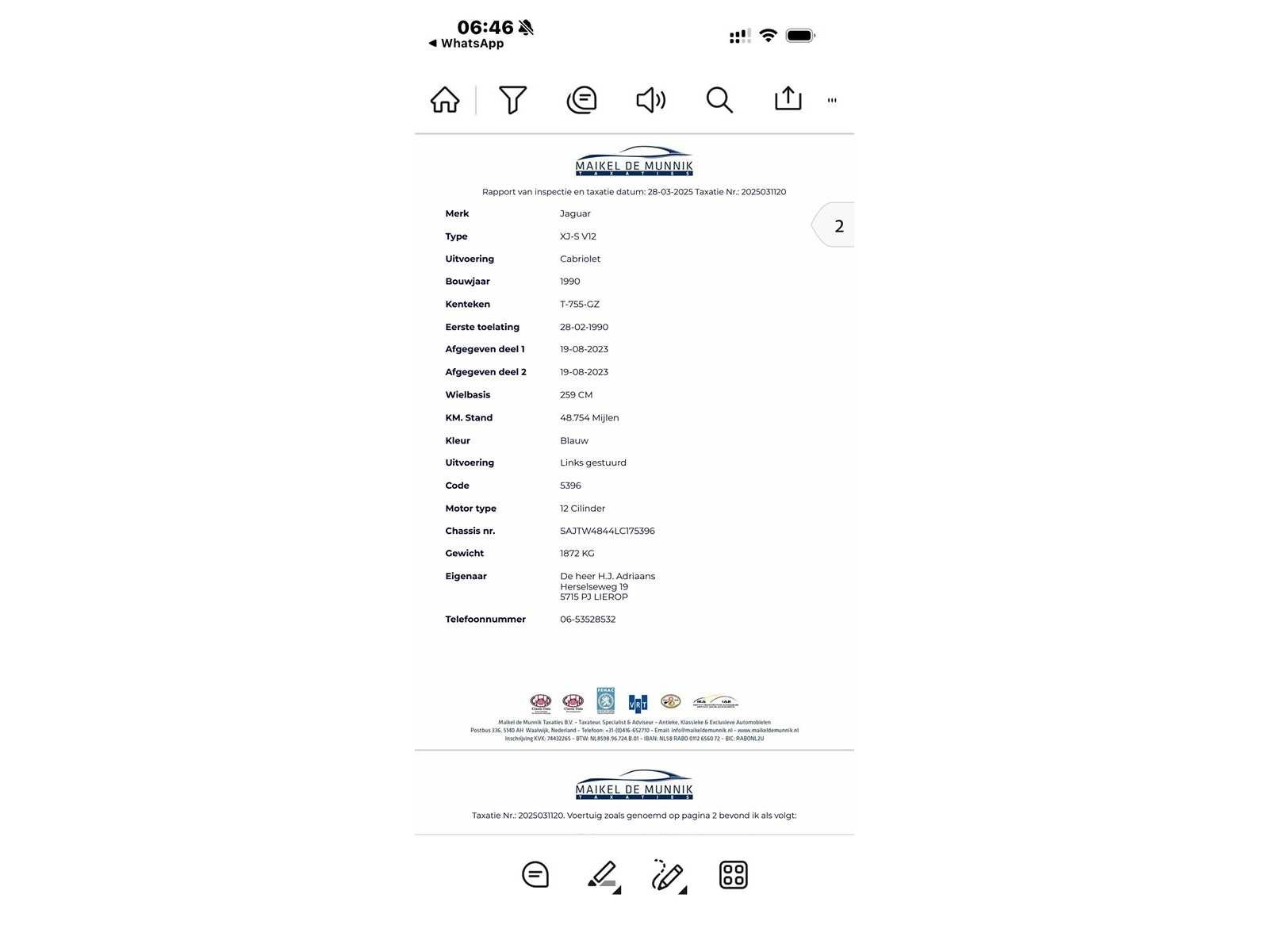 Deze mooie Jaguar heeft ook een taxatierapport voor 38.000,00,- Deze zal worden meegeleverd bij verkoop. Foto's van het taxatierapport zijn bijgevoegd Nieuwe bekleding Bezichtiging op afspraak!!! Nee Kenteken: T-755-GZ Merk: Jaguar Model: XJS Type: 5.3 V12 Convertible Bouwjaar: 1990 Afgelezen kilometerstand: 48754km Cilinderinhoud: 5343cc Vermogen (kW): 217kW Brandstof: benzine Laadvermogen: 0kg NAP status: Onlogisch Datum eerste toelating: 1990-02-28 Datum eerste toelating (NL): 2023-08-19 APK vervaldatum: 2025-06-08 Vermogen (pk): 295hp Aantal zitplaatsen: 2 Kleur: blauw Transmissie: Automaat Emissieklasse: 0 Aantal deuren: 2 Ledig gewicht: 1872kg Aantal cilinders: 12 Carrosserie: cabriolet Nationaliteit documenten: NL Start en rijdt: Ja Zichtbare schade: Geen Leder bekleed: true
